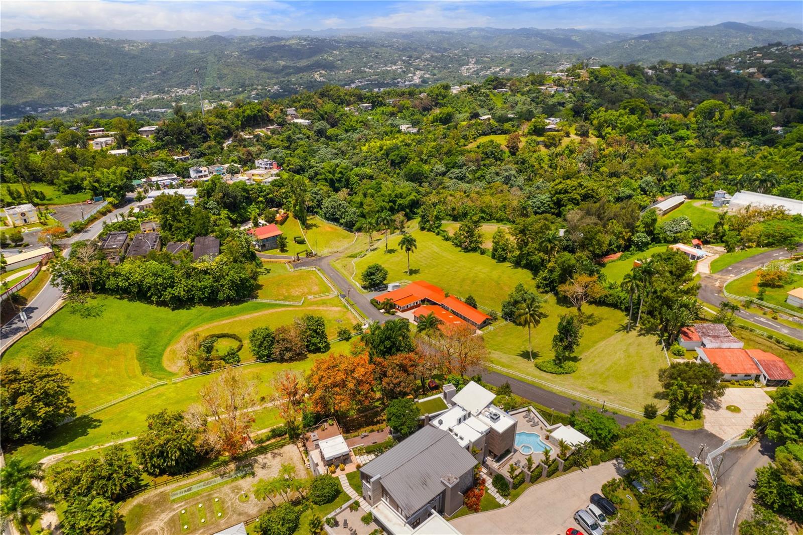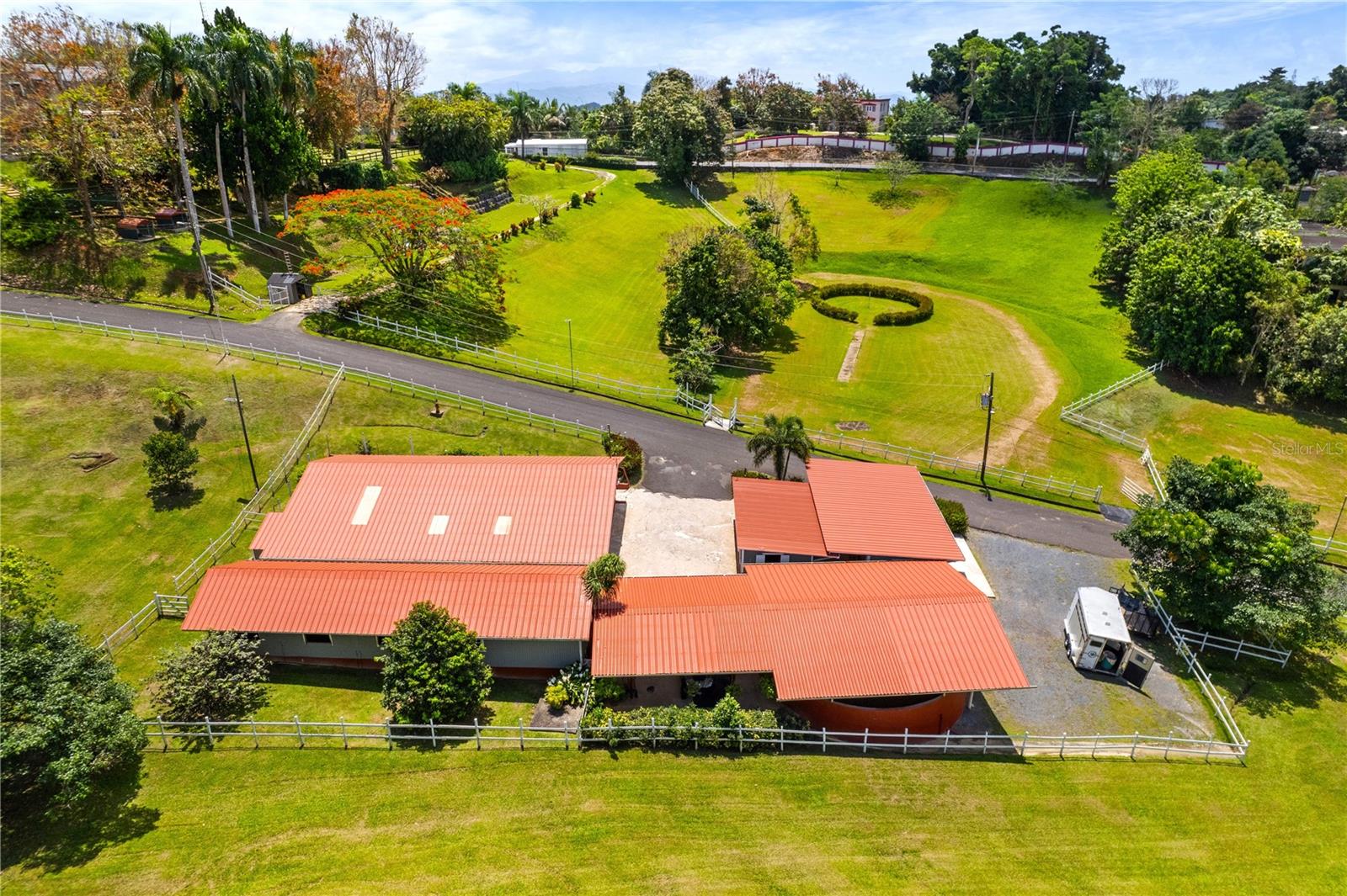 Bem -vindo ao Paso Fino Haven Estate, um santuário sereno de 3,7 acres situado dentro das montanhas verdejantes de Aguas Buenas, Porto Rico. Perfeitamente localizado-a uma rápida viagem de 15 minutos para Guaynabo e 25 minutos de carro a San Juan, combina perfeitamente a tranquilidade do campo que vive com as conveniências de estar perto das comodidades urbanas. Situada na cobiçada ala de Jagueyes, essa morada incorpora a essência da vida do campo. Cinente completamente e dentro de um condomínio fechado, esta propriedade oferece privacidade incomparável e exibe vistas deslumbrantes de seu esplendor natural circundante. Este requintado pedaço de terra apresenta uma oportunidade única de criar seu próprio oásis sob medida nesse cenário idílico. Ao chegar à comunidade, uma sensação de calor o rodeia, definindo o tom da experiência que aguarda. Ao explorar os motivos, você encontrará instalações cuidadosamente criadas e bem pensadas, atendendo a todos os aspectos dos cuidados e equitação e equinos. Um notável estábulo de parada central, com doze barracas, serve como ponto focal para atividades equestres. Recursos convenientes, como área de recepção, instalações de banho de cavalos, um anel de treinamento, uma área de reboque, meio banho e espaços de escritório designados garantem conforto e funcionalidade para discernir entusiastas de cavalos. Convenientemente aninhado no centro da propriedade, há uma casa de um nível que abrange 1.748 pés quadrados. Pensado e cheio de potencial, esta residência possui três quartos, dois banheiros e meio e um layout de conceito aberto que mescla sem esforço as áreas de estar, restaurantes e cozinha. Um terraço coberto e cativante fornece um cenário ideal para entretenimento ao ar livre no cenário de paisagens verdejantes. Esta propriedade única oferece infinitas possibilidades de desenvolvimento e expansão. Seja imaginando a adição de 'casitas' residenciais, envolvendo agroturismo, ecoturismo ou estabelecendo acomodações para poucos e café da manhã, as oportunidades são tão diversas quanto promissoras. Seja buscando um retiro privado ou um céu para atividades equestres, esta propriedade excepcional oferece a mistura perfeita de conforto, sofisticação e beleza natural.