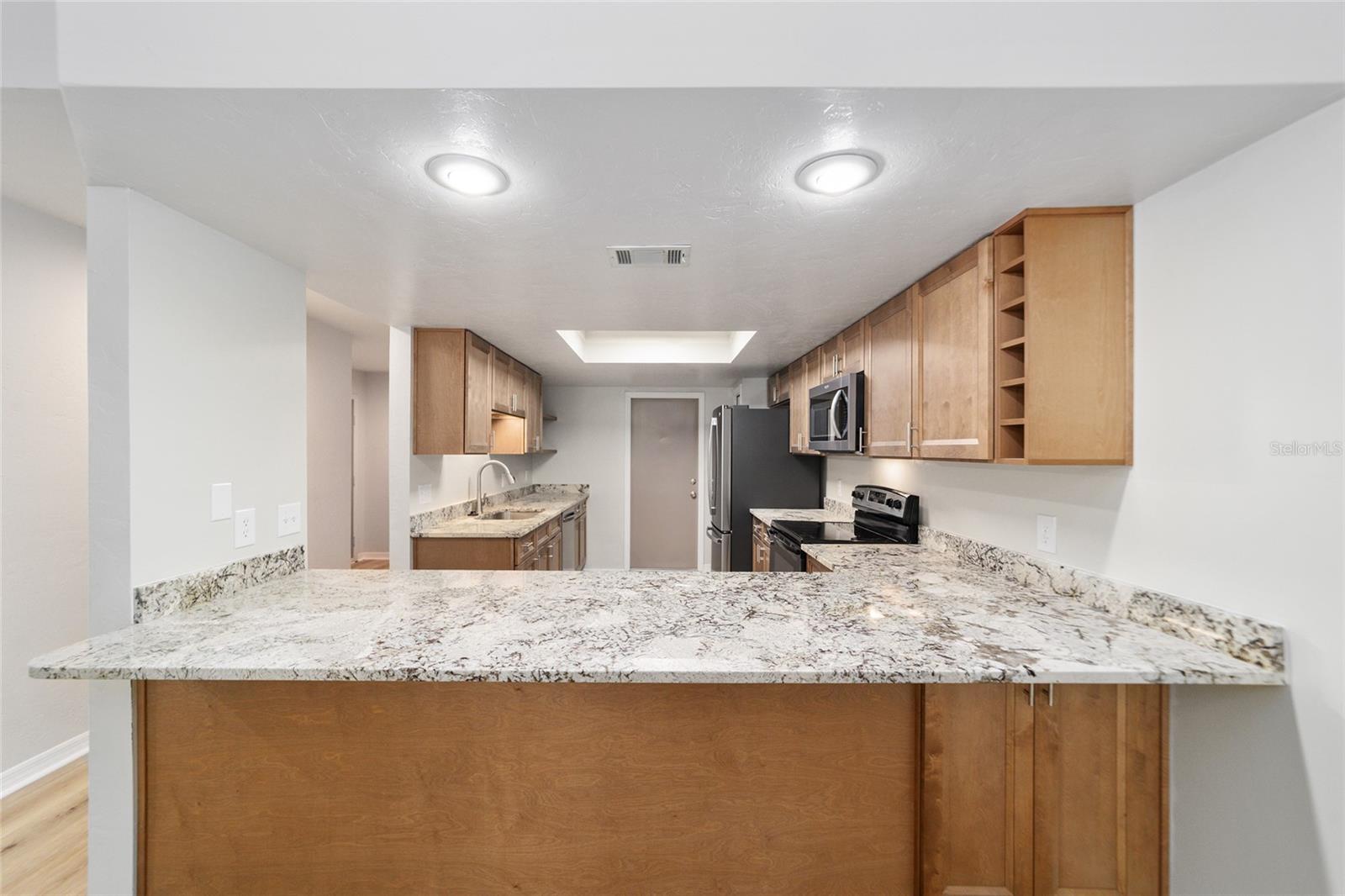 Uma ou mais fotos foram praticamente encenadas. Algumas fotos foram praticamente encenadas. Chance rara de possuir esta casa moderna 2 BR/2BA diretamente situada no terceiro buraco do campo de golfe de Turkey Creek. Esta casa impressionante foi recentemente remodelada e atualizada com materiais de alta qualidade de cima para baixo. Além de ser pintada recém -pintada, todo o novo piso de tábua de vinil de luxo, iluminação LED moderna e novos ventiladores de teto são apenas o começo. A cozinha apresenta balcões expansivos de granito e uma abundância de belos armários e gavetas de madeira e delicada e suave. A cozinha tem vista para a grande sala com luz natural fornecida por duas grandes clarabóias com eficiência energética e portas francesas triplas que levam ao Lanai, um lugar perfeito para desfrutar de uma xícara de café da manhã e um coquetel à noite. O quarto principal também tem vista para o campo de golfe e apresenta um closet e um grande banheiro privativo destacado com um lindo chuveiro recém-azulejo e uma vaidade de granito. A garagem de dois carros de grandes dimensões é uma vantagem adicional. Bloco de concreto sólido e construção de estuque, telhado 2021 e nova mancha de entrada e vedação fornecerão baixa manutenção e um estilo de vida despreocupado. As paredes comuns também são a construção de blocos de concreto, que fornece uma prova de som aprimorada para uma vida silenciosa. A comunidade de Turkey Creek está convenientemente localizada a meio caminho entre Gainesville e Alachua. Juntamente com o novo San Felasco Tech Park, você tem uma ampla seleção de compras, restaurantes e serviços a minutos. Os hospitais da Universidade da Flórida, Shands e VA e I-75 também são facilmente acessíveis. Além do campo de golfe de 18 buracos e da instalação de treinos, a comunidade de Turkey Creek possui um clube, incluindo um restaurante, piscina grande, quadras de tênis e pickleball e um grande playground.