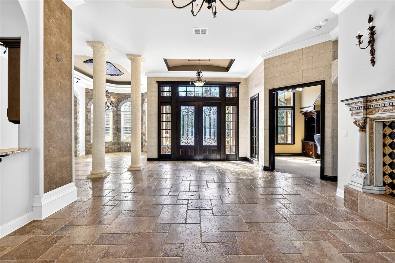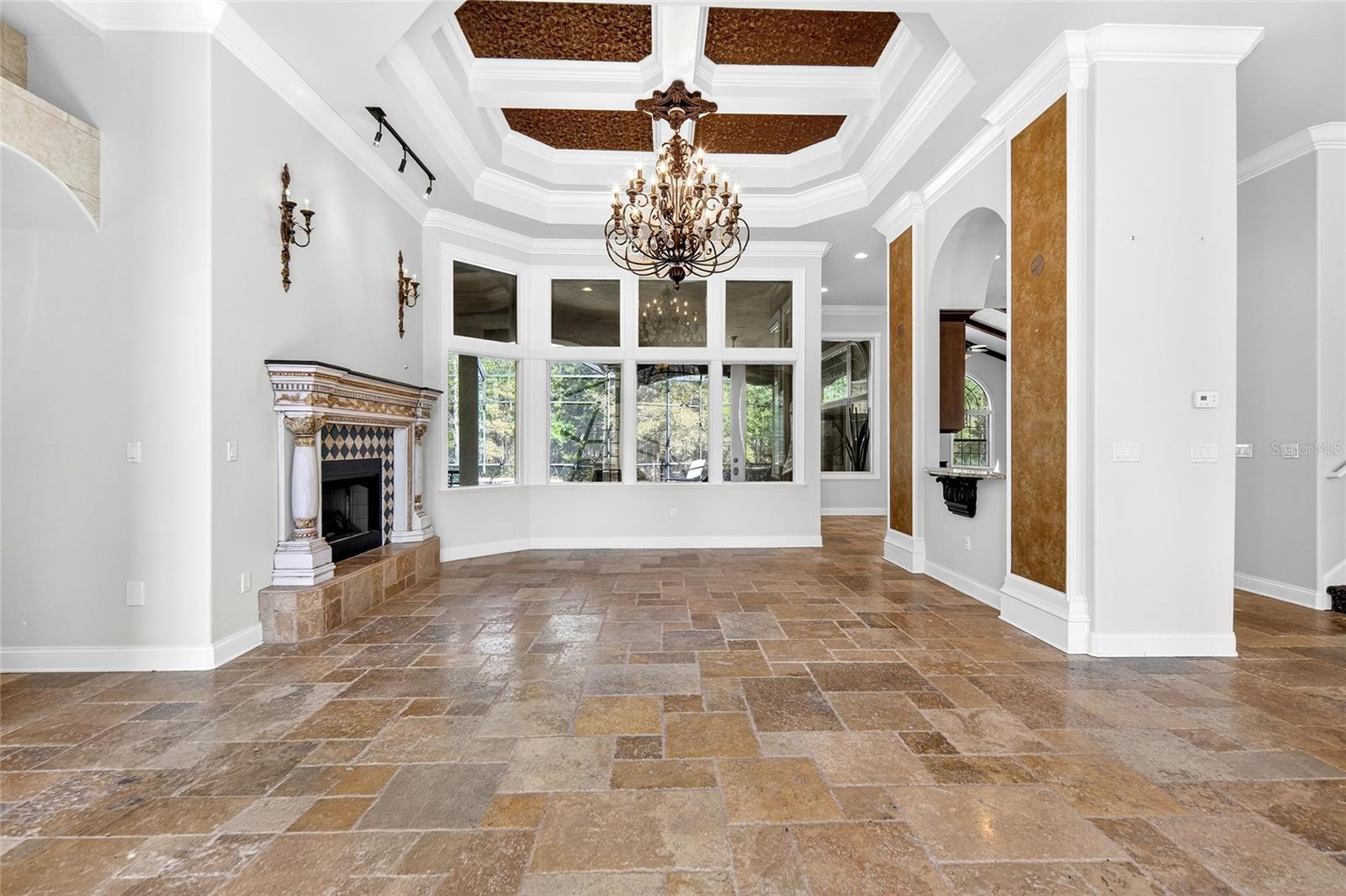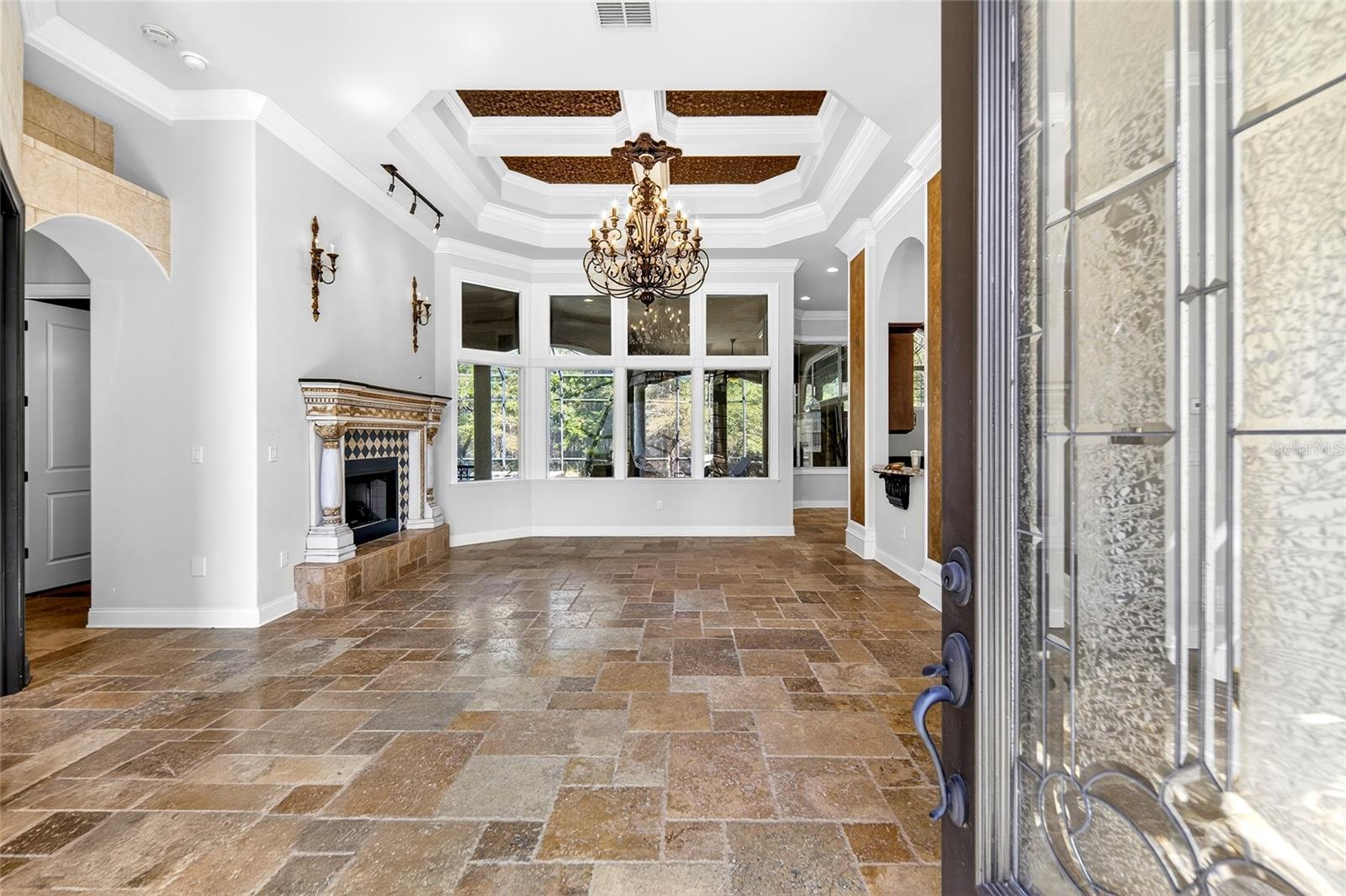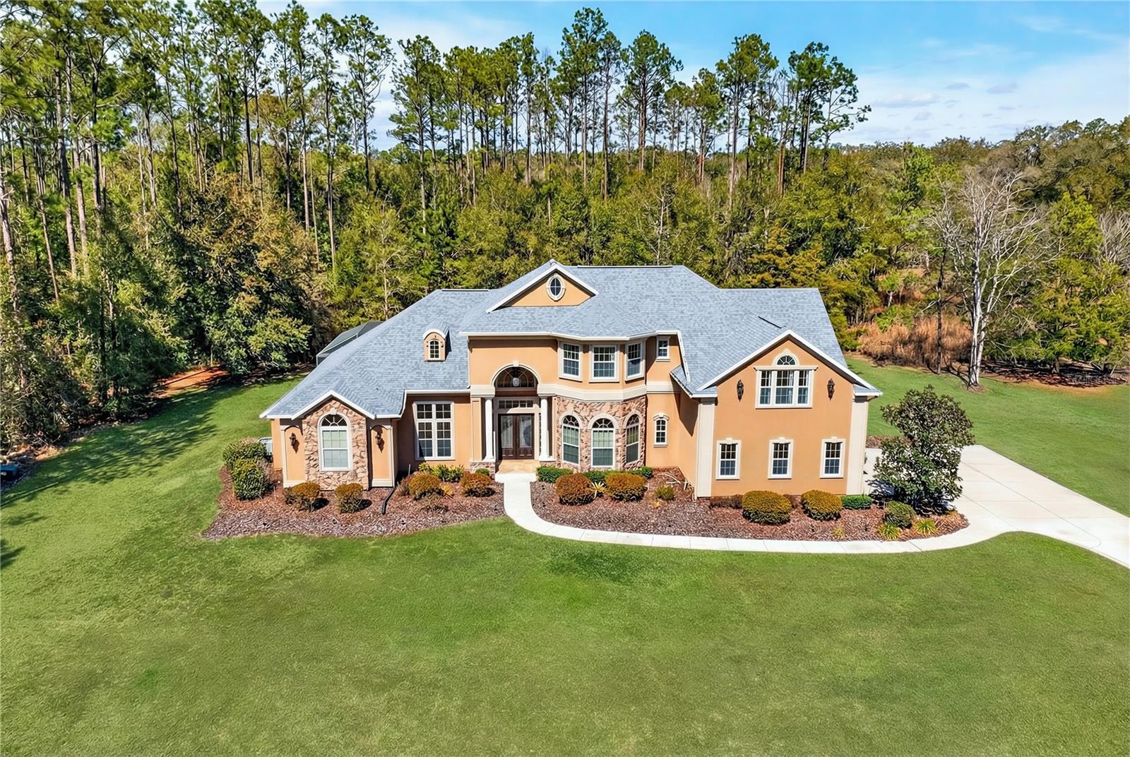 Uma ou mais fotos foram virtualmente encenadas. Além dos portões privados da Floresta de Santa Fé, escondida em cinco hectares serenos nos arredores de Alachua, esta propriedade construída sob medida é uma aula magistral em presença arquitetônica e privacidade refinada. A partir do momento em que as portas duplas se abrem, a casa deixa uma impressão inesquecível. Pisos de travertino se estendem por amplos espaços emoldurados por tetos altos, colunas decorativas e detalhes intrincados em caixotões coroados por lustres extravagantes. Paredes de janelas em arco inundam os interiores com luz natural enquanto capturam vistas tranquilas da piscina e do cenário arborizado além. Duas lareiras de pedra personalizadas ancoram as áreas de estar, criando calor e equilíbrio na grande escala da casa. Vigas de madeira expostas na sala de reunião principal acrescentam riqueza e personalidade, combinando artesanato atemporal com conforto moderno. A cozinha é impressionante e funcional – projetada tanto para o entretenimento quanto para a vida cotidiana. Armários de madeira maciça com marcenaria decorativa, bancadas em granito, uma ilha substancial, refrigeração de vinho embutida e um fogão a gás de nível profissional com exaustor ventilado criam um espaço digno de um chef particular. O backsplash de ladrilho com padrão de diamante adiciona textura e arte, enquanto a pia tem vista para a piscina e para a área de estar ao ar livre. Posicionada de forma privada, a suíte principal é um verdadeiro retiro. Tetos de bandeja, portas francesas que abrem diretamente para o deck da piscina e amplas janelas com vista para a área cultivada criam um santuário tranquilo. A banheira tipo spa possui pias duplas, box amplo e armários generosos para ele e ela. Os quartos de hóspedes no andar de cima oferecem separação e flexibilidade, tornando a casa ideal para hospedagem, residência multigeracional ou estadias prolongadas. Ao ar livre, a piscina protegida e o spa tornam-se a peça central da vida diária - emoldurada por árvores maduras e total privacidade. O cenário de cinco acres oferece espaço aberto na frente e isolamento arborizado na parte traseira, tudo dentro de um condomínio fechado e inteiramente na Zona de Inundação X. Melhorias recentes – incluindo um telhado totalmente novo (2025), nova bomba de piscina, dois novos aquecedores de água e equipamentos atualizados – proporcionam tranquilidade e elegância arquitetônica. Localizada a apenas 27 quilômetros de Gainesville, esta propriedade oferece o raro equilíbrio entre design grandioso, área cultivada e proximidade. Ideal para quem procura um luxo tranquilo, um retiro executivo, proximidade equestre ou uma segunda residência requintada. Esta não é simplesmente uma casa – é uma experiência imobiliária privada.