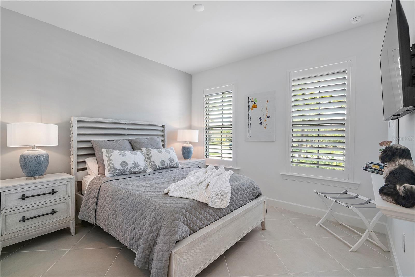 Persianas contra furacões, sistema de irrigação, caixa de correio privada