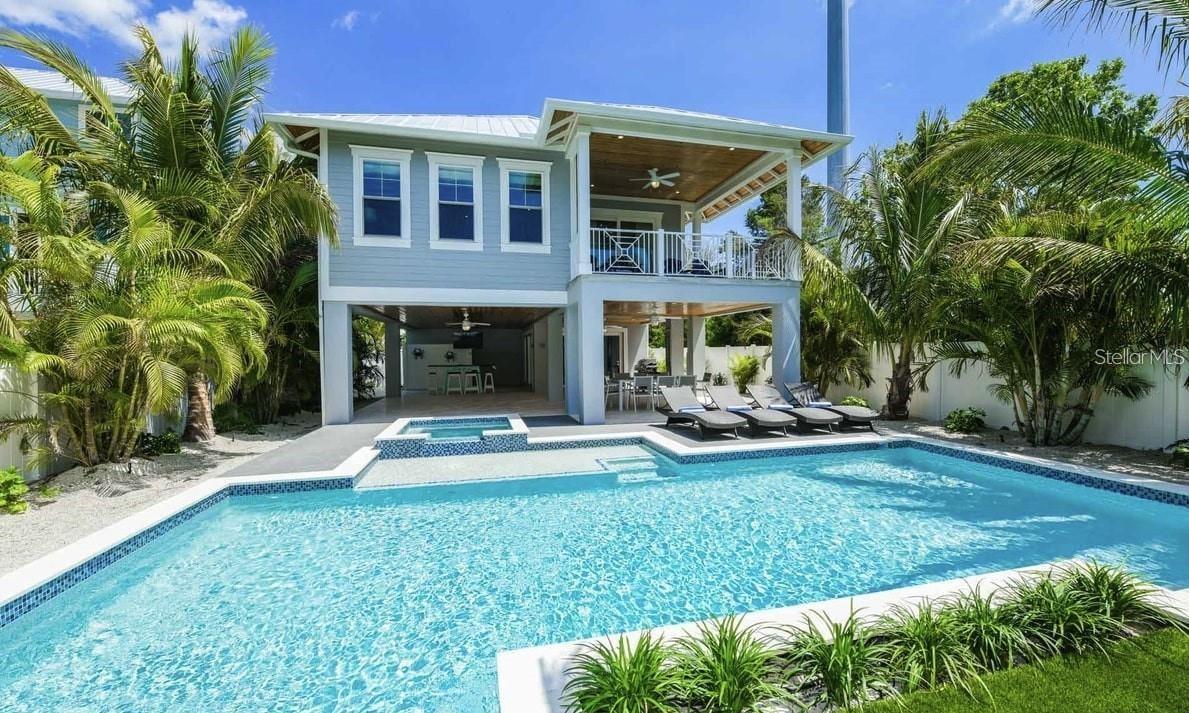 A casa personalizada está localizada centralmente em Anna Maria 2 quarteirões até a praia e a apenas uma quadra de todas as lojas e restaurantes da Pine Ave. Esta casa foi construída com toda a casa, foi construída com todos os acabamentos de ponta, incluindo pisos de ladrilhos de madeira, armários de madeira maciça, bancadas de quartzo, pacote de acabamento personalizado, tetos abobadados e vinha a mão mobiliada com uma decoração costeira. Do lado de fora, há uma grande piscina aquecida e spa com prateleira solar, cercada por terras tropicais que mancham o gramado artificial e até um putting verde. Isso tornará a segunda casa perfeita na Ilha Anna Maria com grande potencial de aluguel.