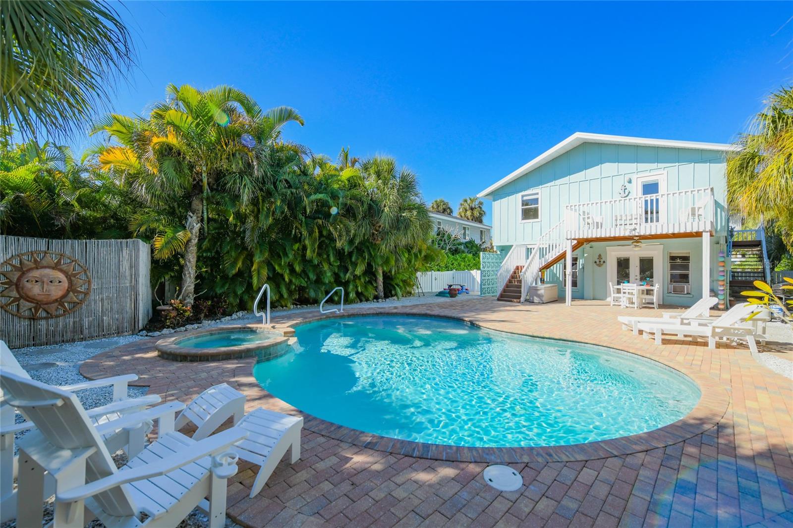Sua casa de praia aguarda, bem -vinda a "Ami Breeze" na Ilha Anna Maria! Esta casa de piscina elevada tem 2 quartos e 2 banheiros, juntamente com seu próprio oásis de quintal tropical. Localizado no coração do extremo norte, na altamente procurada cidade de Anna Maria, esse encantador costeiro fica a poucos passos da Baía e da Pine Avenue. Oferece uma área aberta de vida/jantar/cozinha com belos tetos de madeira abobadados que dão ao espaço principal uma sensação de cabana e tem muitas janelas para deixar o sol da Flórida entrar na varanda da frente. Abra as portas francesas para a varanda da frente e sente -se no balanço da varanda pendurada e aproveite o café da manhã e inúmeras baízes e brisa do Golfo. Esta casa possui uma cozinha totalmente equipada com muito espaço no armário, utensílios de aço inoxidável e uma ilha central com balcões de quartzo. A lavanderia e a despensa estão perto da cozinha. A espaçosa primária inclui um banho privativo atualizado privado, um closet e sua própria varanda com escadas até a linda piscina. Uma área da sala de jogos com um bar e uma mini geladeira fica no nível mais baixo da piscina com a garagem. Falando em piscina ... Uma das melhores características sobre esta propriedade é o lote e o quintal de 7.500 pés quadrados, que inclui uma adorável piscina e spa aquecida e aquecida com cachoeira, uma passarela pavimentada e terraço, paisagismo maduro, chuveiro ao ar livre para dedos de areia e um pátio coberto! As praias primitivas do Golfo de Anna Maria estão a uma curta caminhada, a bela baía, píer e lojas estão no final da rua e a loja geral da Pine Ave está apenas a um quarteirão. Basta embalar suas malas, ele vem completamente móvel, mobiliado com um bom histórico de aluguel e zoneado para aluguéis semanais. Outro bônus adicional é que é uma casa de Bert Harris aprovada, se você optar por adicionar dois quartos adicionais depois, sua ocupação pode ter até 10 convidados, dando a esta jóia receita futura extra ou espaço adicional para sua família. Ami Breeze não vai durar muito - ligue para agendar sua exibição hoje!