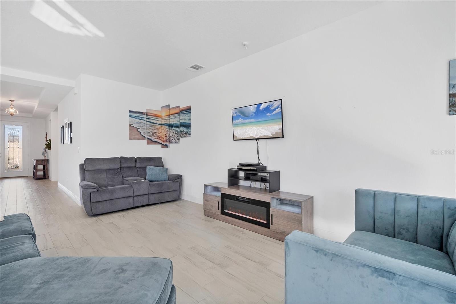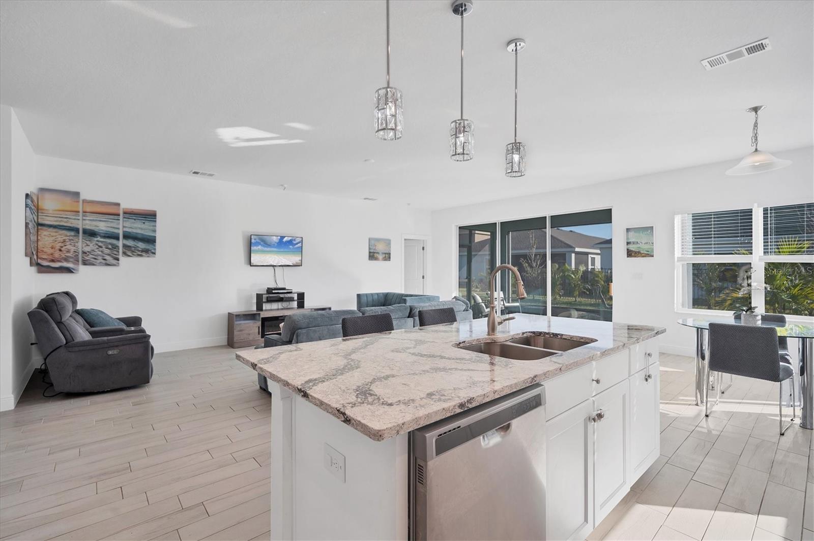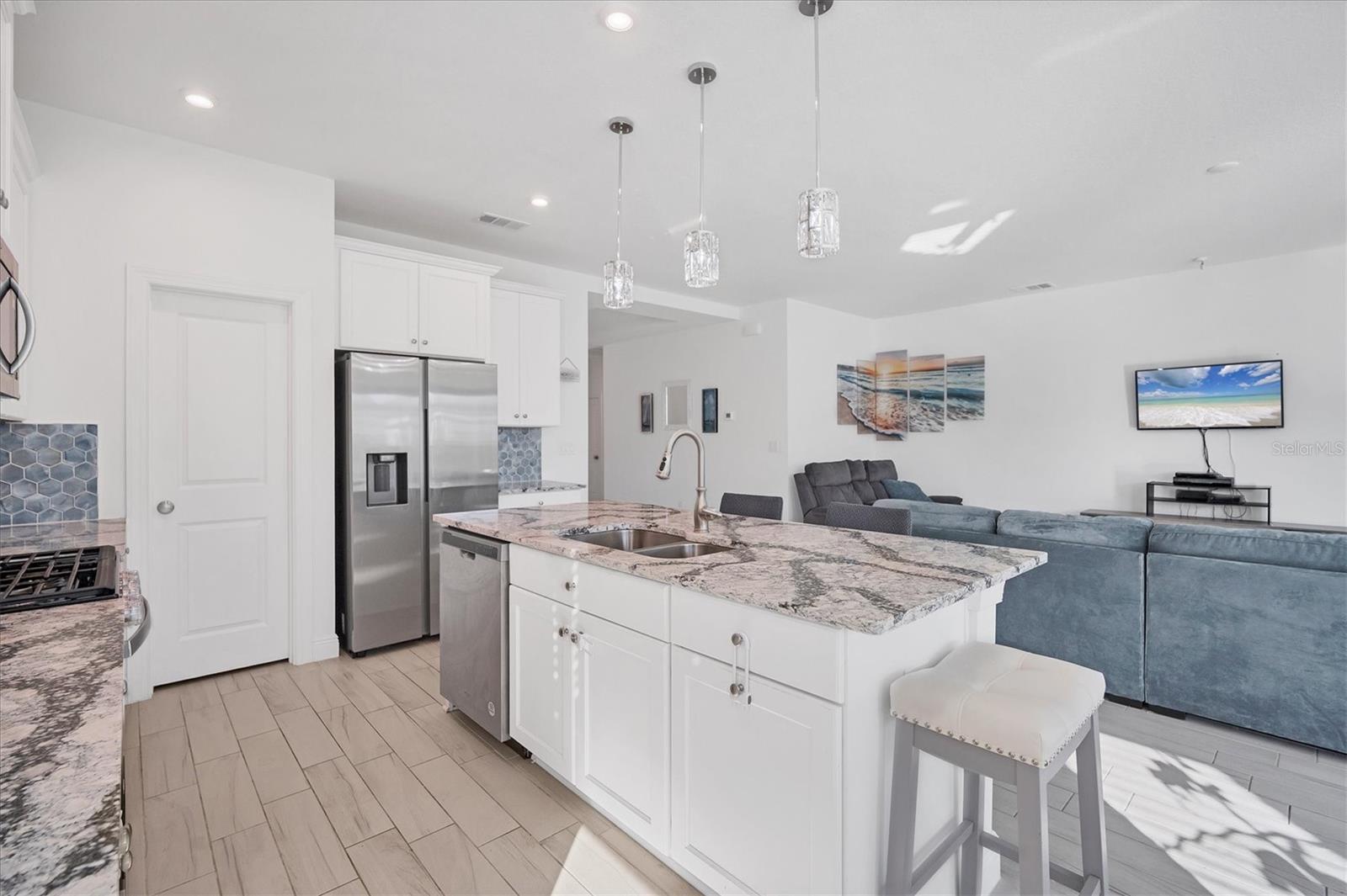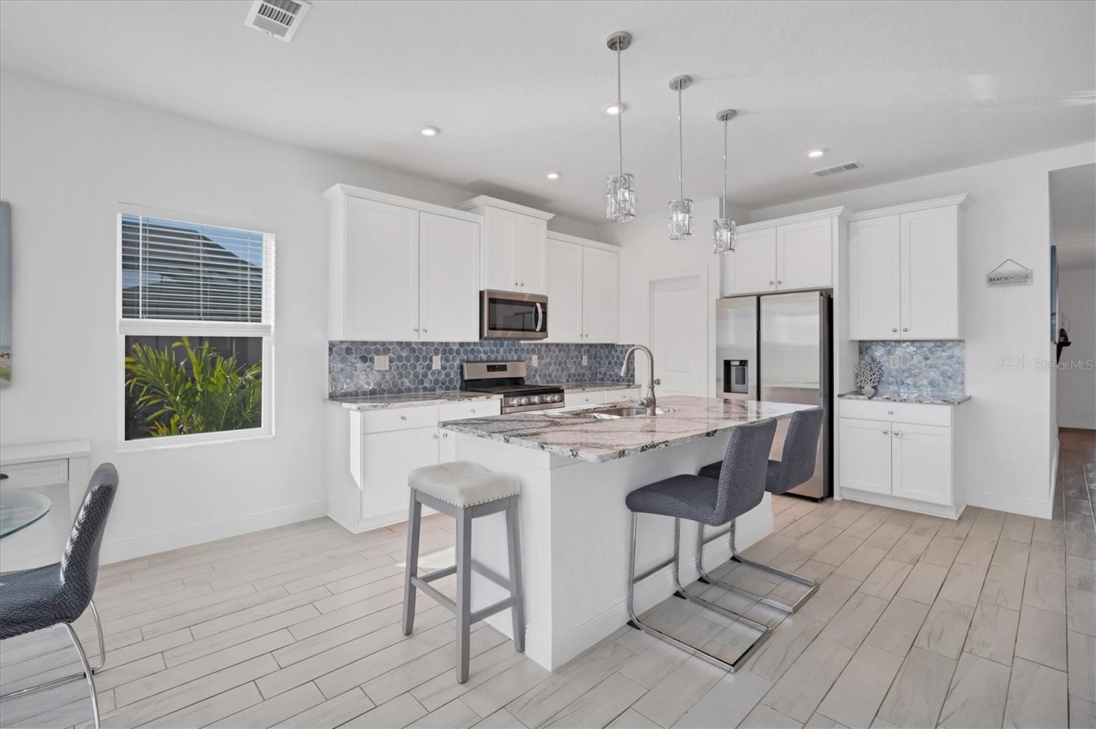 O vendedor dará US $ 5000 em assistência ao vendedor com oferta de preço total. US $ 55.000 em atualizações! Nova Lanai exibida !!! Novo paisagismo adicionado ao quintal para obter mais privacidade. Este impressionante, 3 leitos + flex RM, Brighton II, de 2 banheiros, por Cardel Homes, está na comunidade de água procurada. Sem zona de inundação! Construído para suportar o furacão ventos de até 130 mph, esta casa fica a 30 pés acima do nível do mar para adicionar a paz de espírito. Este Brighton II tem todas as atualizações de luxo que você está procurando! Desde o momento em que você entra, você será cativado pela entrada do salão extra grande que leva a uma porta deslizante da sala de estar de vidro de três panelas, inundando o espaço com luz natural. O fluxo contínuo de salas conectadas por portas adicionais torna diariamente a vida sem costura e conveniente para famílias ou solteiros ocupados. O posicionamento único da casa permite que a luz do sol entre o dia inteiro. A abundância de luz natural ao longo do dia aumenta a atmosfera aconchegante e zen da casa, a luz do sol entra devido ao posicionamento único da casa. Lá dentro, você encontrará 9 pés e 4 polegadas com tetos de bandeja em um vestíbulo de grandes dimensões. À direita estão dois quartos compartilhando um banho com uma combinação de banheira/chuveiro. À esquerda, está a sala flexível com armário de pé livre, que seria perfeito para uma cova, caverna, escritório, sala de mídia ou sala de jogos, é acessível através de portas francesas elegantes de vidro e convenientemente adjacente à lavanderia. A grande sala mostra uma estética de praia, com pisos de ladrilhos de prancha, design de conceito aberto-a nova lareira elétrica transmite com a propriedade. A cozinha tem uma ilha grande, bancadas em granito e um backsplash de ladrilhos de grife reflete uma matriz em tons de opala enquanto a luz do sol atinge o dia. 42" CABINETS with crown molding, brushed nickel hardware, soft-close drawers, STAINLESS STEEL APPLIANCES, and a generous walk-in pantry round out the kitchen's appeal. The dining area has been upgraded with two additional windows, and the living room boasts FLOOR OUTLETS and an oversized slider leading to the PAVERED SCREENED LANAI with a perfect view of the sunsets, which extends to a fire pit, perfect for outdoor gatherings. Lanai furniture é opcional. Lagos, 4 piscinas, 2 centros de fitness, tênis, basquete e quadras de pickleball, vôlei de areia, playgrounds, parques, splash bloce, café com vista para o lago em "The Landing", e um parque de cães designado, com o comando de um parque de cães. Riverview e Tampa. Modelo do construtor.