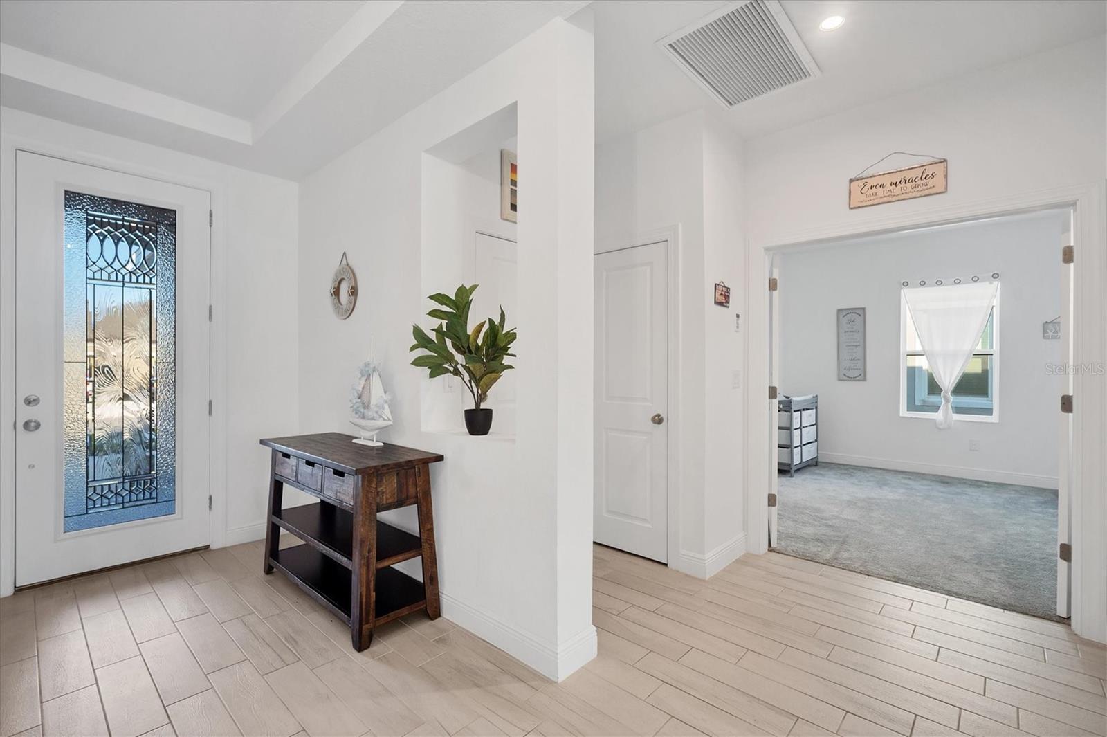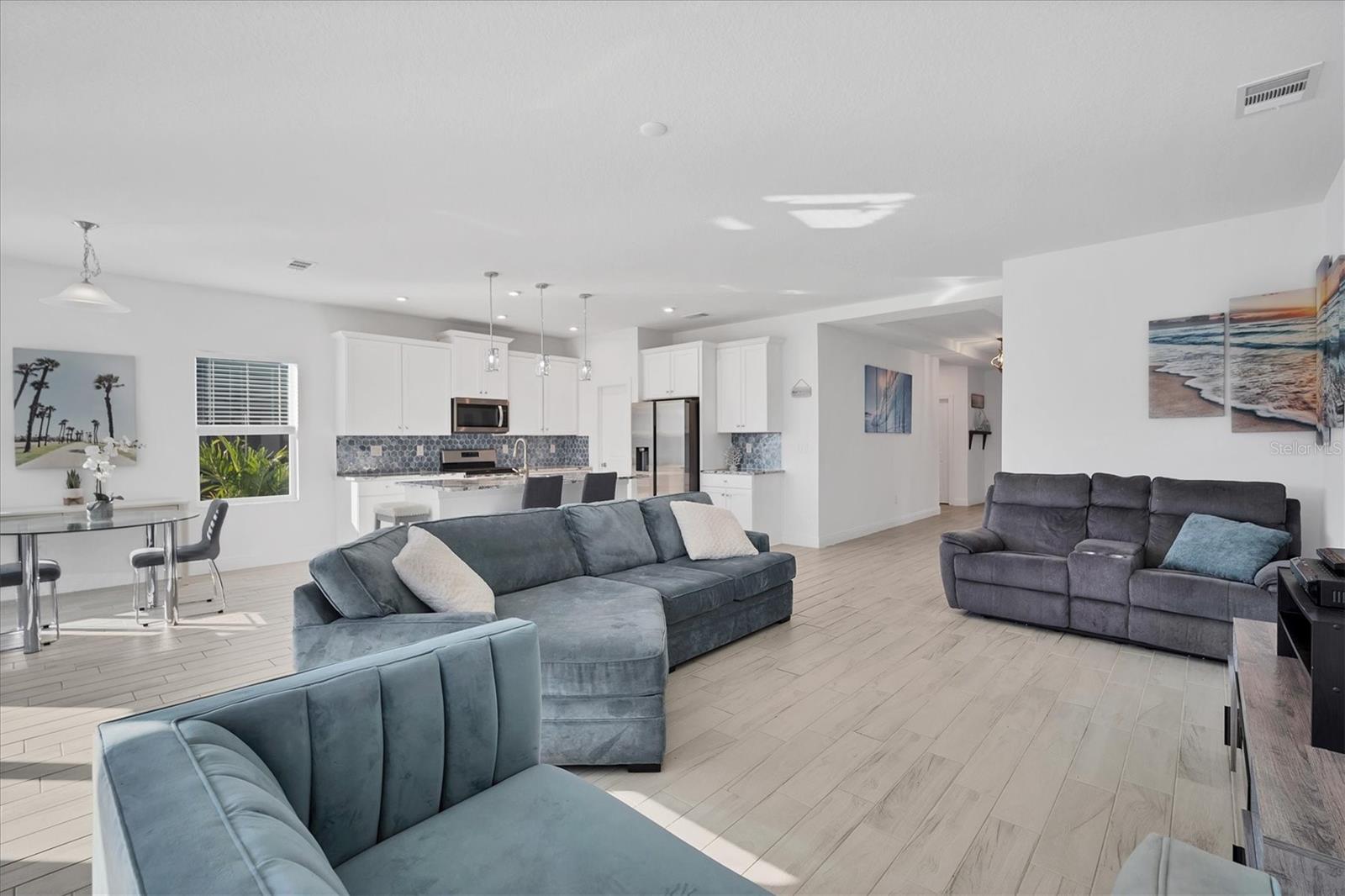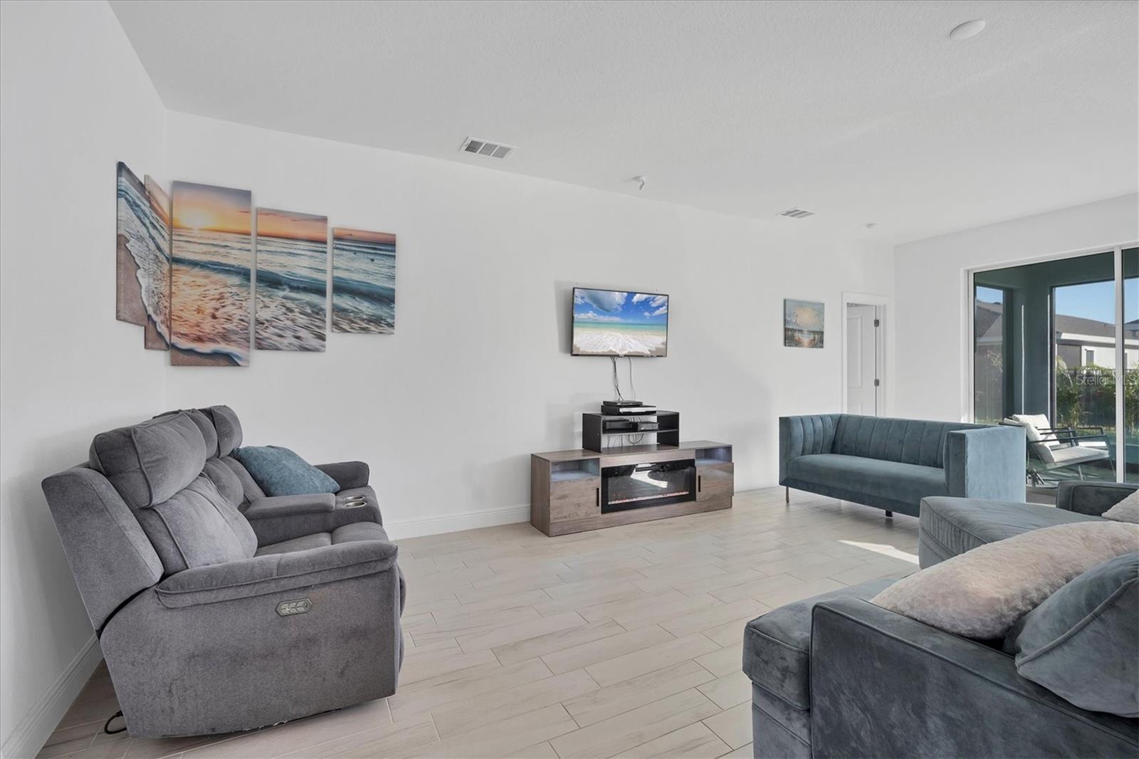O vendedor dará US $ 5000 em assistência ao vendedor com oferta de preço total. US $ 55.000 em atualizações! Nova Lanai exibida !!! Novo paisagismo adicionado ao quintal para obter mais privacidade. Este impressionante, 3 leitos + flex RM, Brighton II, de 2 banheiros, por Cardel Homes, está na comunidade de água procurada. Sem zona de inundação! Construído para suportar o furacão ventos de até 130 mph, esta casa fica a 30 pés acima do nível do mar para adicionar a paz de espírito. Este Brighton II tem todas as atualizações de luxo que você está procurando! Desde o momento em que você entra, você será cativado pela entrada do salão extra grande que leva a uma porta deslizante da sala de estar de vidro de três panelas, inundando o espaço com luz natural. O fluxo contínuo de salas conectadas por portas adicionais torna diariamente a vida sem costura e conveniente para famílias ou solteiros ocupados. O posicionamento único da casa permite que a luz do sol entre o dia inteiro. A abundância de luz natural ao longo do dia aumenta a atmosfera aconchegante e zen da casa, a luz do sol entra devido ao posicionamento único da casa. Lá dentro, você encontrará 9 pés e 4 polegadas com tetos de bandeja em um vestíbulo de grandes dimensões. À direita estão dois quartos compartilhando um banho com uma combinação de banheira/chuveiro. À esquerda, está a sala flexível com armário de pé livre, que seria perfeito para uma cova, caverna, escritório, sala de mídia ou sala de jogos, é acessível através de portas francesas elegantes de vidro e convenientemente adjacente à lavanderia. A grande sala mostra uma estética de praia, com pisos de ladrilhos de prancha, design de conceito aberto-a nova lareira elétrica transmite com a propriedade. A cozinha tem uma ilha grande, bancadas em granito e um backsplash de ladrilhos de grife reflete uma matriz em tons de opala enquanto a luz do sol atinge o dia. 42" CABINETS with crown molding, brushed nickel hardware, soft-close drawers, STAINLESS STEEL APPLIANCES, and a generous walk-in pantry round out the kitchen's appeal. The dining area has been upgraded with two additional windows, and the living room boasts FLOOR OUTLETS and an oversized slider leading to the PAVERED SCREENED LANAI with a perfect view of the sunsets, which extends to a fire pit, perfect for outdoor gatherings. Lanai furniture é opcional. Lagos, 4 piscinas, 2 centros de fitness, tênis, basquete e quadras de pickleball, vôlei de areia, playgrounds, parques, splash bloce, café com vista para o lago em "The Landing", e um parque de cães designado, com o comando de um parque de cães. Riverview e Tampa. Modelo do construtor.