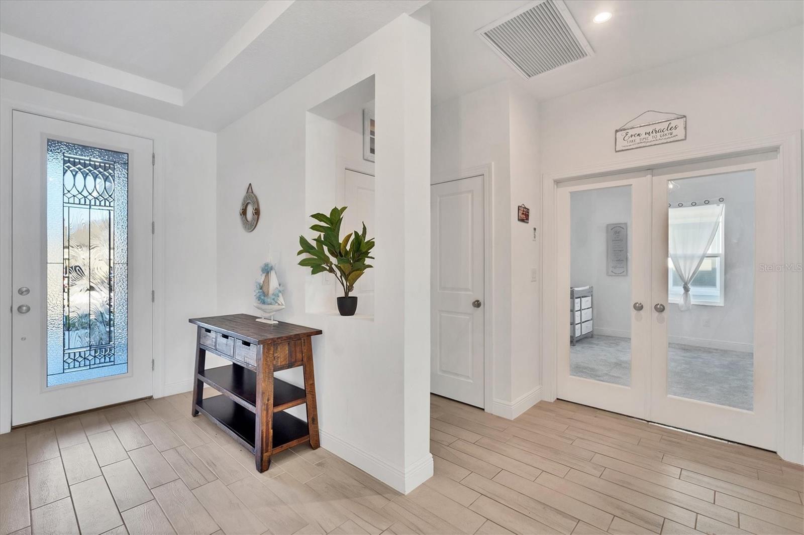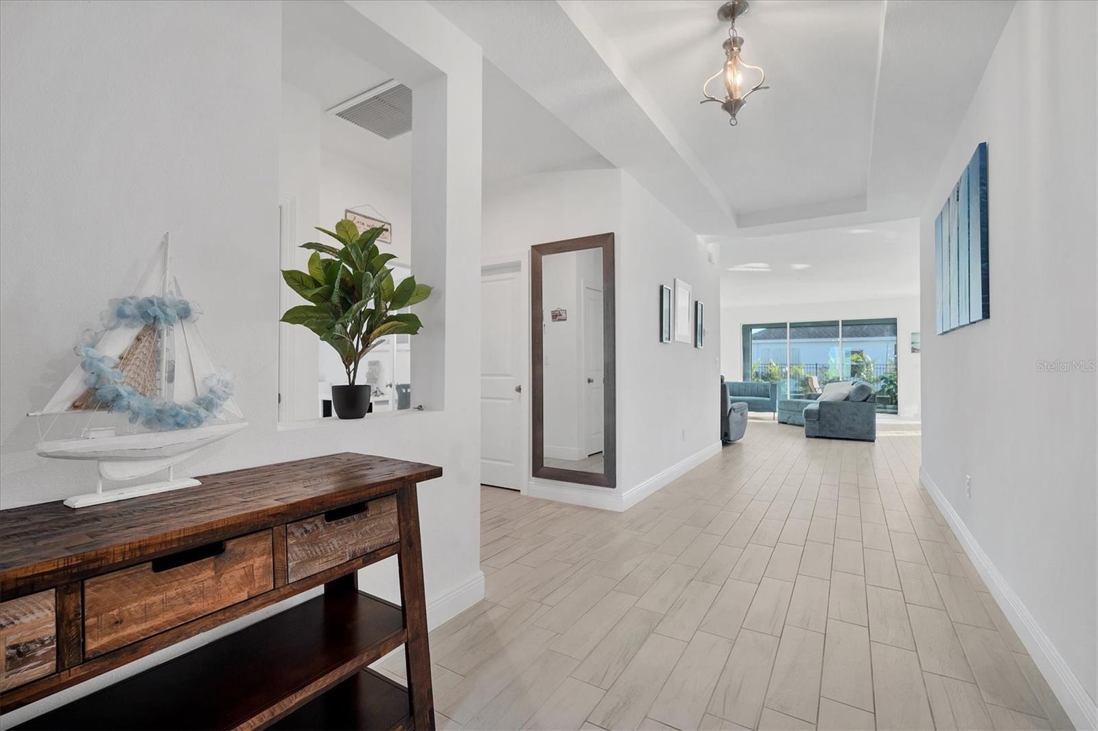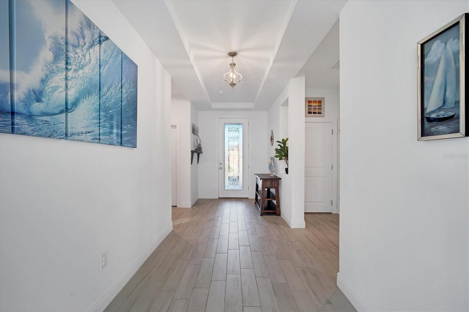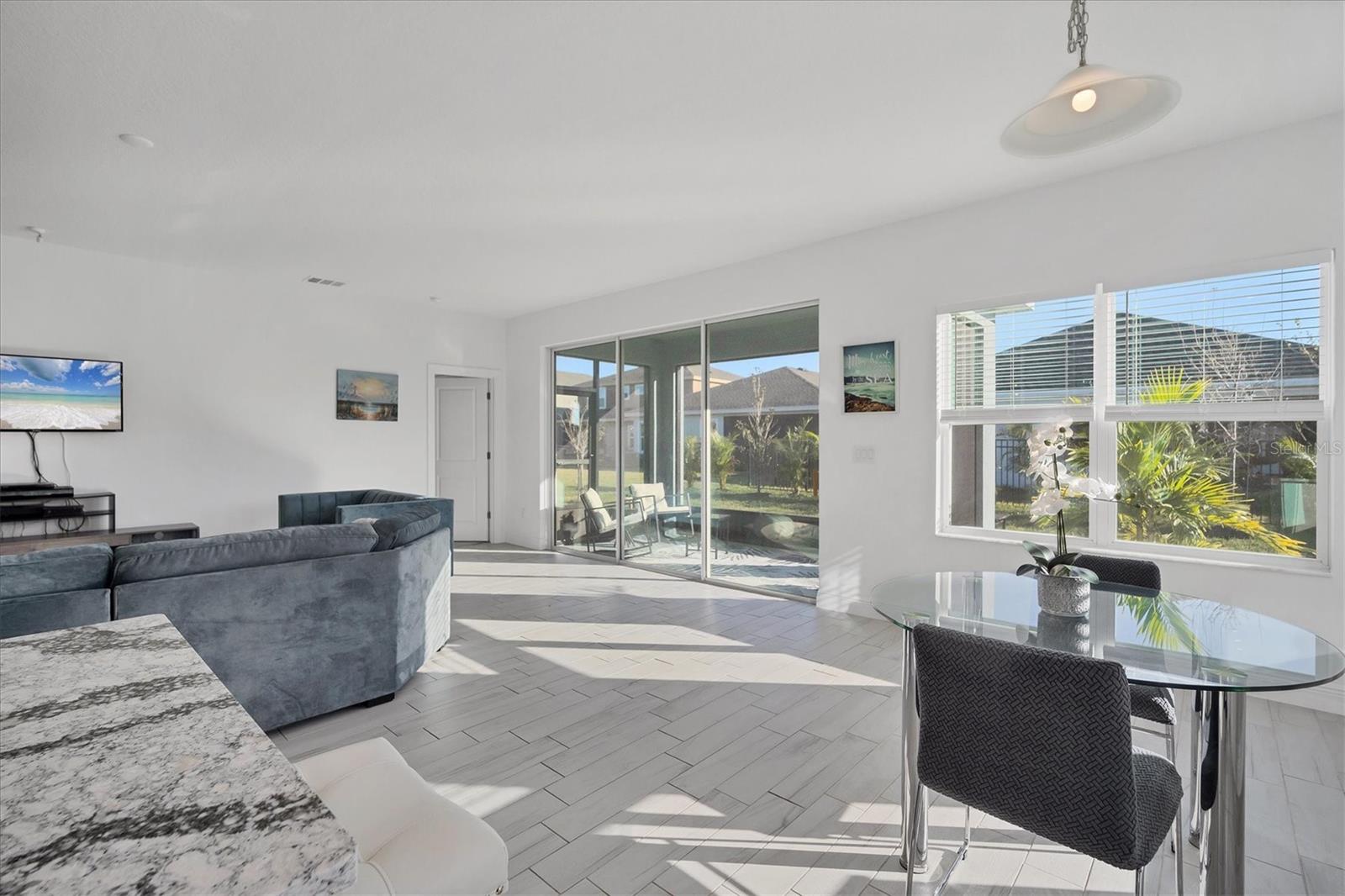 O vendedor dará US $ 5000 em assistência ao vendedor com oferta de preço total. US $ 55.000 em atualizações! Nova Lanai exibida !!! Novo paisagismo adicionado ao quintal para obter mais privacidade. Este impressionante, 3 leitos + flex RM, Brighton II, de 2 banheiros, por Cardel Homes, está na comunidade de água procurada. Sem zona de inundação! Construído para suportar o furacão ventos de até 130 mph, esta casa fica a 30 pés acima do nível do mar para adicionar a paz de espírito. Este Brighton II tem todas as atualizações de luxo que você está procurando! Desde o momento em que você entra, você será cativado pela entrada do salão extra grande que leva a uma porta deslizante da sala de estar de vidro de três panelas, inundando o espaço com luz natural. O fluxo contínuo de salas conectadas por portas adicionais torna diariamente a vida sem costura e conveniente para famílias ou solteiros ocupados. O posicionamento único da casa permite que a luz do sol entre o dia inteiro. A abundância de luz natural ao longo do dia aumenta a atmosfera aconchegante e zen da casa, a luz do sol entra devido ao posicionamento único da casa. Lá dentro, você encontrará 9 pés e 4 polegadas com tetos de bandeja em um vestíbulo de grandes dimensões. À direita estão dois quartos compartilhando um banho com uma combinação de banheira/chuveiro. À esquerda, está a sala flexível com armário de pé livre, que seria perfeito para uma cova, caverna, escritório, sala de mídia ou sala de jogos, é acessível através de portas francesas elegantes de vidro e convenientemente adjacente à lavanderia. A grande sala mostra uma estética de praia, com pisos de ladrilhos de prancha, design de conceito aberto-a nova lareira elétrica transmite com a propriedade. A cozinha tem uma ilha grande, bancadas em granito e um backsplash de ladrilhos de grife reflete uma matriz em tons de opala enquanto a luz do sol atinge o dia. 42" CABINETS with crown molding, brushed nickel hardware, soft-close drawers, STAINLESS STEEL APPLIANCES, and a generous walk-in pantry round out the kitchen's appeal. The dining area has been upgraded with two additional windows, and the living room boasts FLOOR OUTLETS and an oversized slider leading to the PAVERED SCREENED LANAI with a perfect view of the sunsets, which extends to a fire pit, perfect for outdoor gatherings. Lanai furniture é opcional. Lagos, 4 piscinas, 2 centros de fitness, tênis, basquete e quadras de pickleball, vôlei de areia, playgrounds, parques, splash bloce, café com vista para o lago em "The Landing", e um parque de cães designado, com o comando de um parque de cães. Riverview e Tampa. Modelo do construtor.