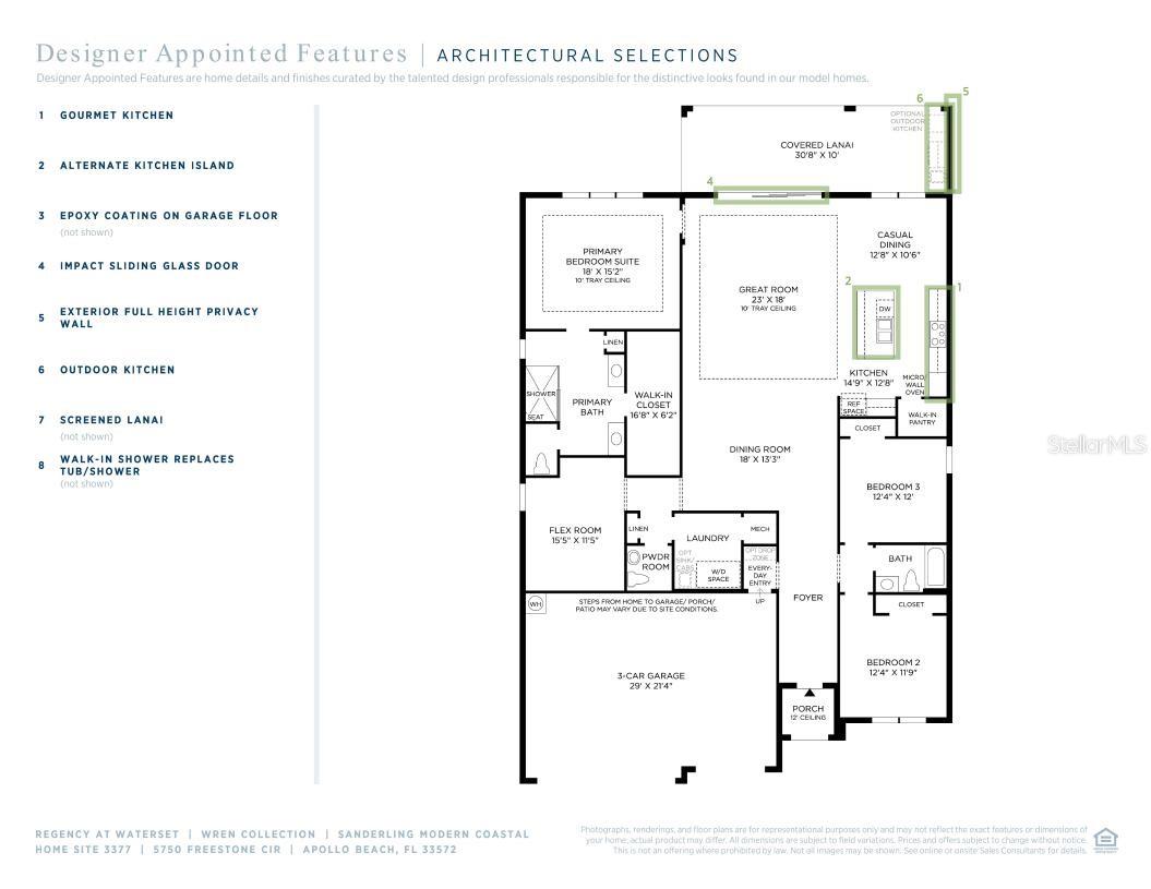Nossa planta baixa "Sanderling" da Toll Brothers oferece uma convidativa entrada coberta e um foyer acolhedor que flui para a ampla sala grande e área de jantar. Com vista para a desejável grande varanda coberta, a cozinha bem projetada está equipada com uma grande ilha central, bastante balcão e armários e uma enorme despensa. A graciosa suíte do quarto principal é completa com um enorme closet e banheiro principal tipo spa com pias duplas, chuveiro grande e luxuoso, armazenamento de roupa de cama e vaso sanitário privativo. Os quartos secundários possuem armários espaçosos e acesso compartilhado ao banheiro completo no corredor. Os destaques adicionais incluem uma sala flexível isolada, lavabo conveniente no saguão, lavanderia com localização central e armazenamento adicional.