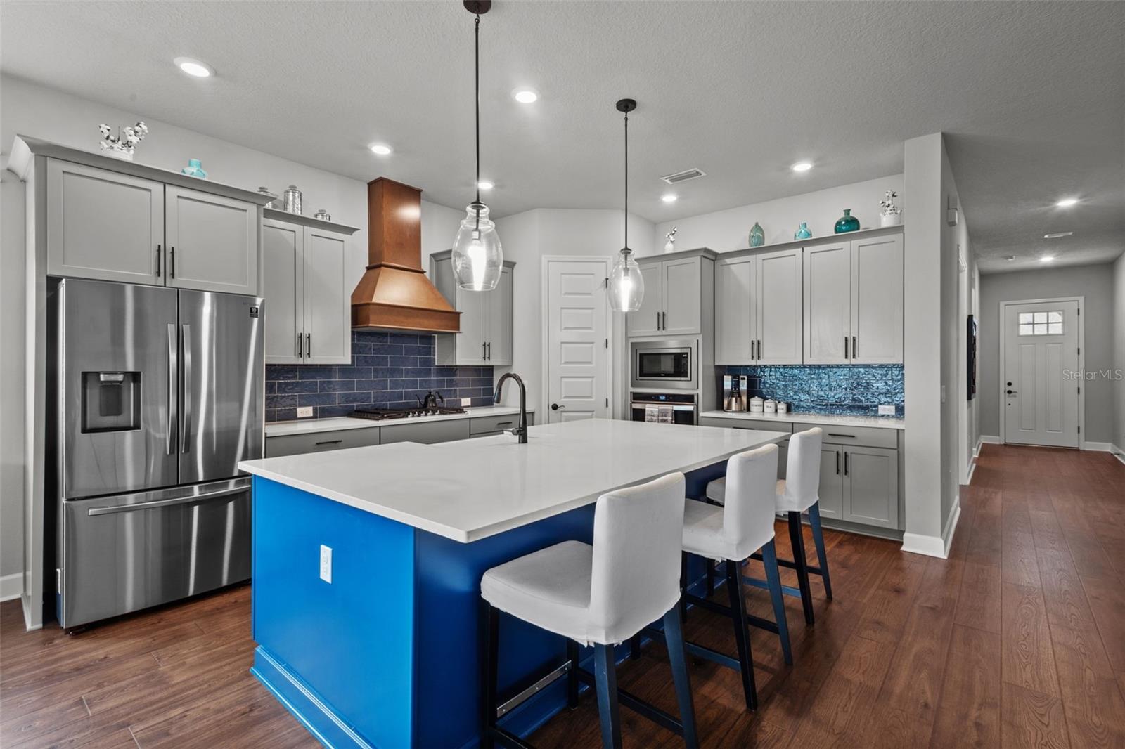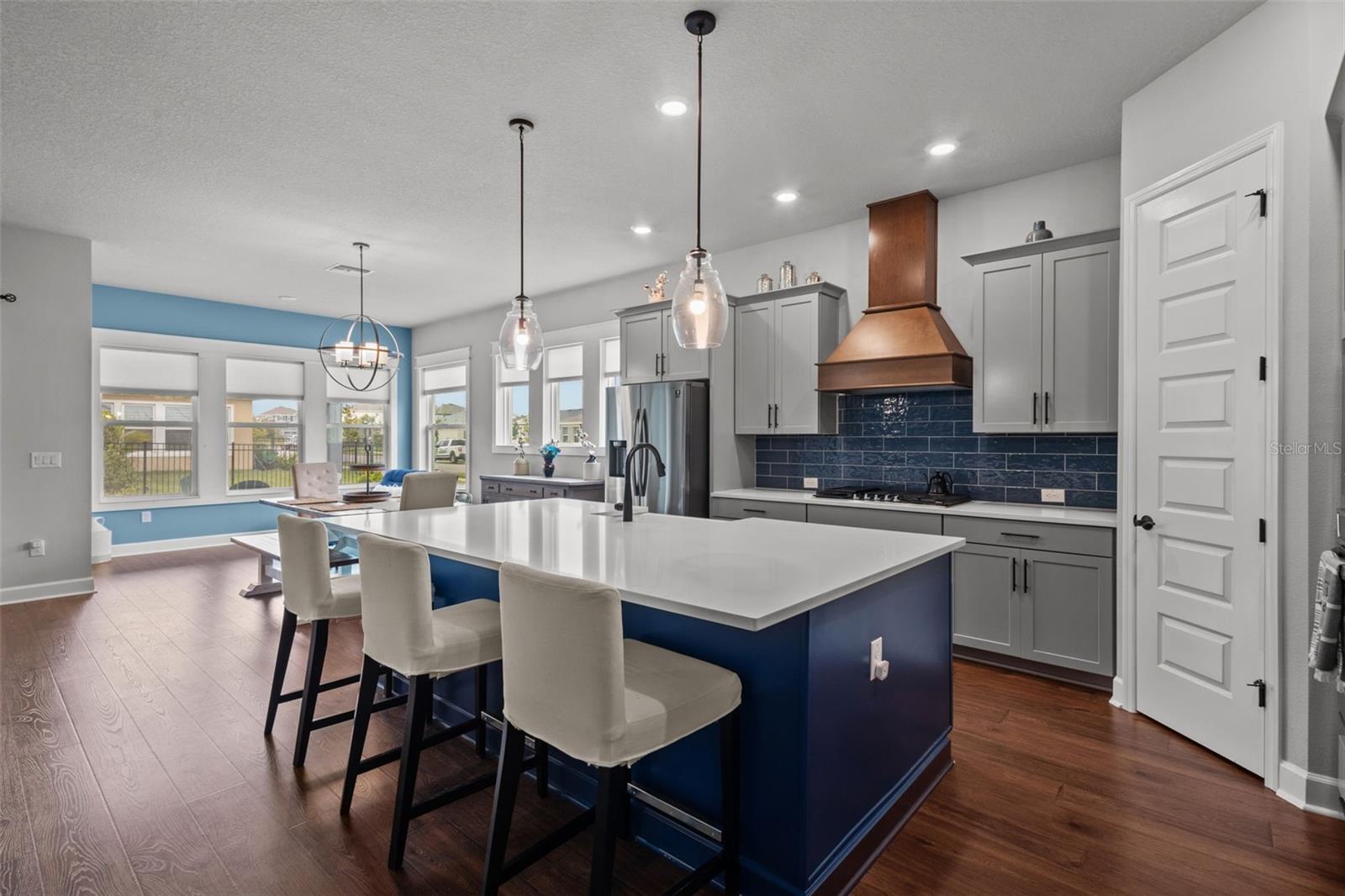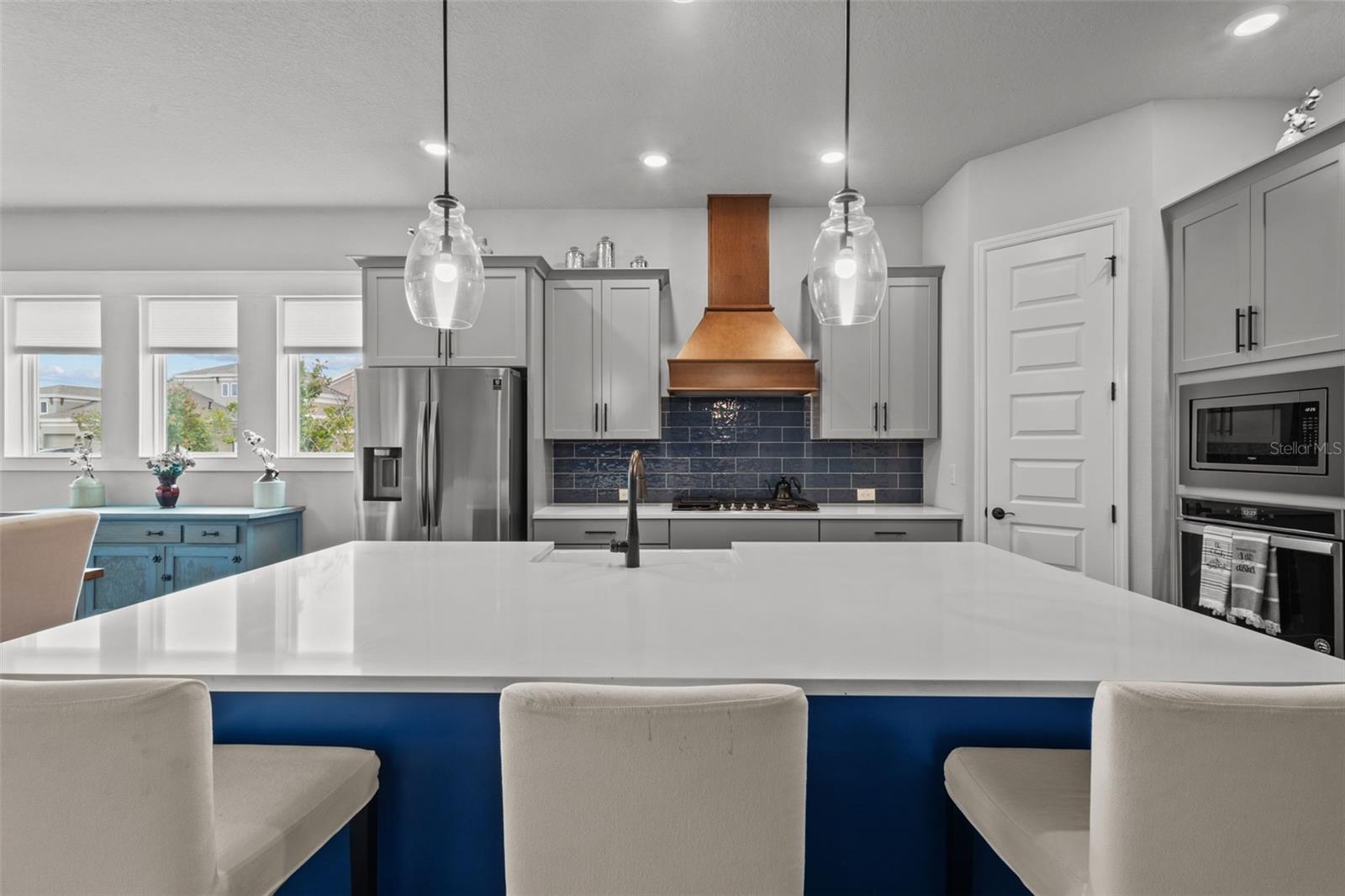Entre nesta deslumbrante residência em Waterset que exala luxo e conforto. O Modelo Serafina da David Weekley Homes, construído em 2021, apresenta design e decoração impecáveis que vão deixar você maravilhado. Esta casa é meticulosamente mantida. Possui portas de painel de 8' por toda parte, garagem para 3 carros, 4 quartos e escritório/escritório/arrumos. As áreas comuns são adornadas com lindos pisos de madeira, enquanto a cozinha e todos os banheiros possuem bancadas de quartzo. A planta aberta é repleta de luz natural. Situada em um espaçoso terreno de esquina na desejável comunidade de Waterset, a propriedade recebe você com um quintal paisagístico, uma varanda coberta e um ambiente sereno que incorpora a vida em um único andar. Ao entrar no hall de entrada, o piso de madeira projetado convida você a explorar o resto da casa. À direita, você encontrará um quarto extra, um banheiro completo e um versátil escritório, escritório ou escritório. O quarto extra é perfeito para uma suíte de hóspedes, pois está convenientemente conectado a um banheiro completo com chuveiro. O escritório/estúdio/arrumos é banhado pela luz natural proveniente das suas duas grandes janelas e está localizado na parte frontal da casa para maior comodidade. Em frente ao escritório, existe um mudroom com embutidos personalizados que dá acesso à garagem para 3 carros e à lavandaria interior. Seguindo em frente, você ficará cativado pela abundância de luz que preenche a cozinha, a grande sala e a área de jantar. Este espaço é perfeito para qualquer ocasião. A cozinha está equipada com bancadas de quartzo, armários de madeira de 42 "com sancas e eletrodomésticos de aço inoxidável, micro-ondas embutido, forno a gás e fogão, exaustor embutido personalizado, pia grande de casa de fazenda, balcão para café da manhã, e um closet na despensa. A área de jantar oferece amplo espaço para uma grande mesa de jantar ou uma mesa menor com assentos aconchegantes para leitura nos finais de semana. A grande sala oferece espaço suficiente para um sofá secional e uma TV grande, além de uma roupa de cama. armário e um corredor que leva ao 3º e 4º quartos Estes quartos compartilham um armário de roupa de cama adicional e um banheiro completo com banheira e chuveiro. Na parte traseira da casa, você encontrará o quarto principal com banheiro privativo. banheiro. O quarto principal possui banheiro privativo, 3 janelas grandes e teto falso, proporcionando amplo espaço para móveis de quarto grandes. O banheiro privativo inclui box amplo, banheira independente, pia dupla e bancadas de quartzo. e dois closets com o armário maior apresentando um espaço de armário embutido personalizado. Aproveite a comodidade da ampla varanda coberta, completa com pré-canalização de água e gás, e pré-cablagem para cozinha externa na sala de estar com vista para o quintal paisagístico, perfeita para relaxar com um livro ou saborear seu café da manhã. O bairro de Waterset oferece trilhas, parques, piscinas e playgrounds, com um novo complexo esportivo nas proximidades com gazebos, campos esportivos, um trepa-trepa e vista para o lago. O clube inclui piscinas em estilo resort, quadras de tênis, área de praia e muito mais. Aproveite o parque splash pad, os parques para cães e as escolas próximas, como SouthShore Montessori e Doby Elementary. Ligue hoje para uma exibição personalizada desta comunidade vibrante.