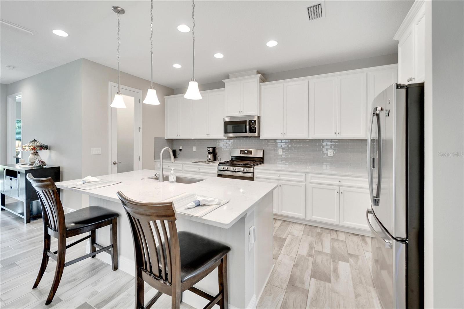 *** Empréstimo de VA assumido com baixa taxa de juros de 2,38% para a vida útil do empréstimo *** com pagamentos de hipotecas tão baixos quanto aproximadamente US $ 2400,11 meses. Com a aprovação do Wells Fargo Bank. Esta oportunidade é para veteranos e não veteranos. As taxas se aplicam. Apresentando uma bela casa de Westbay. O modelo Sandpiper apresenta uma planta moderna e aberta, com muita luz natural e um lanai selecionado para vida ao ar livre, tetos de 9 pés em áreas comuns, tetos de 11 pés em hall de entrada, portas de 8 pés em toda a casa, a casa é conectada para o sistema surround e o sistema de segurança. O elegante hall de entrada com teto de 11 pés leva a quartos secundários encantadores, enquanto o coração da casa possui uma cozinha de ilha elegante com utensílios de aço inoxidável, os armários de linho de Timberlake Downing Duraform, bancadas cinzentas de curan cinza e faucets de moen. Você desfrutará de uma suíte do quarto de hóspedes com seu próprio banheiro privativo, adicionando conveniência extra. O piso nas principais áreas de estar é impressionante telha de madeira esterlina. Localizado na comunidade de água procurada, conhecida por seu charme de cidade pequena e abundância de comodidades, incluindo piscinas, parques e trilhas para caminhada. Experimente o melhor da Flórida que vive nesta bela casa.
