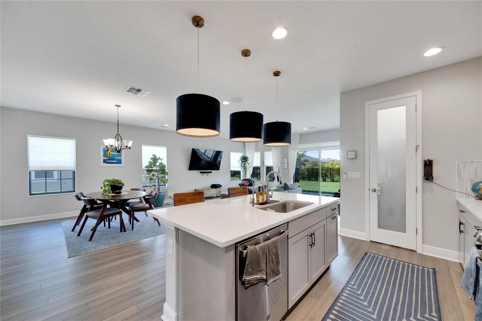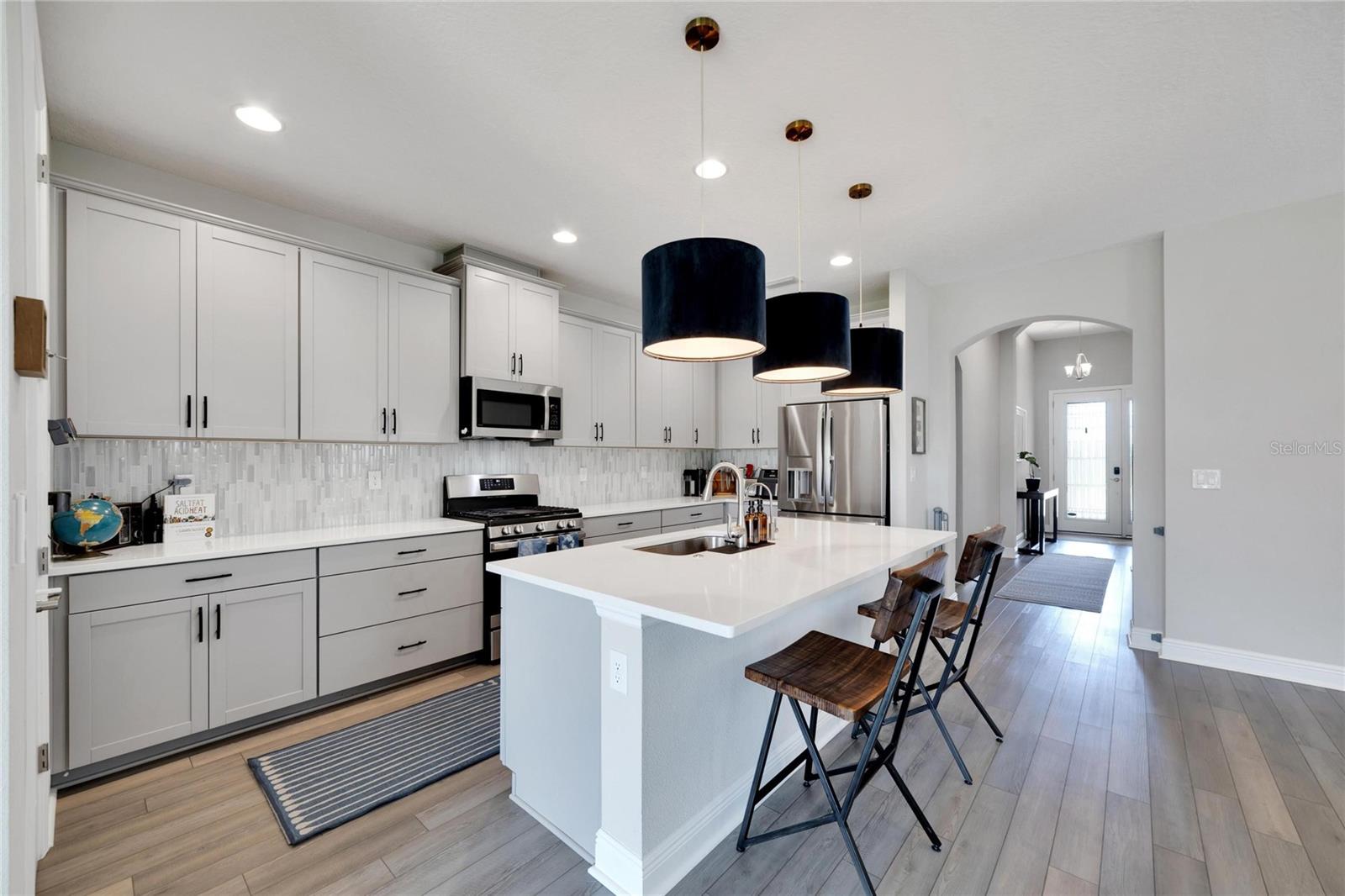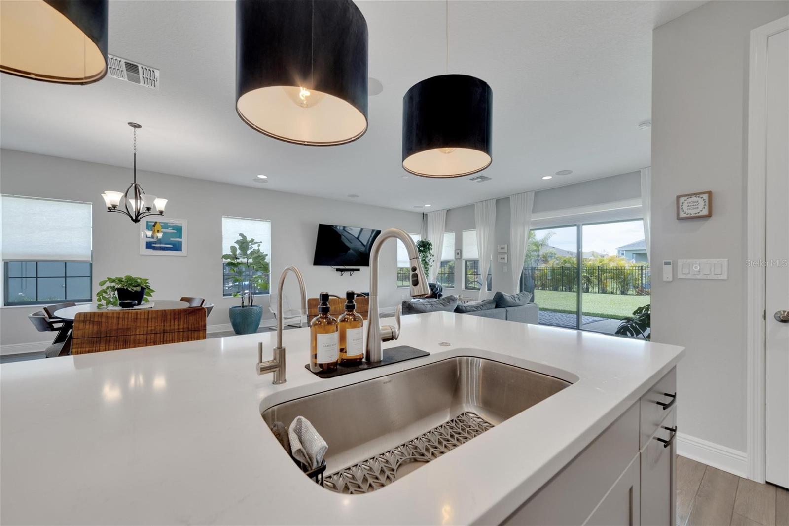 Se você está procurando uma impressionante casa térrea de 4 quartos, quase nova, em Waterset, você encontrou! Ao entrar, você vai adorar imediatamente os tetos altos e o lindo piso de pranchas de vinil cinza, aumentando a sensação de luz e arejamento em toda a área de estar. Esta casa construída em 2021 apresenta uma planta dividida para maior privacidade com 2 quartos de hóspedes e o 2º banheiro completo na frente da casa. À medida que você continua pelo hall de entrada, você encontra um corredor para o terceiro quarto de hóspedes e lavanderia à direita antes de entrar na grande sala de conceito aberto com uma linda cozinha, ampla sala de jantar e sala de estar com porta de correr de acesso à parte traseira coberta. varanda e quintal. Esta cozinha é exatamente onde você deseja cozinhar e se divertir com um lindo backsplash de azulejos, bancadas de quartzo e um fogão a gás. Fora da sala você encontra a suíte principal com um quarto enorme, 2 closets e um fabuloso banheiro privativo com pia dividida e grande chuveiro de azulejos. Você não apenas obtém o benefício de esta casa ter apenas alguns anos de idade, mas também pode desfrutar de todos os extras que o vendedor adicionou, incluindo uma persiana romana motorizada sobre a porta traseira deslizante, amaciante de água para toda a casa e sistema de osmose reversa para a pia da cozinha e geladeira, calhas externas, sistema de segurança Ring e luminárias pendentes sobre a ilha da cozinha. Esta é realmente uma casa para a qual você se muda e imediatamente se sente em casa. Esta linda casa e varanda nos fundos não são apenas incríveis para aproveitar o clima ensolarado da Flórida, mas você também tem acesso às comodidades em estilo resort que solidificam Waterset como a principal comunidade do norte de Apollo Beach. Prepare-se para aproveitar as piscinas comunitárias, a academia, as quadras de tênis, o splash pad, o parque para cães e muito mais, tornando mais fácil nem sair do bairro para se divertir. Para quem deseja visitar o centro de Tampa, as praias do Golfo ou a Disney em Orlando, você tem acesso à I-75 a partir de Big Bend para aproveitar tudo o que Tampa Bay tem a oferecer! Você não quer perder esta. Comece a fazer as malas, você encontrou sua próxima casa!