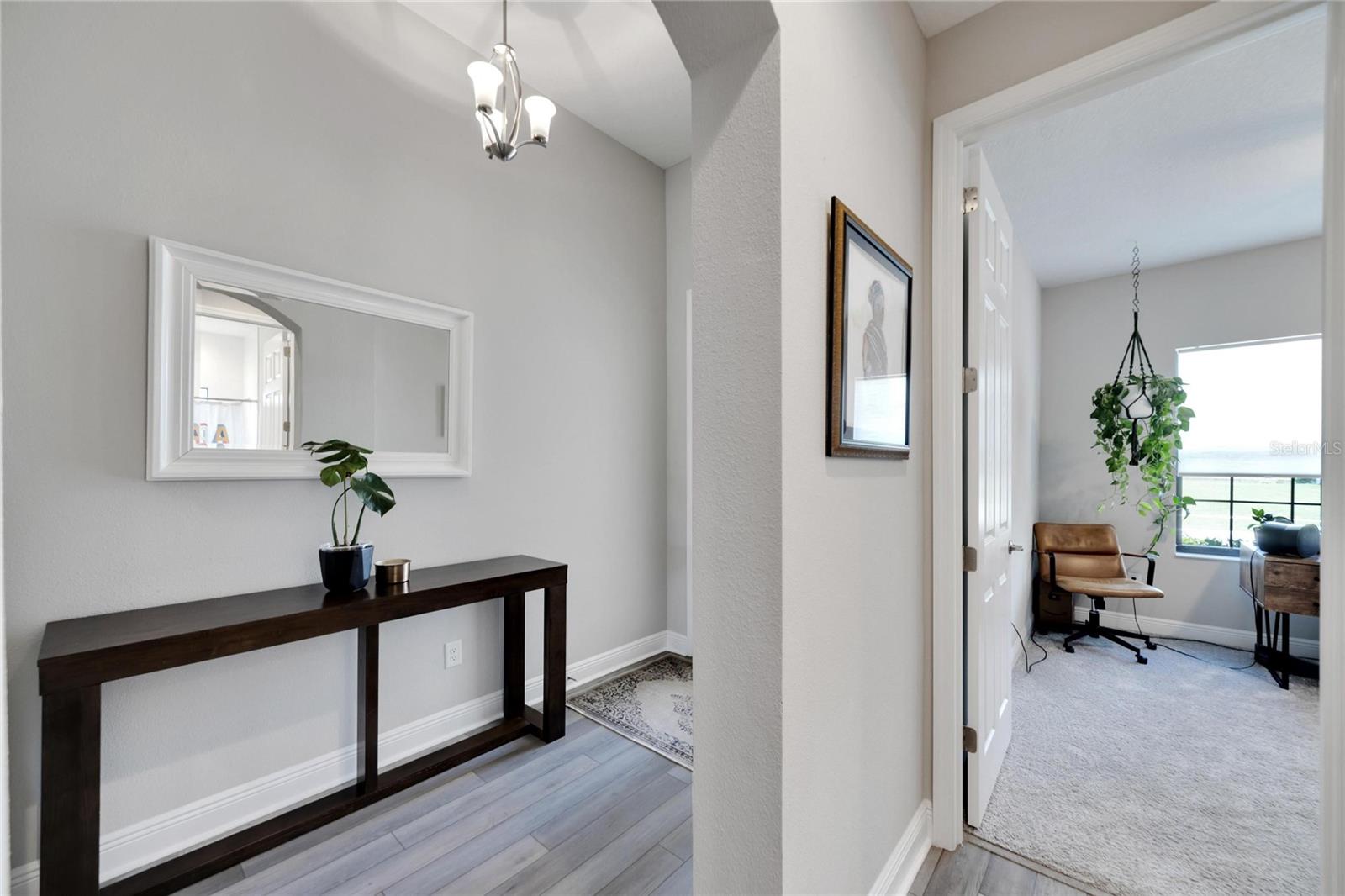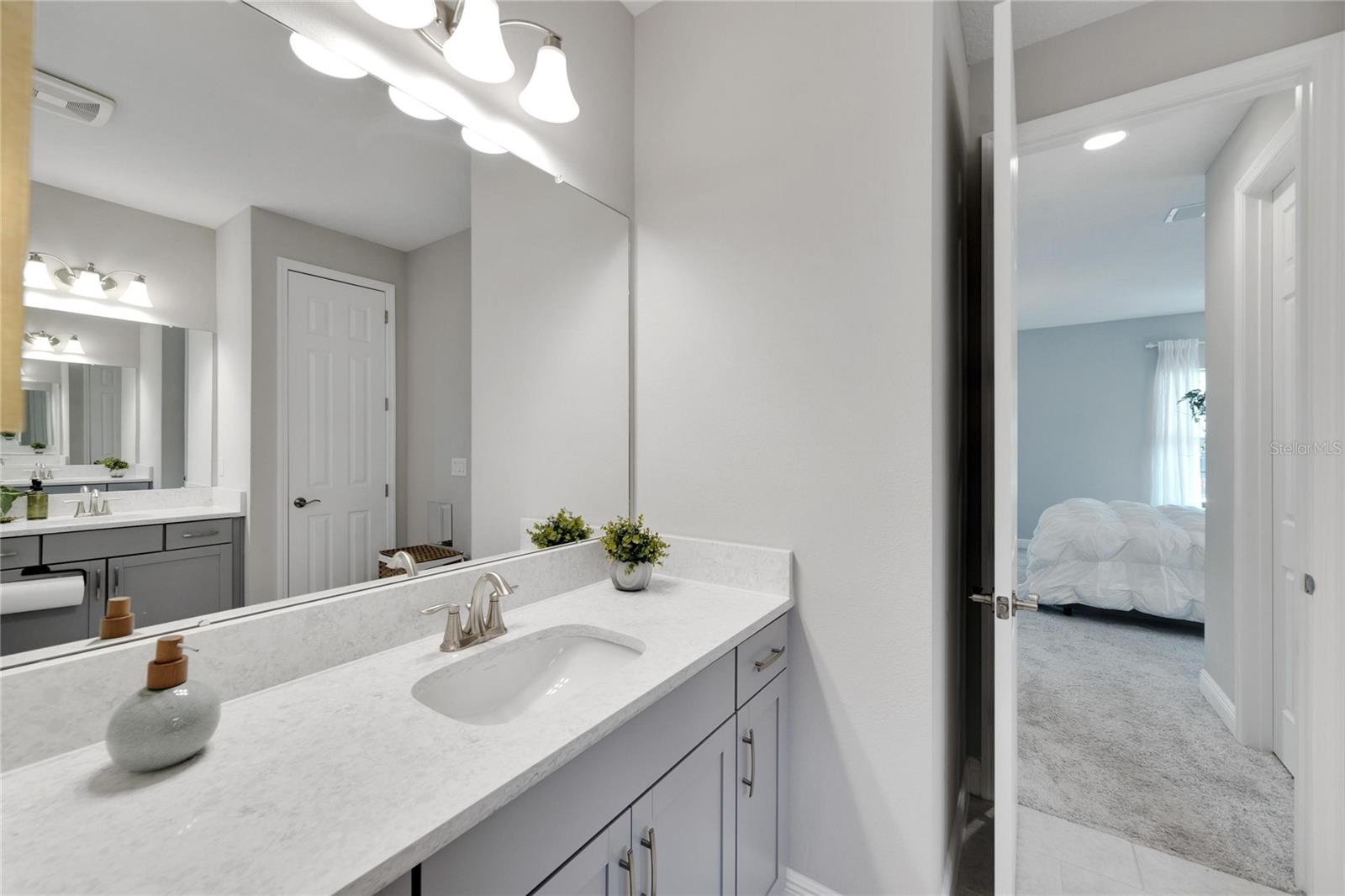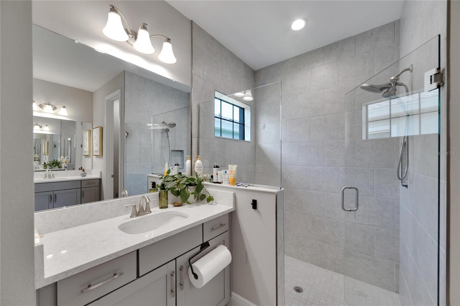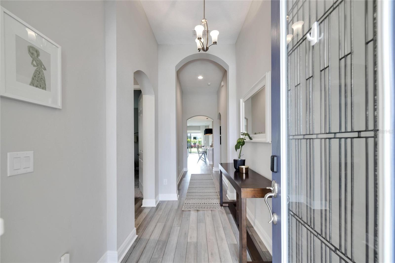 Se você está procurando uma impressionante casa térrea de 4 quartos, quase nova, em Waterset, você encontrou! Ao entrar, você vai adorar imediatamente os tetos altos e o lindo piso de pranchas de vinil cinza, aumentando a sensação de luz e arejamento em toda a área de estar. Esta casa construída em 2021 apresenta uma planta dividida para maior privacidade com 2 quartos de hóspedes e o 2º banheiro completo na frente da casa. À medida que você continua pelo hall de entrada, você encontra um corredor para o terceiro quarto de hóspedes e lavanderia à direita antes de entrar na grande sala de conceito aberto com uma linda cozinha, ampla sala de jantar e sala de estar com porta de correr de acesso à parte traseira coberta. varanda e quintal. Esta cozinha é exatamente onde você deseja cozinhar e se divertir com um lindo backsplash de azulejos, bancadas de quartzo e um fogão a gás. Fora da sala você encontra a suíte principal com um quarto enorme, 2 closets e um fabuloso banheiro privativo com pia dividida e grande chuveiro de azulejos. Você não apenas obtém o benefício de esta casa ter apenas alguns anos de idade, mas também pode desfrutar de todos os extras que o vendedor adicionou, incluindo uma persiana romana motorizada sobre a porta traseira deslizante, amaciante de água para toda a casa e sistema de osmose reversa para a pia da cozinha e geladeira, calhas externas, sistema de segurança Ring e luminárias pendentes sobre a ilha da cozinha. Esta é realmente uma casa para a qual você se muda e imediatamente se sente em casa. Esta linda casa e varanda nos fundos não são apenas incríveis para aproveitar o clima ensolarado da Flórida, mas você também tem acesso às comodidades em estilo resort que solidificam Waterset como a principal comunidade do norte de Apollo Beach. Prepare-se para aproveitar as piscinas comunitárias, a academia, as quadras de tênis, o splash pad, o parque para cães e muito mais, tornando mais fácil nem sair do bairro para se divertir. Para quem deseja visitar o centro de Tampa, as praias do Golfo ou a Disney em Orlando, você tem acesso à I-75 a partir de Big Bend para aproveitar tudo o que Tampa Bay tem a oferecer! Você não quer perder esta. Comece a fazer as malas, você encontrou sua próxima casa!