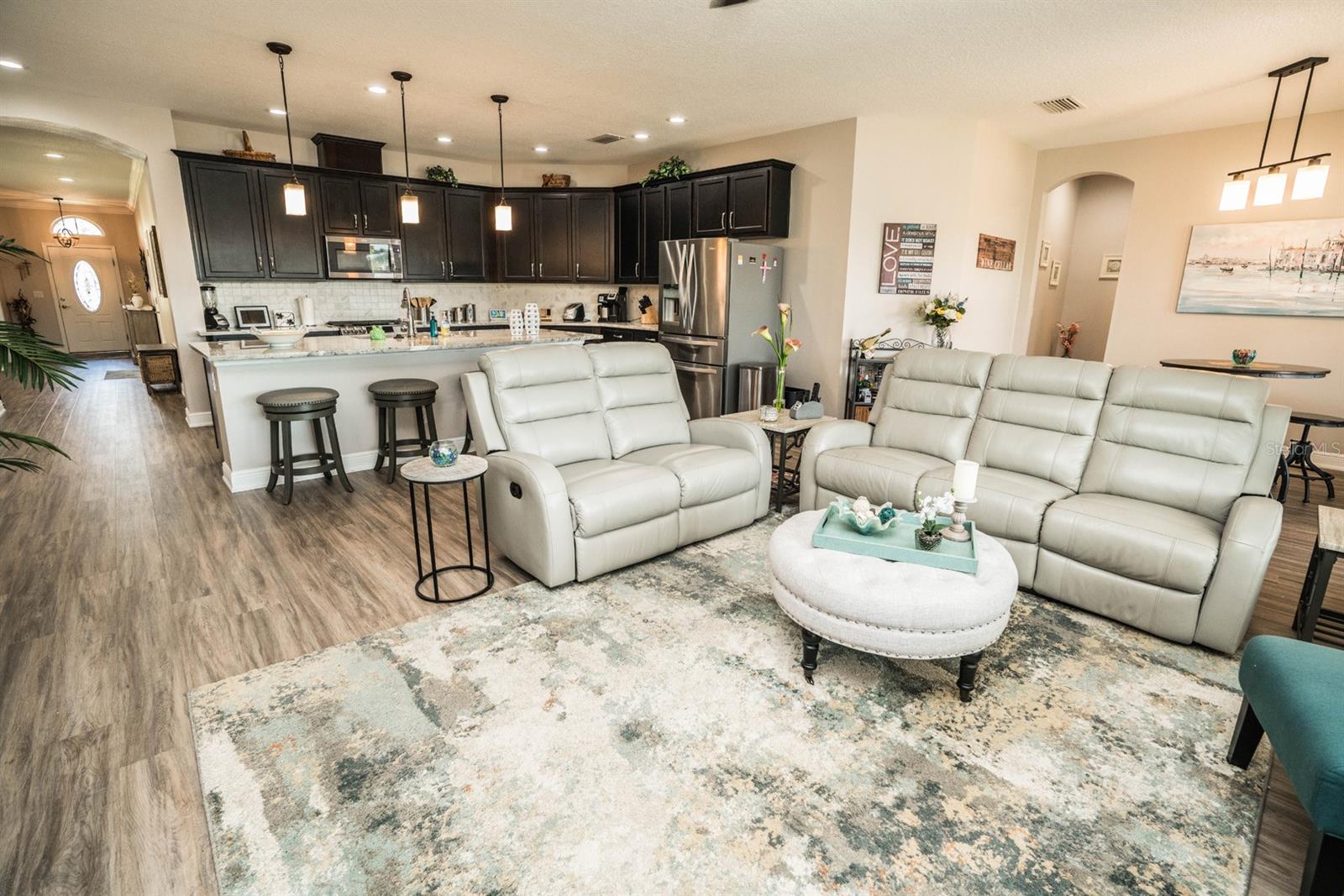 O comprador cancelou sem motivo. Situada na prestigiada comunidade de resorts Apollo Beach Waterset, esta deslumbrante casa de fazenda 4BR/3BA oferece aproximadamente 2.610 pés quadrados de espaço luxuoso com uma pitoresca vista para o lago à beira-mar. O imóvel possui planta dividida, perfeita para famílias, com área de retiro entre os quartos secundários e um toque único na suíte da sogra, oferecendo maior flexibilidade e privacidade. A comunidade abriga quatro escolas, mais de 32 quilômetros de trilhas pitorescas e mais de sete lagos, proporcionando amplas oportunidades para desfrutar da vida selvagem e da beleza natural de tirar o fôlego. A cozinha gourmet é o sonho de qualquer chef, com bancada em granito, uma grande ilha, armários de 42 polegadas e eletrodomésticos em aço inoxidável. A suíte master é um oásis privativo com teto falso, sancas, janela saliente com vista para o lago tranquilo e banheiro tipo spa com novas bancadas de granito, box amplo, banheira de imersão e amplo closet. armário. Esta casa está repleta de atualizações, incluindo um aquecedor de água sem tanque, amaciante de água, varanda pavimentada estendida com cozinha externa embutida e banheira de hidromassagem, novo piso de pranchas de vinil de luxo em todas as áreas comuns, carpete novo com acolchoamento à prova d'água em todos os quartos, novo granito na cozinha e nos banheiros, novo fogão/forno de convecção a gás de 5 bocas, lava-louças nova, pintura fresca por dentro e por fora (incluindo o chão da garagem), novos ventiladores de teto e luminárias por toda parte, e um quintal cercado. Waterset é uma comunidade planejada que oferece comodidades em estilo resort, incluindo trilhas para caminhada, parque para cães, várias piscinas, academias de ginástica internas e externas e muito mais. Convenientemente localizado perto da I-75, você está a apenas 30 minutos do centro de Tampa, com restaurantes, lojas e um hospital próximo.