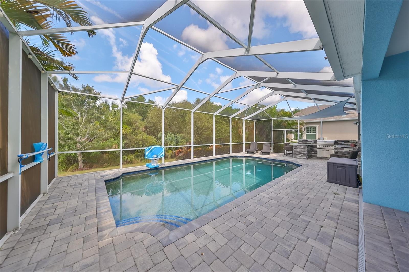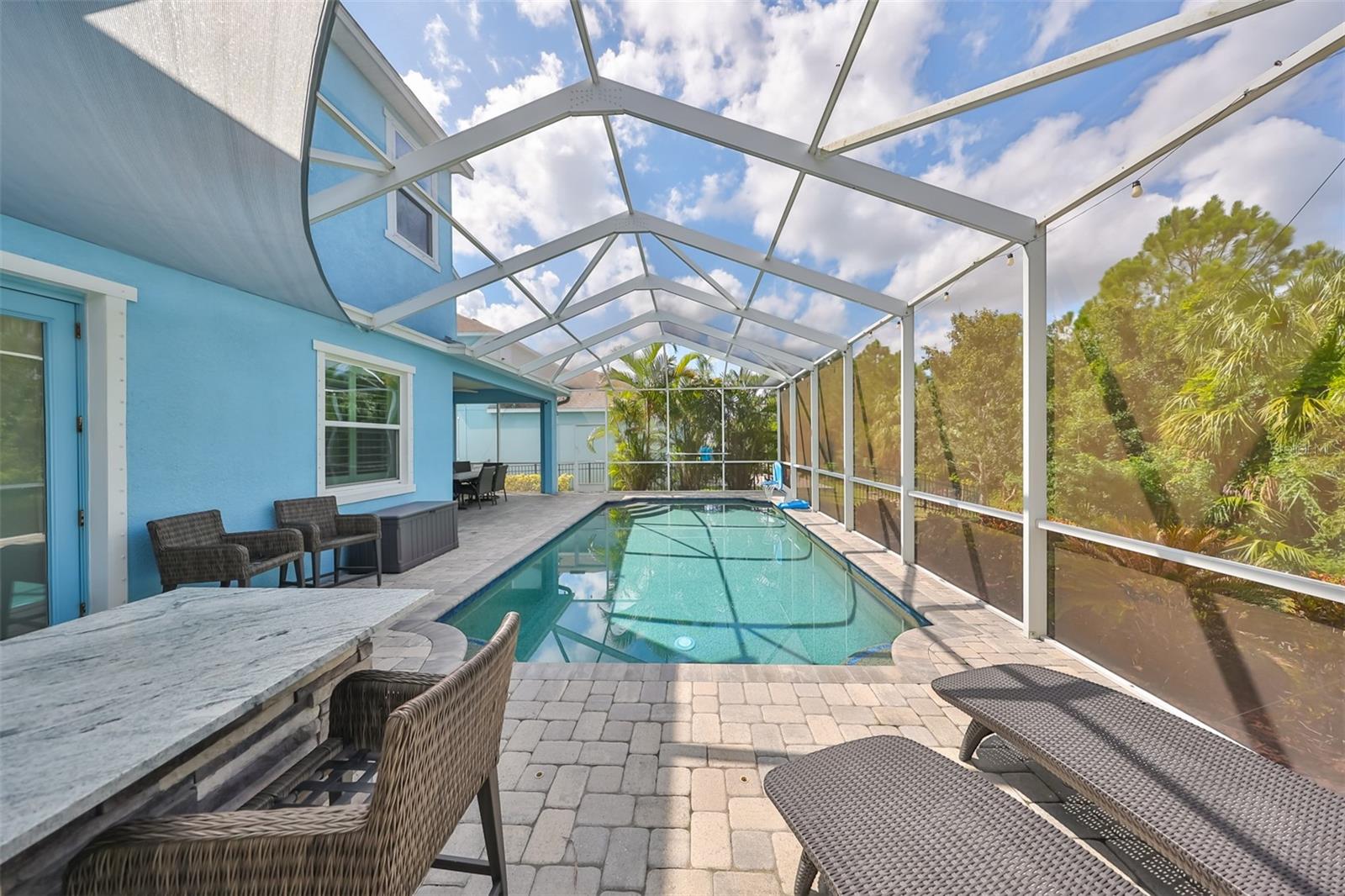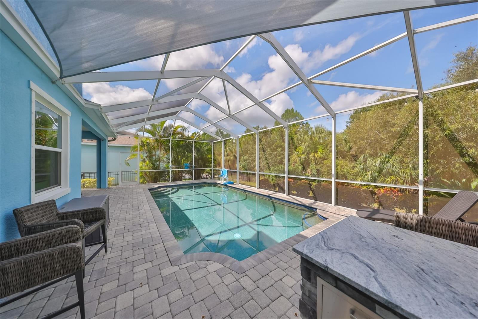 2 furacões e sem problemas com esta casa! A elevação de 11 pés faz a diferença. Alto e seco. Bem-vindo ao seu oásis privado! Descubra o luxo moderno nesta requintada casa de 4 quartos e 3 banheiros e meio, construída em 2017. Situada em um condomínio fechado de prestígio, esta residência oferece conforto, estilo e privacidade. A planta aberta apresenta amplos espaços de estar onde a sala de estar, a área de jantar e a cozinha gourmet fluem perfeitamente juntas. Controles deslizantes grandes levam ao oásis ao ar livre, convidando a luz natural e uma experiência interna e externa perfeita. Uma delícia culinária, a cozinha possui elegantes bancadas de quartzo, armários de madeira maciça e eletrodomésticos de última geração. A grande ilha é perfeita para preparar refeições e jantares casuais. Aproveite a versatilidade de uma espaçosa sala bônus, ideal para uma sala de jogos, centro de mídia ou espaço extra. Além disso, um escritório privado separado oferece uma área tranquila e dedicada para trabalho ou estudo. O enorme quarto principal serve como um retiro luxuoso, com amplo espaço e banheiro privativo bem equipado. O quarto 2 inclui seu próprio banheiro privativo completo, enquanto os quartos 3 e 4 compartilham um conveniente banheiro Jack-and-Jill. Uma elegante lareira decorativa adiciona um toque de elegância à sala de estar! O quintal é um verdadeiro santuário, com uma bela piscina e uma cozinha exterior totalmente equipada. Este espaço é ideal para receber ou simplesmente relaxar enquanto aprecia as vistas serenas da área de conservação que garantem um elevado nível de privacidade e tranquilidade, criando um cenário pitoresco para a vida quotidiana. Em toda a casa, persianas acrescentam um toque clássico. A espaçosa garagem para 3 carros oferece muito espaço para veículos, arrumação, comodidade e organização. Esta casa combina design moderno com comodidades contemporâneas, reflectindo elevados padrões de construção e estilo. Localizada em um condomínio fechado e seguro, esta residência garante maior tranquilidade e exclusividade. Esta propriedade excepcional oferece uma mistura harmoniosa de sofisticação, funcionalidade e privacidade. Agende sua visita hoje para experimentar em primeira mão o estilo de vida luxuoso que esta casa oferece.