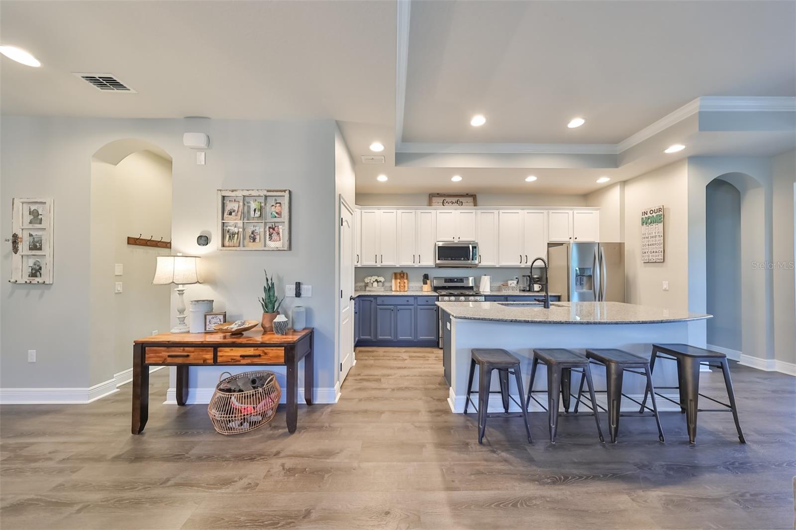 ** Elevação linda em estilo fazenda ** Eficiência energética com energia solar **… Planta baixa de Ashton Woods Gaspar com 3 quartos, 2 banheiros completos, garagem para 2 carros, sala Den-Flex e uma grande sala aberta com uma área de cozinha muito espaçosa e uma grande ilha de bancada em granito. **Esta casa possui *Tesla Battery Back-up/ 7,25 KW Panasonic Solar Panels** A cozinha tem armários altos de 42"e eletrodomésticos S/S. Pisos luxuosos de pranchas de vinil em todos os quartos e áreas comuns... Painéis de parede decorativos no Sala de estar e luminárias de design com muita luz natural, o quintal com paisagismo tropical é totalmente cercado e uma varanda a gás totalmente blindada na parte traseira da casa para conexão direta para sua churrasqueira a gás natural, com bastante espaço. para hóspedes. ***A comunidade Waterset possui 2 grandes Clubhouses, 2 academias, várias piscinas comunitárias, muitos parques, píer de pesca, lagoas, trilhas para caminhada/ciclismo, Splash Pad, parque para cães e muito mais por vir. I-75, Hwy 41 e Hwy 301, tornam este o lugar perfeito para ligar para casa. Por favor, traga compradores qualificados e todas as ofertas razoáveis mostradas incluem taxa de CDD.