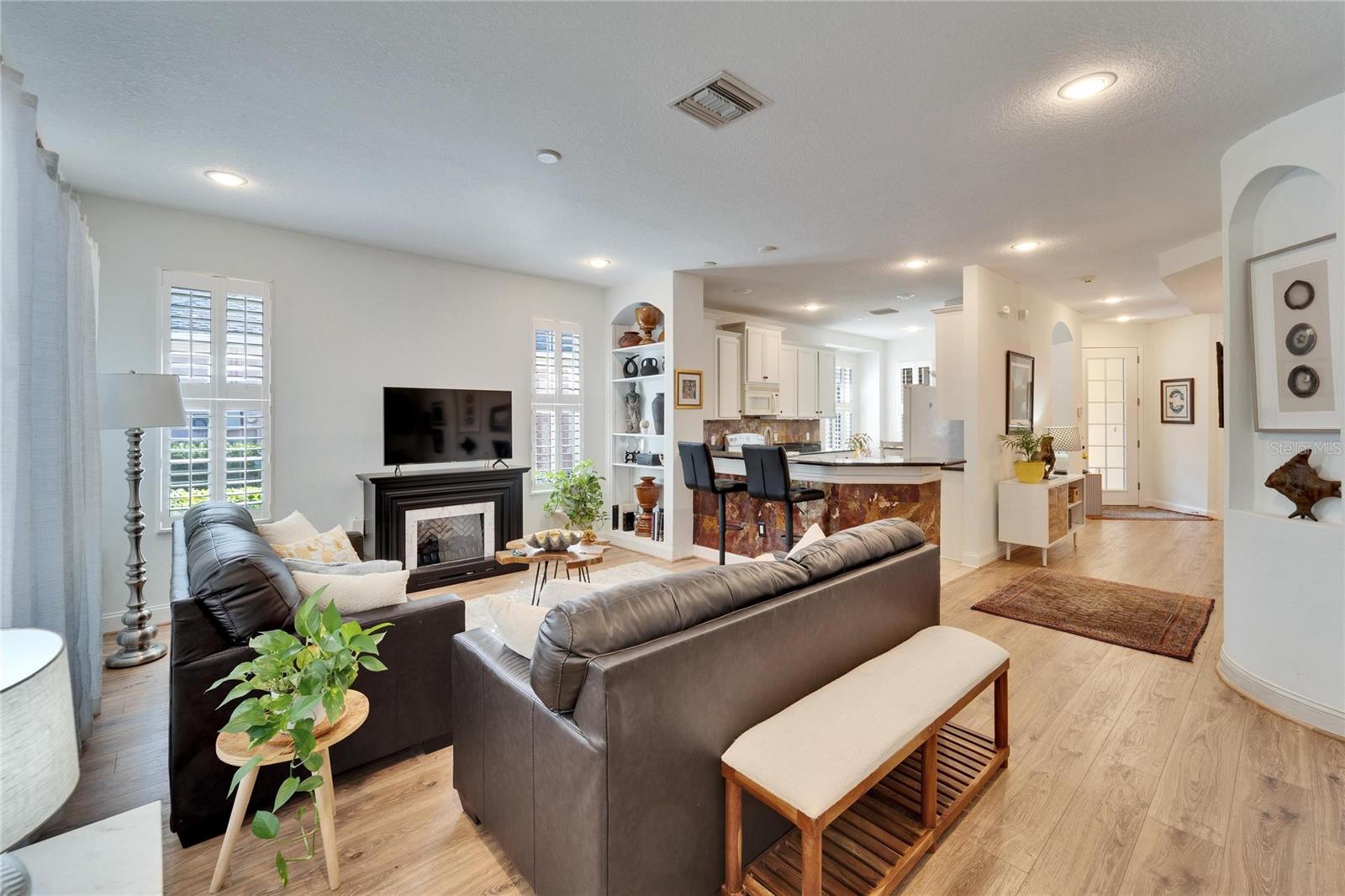 Bem -vindo para casa nesta casa de Mirabay Villa com dois quartos (planta baixa dividida), além de um escritório/estudo/den/quarto, dois banheiros e garagem para dois carros com lanai de tela grande e varanda na frente. O terceiro quarto está sendo usado atualmente como um escritório. Features include engineered hardwood floors, plantation shutters, tray ceilings in the Owner’s Suite and Dining Room, garden tub in the main bathroom with split vanity and a large walk-in closet plus a shower, NEW roof 2022, NEW range 2024, NEW washer (2024), NEW microwave (3/2025), NEW frameless shower (Bath 2), freshly painted (white) kitchen cabinets, plantation shutters throughout, engineered hardwood except kitchen e banheiros e muito mais !! Nova triagem Lanai (1/2025). Móveis opcionais. Mudar-se pronto para que você possa começar a desfrutar do estilo de resort que vive em Mirabay.