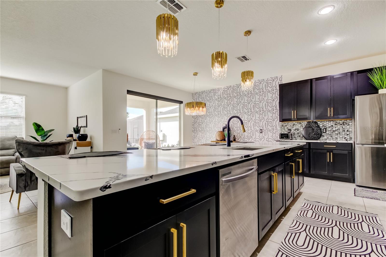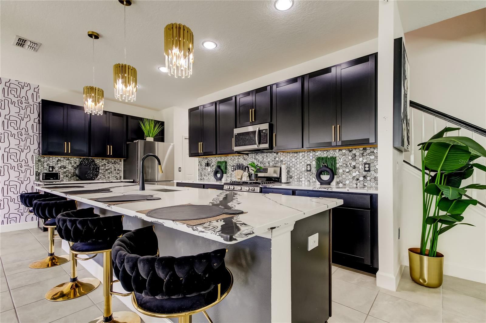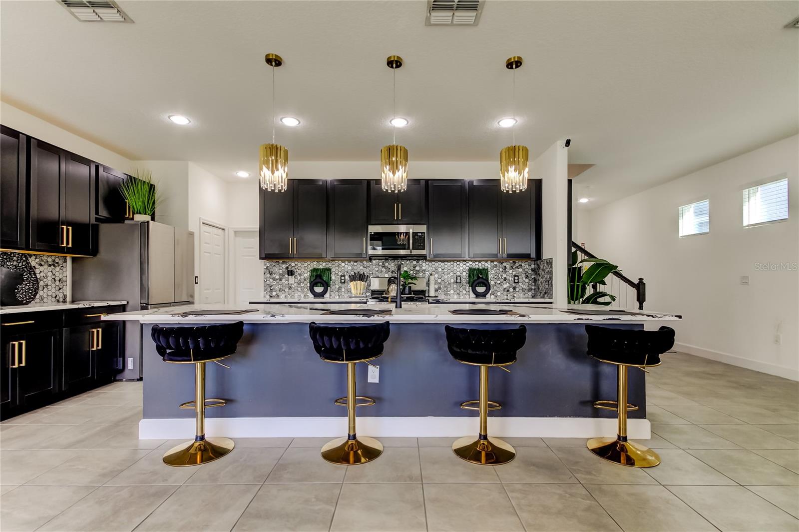 Bem-vindo a esta bela casa modelo Park Square “Tribeca” construída em 2022 que foi atualizada com bom gosto e toques elegantes para você aproveitar. Ao dirigir até esta adorável casa em estilo artesanal, você ficará impressionado com a incrível atratividade da casa, com calçada pavimentada, entrada coberta, belo paisagismo e um gramado bem cuidado. Entrando na casa pela porta de vidro personalizada de 2,5 metros, você notará imediatamente como esta casa é meticulosamente mantida, parecendo uma casa modelo. Com 2.144 pés quadrados de área útil, você notará que o piso principal tem azulejos de cerâmica que facilitam a limpeza e têm uma aparência elegante. A cozinha Gourmet possui eletrodomésticos de aço inoxidável, incluindo fogão a gás, impressionantes bancadas de quartzo “Panda” atualizadas, uma ENORME ilha de 12'x6', backsplash de vidro complementar, armários de madeira expresso de 42 ”com ferragens douradas e uma torneira preta fosca. Você também notará as lindas luzes pendentes do lustre que combinam com a luminária da sala de jantar. O espaçoso quarto familiar tem vista para o espaço ao ar livre, onde há uma varanda coberta com um ENORME quintal sem vizinhos no quintal. Este espaço ao ar livre é ótimo para entretenimento. Há também um lavabo no primeiro andar para os hóspedes. No segundo nível da casa, há um loft que pode ser usado como escritório, cinema, área de dever de casa, etc.…as possibilidades são ilimitadas. A suíte principal está localizada na parte traseira da casa e tem vista para o quintal. A suíte principal vem com iluminação embutida, teto em trevo e janelas laterais duplas para muita luz natural. O banheiro principal tem balcões de quartzo, pia dupla, box amplo e além de banheira de hidromassagem. Existem três quartos adicionais, além de um banheiro completo e lavanderia no segundo andar da casa. A comunidade Waterset oferece uma abundância de comodidades de alto nível, como piscinas em estilo resort, cafés, clubes, instalações para exercícios, quadras e campos esportivos, parque para cães e trilhas para caminhada, atividades comunitárias e familiares, só para citar alguns! Esta linda casa está pronta para novos proprietários. Ligue hoje para seu tour privado!