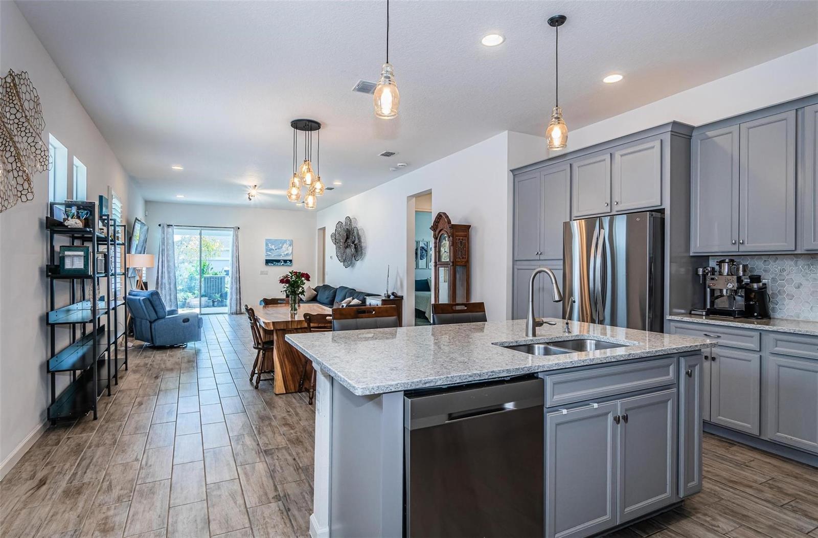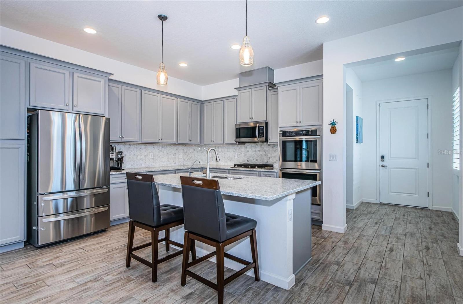 811 Winterside Drive, Apollo Beach, FL 33572. Esta casa de 3 quartos de 3 quartos e 2 banheiros oferece 1800 pés quadrados de uma planta conceitual aberta no belo bairro de Mirabay! A poucos passos da porta da frente e com vista para a varanda da frente, fica a reserva natural de Wolf Branch Creek, que se estende com trilhas para caminhada até Tampa Bay. Tome seu café da manhã na varanda e aprecie toda a bela vida selvagem e natureza silenciosa. Esta casa possui uma garagem de 2 carros, aquecedor de água sem tanque, dentro da lavanderia, um lanai perto da sala de estar deslizando portas de vidro. Existem pisos de azulejos em toda a casa. A cozinha possui lindos armários cinza, bancada em granito, backsplash decorativo, fornos duplos, uma grande ilha e gama de gás. O espaçoso quarto primário tem uma grande suíte com pias duplas, bancadas em granito e um design moderno de azulejos no chuveiro. Há uma extensa caminhada no armário também. A comunidade Mirabay é construída em alturas elevadas e todas as casas permaneceram altas e secas. As comodidades da comunidade Mirabay incluem uma piscina de entrada na praia com escorregador aquático, tênis, basquete e pickleball. Mirabay é uma comunidade amigável para carrinhos de golfe, com muitos eventos organizados, clubes sociais e oportunidades. Os amantes da água apreciarão os caiaques e os pedreiros disponíveis para os moradores. Com o paisagismo, a irrigação e a água incluídas no HOA econômico, você pode se concentrar em apreciar o estilo de vida da Flórida.