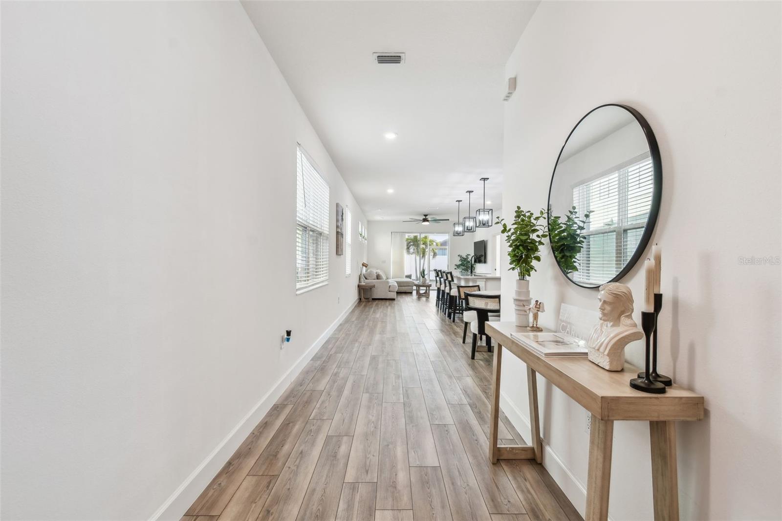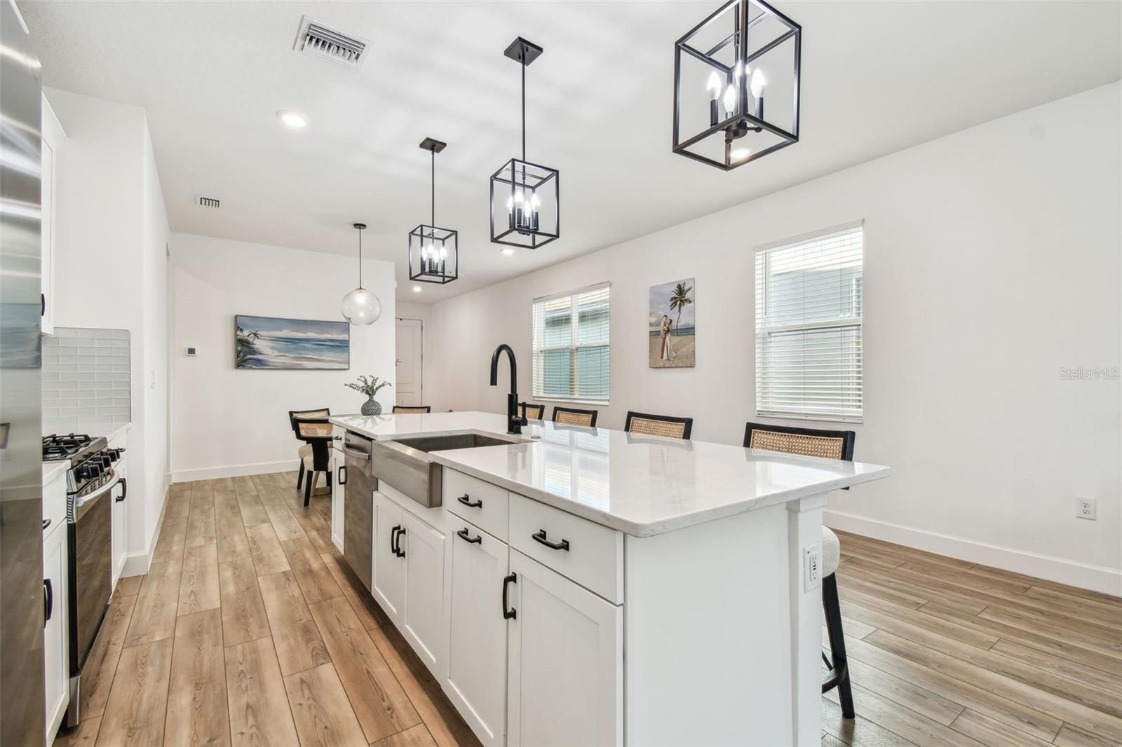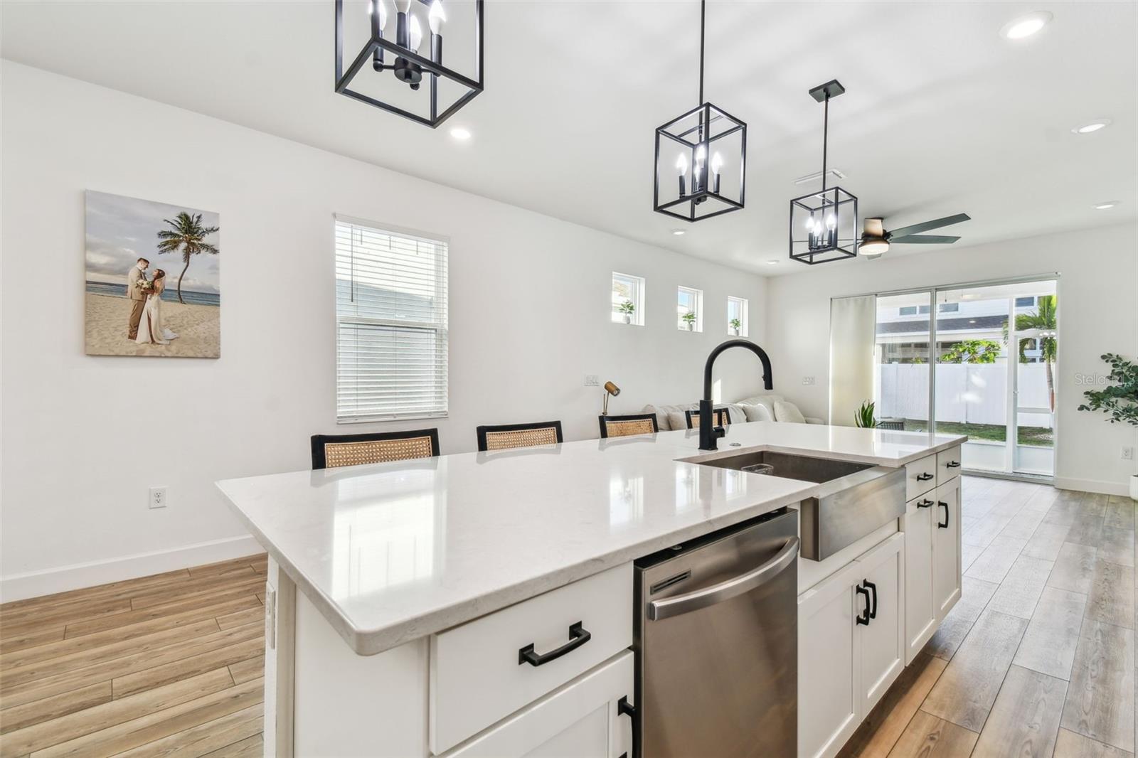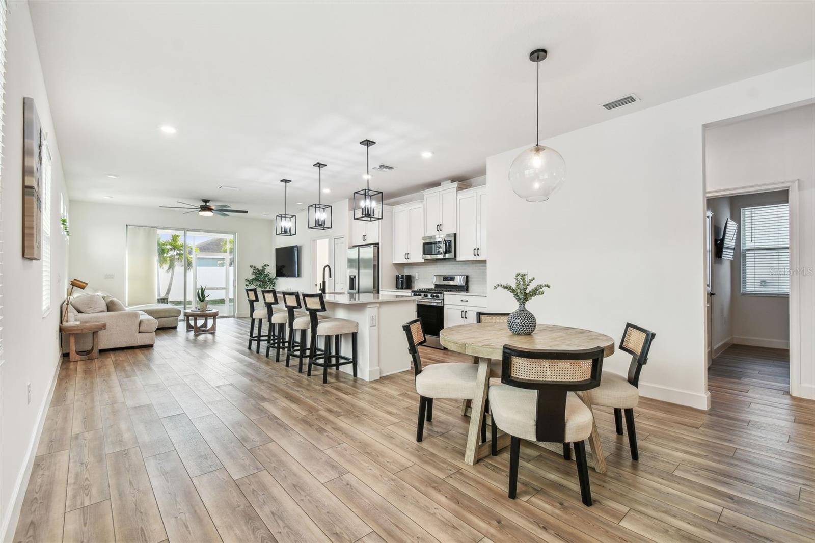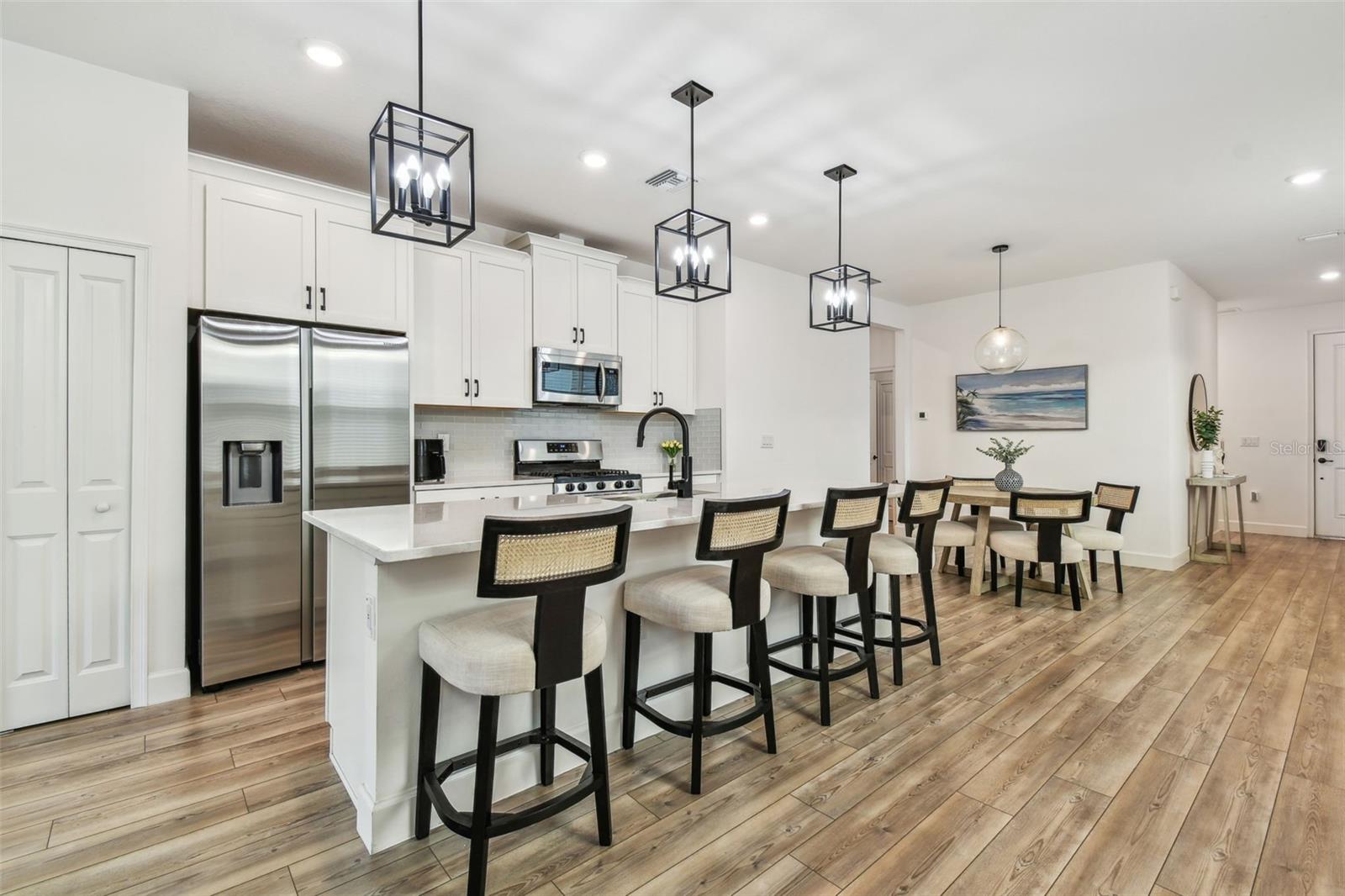 Bem-vindo ao 310 Blackrock Ln – Uma deslumbrante casa de nível único localizada na SEÇÃO FECHADA da procurada comunidade de MIRABAY! CONSTRUÍDA EM 2021, esta casa lindamente atualizada está repleta de recursos de alta qualidade e detalhes atenciosos. Uma entrada pavimentada e uma passarela levam você à convidativa área de estar coberta na frente, cercada por uma exuberante paisagem tropical. No interior encontrará 3 quartos espaçosos e 2 casas de banho completas com acabamentos elegantes. O design de conceito aberto apresenta luxuoso piso de pranchas de vinil, luminárias elegantes e uma sensação luminosa e arejada. As janelas de vidro duplo em toda a casa proporcionam eficiência energética, enquanto as grandes janelas e portas de vidro deslizantes inundam o espaço com luz natural, criando um ambiente acolhedor e convidativo. A cozinha gourmet é realmente um destaque, com armários shaker brancos, bancadas de quartzo, pia de fazenda de aço inoxidável, fogão a gás, eletrodomésticos de aço inoxidável e uma grande ilha central com três luzes pendentes acima. A lavanderia oferece armários extras para arrumação, e a lavadora e secadora estão incluídas na venda! O retiro do proprietário privado é um refúgio tranquilo, escondido na parte traseira da casa, com vistas serenas do quintal. O teto de madeira adiciona um toque de elegância, enquanto o banheiro privativo em estilo spa possui box de vidro sem moldura, chuveiro de mármore, pia dupla com bancada de quartzo e muito espaço de armazenamento. O grande closet oferece amplo espaço para manter tudo organizado. Os dois quartos adicionais estão cuidadosamente posicionados com banheiro compartilhado para maior privacidade. A garagem possui piso epóxi durável, agregando estilo e funcionalidade ao espaço. Saia para o quintal totalmente cercado e desfrute da varanda coberta e protegida, perfeita para relaxar ou se divertir enquanto aproveita o sol da Flórida. Além disso, esta casa não sofreu danos de furacão, proporcionando maior tranquilidade! Com baixas taxas mensais de HOA de US$ 14, este condomínio oferece um estilo de vida incomparável à beira-mar com comodidades de classe mundial, incluindo clubhouse, café, academia de última geração, piscina estilo resort, diversas quadras esportivas (tênis, pickleball, basquete), playgrounds e até caiaque! Mirabay também oferece paddleboards e todos os esportes são gratuitos. A vibrante área de Apollo Beach coloca você perto de lojas, praias imaculadas e grandes atrações como Tampa, Sarasota, St. Pete e Disney. Esta casa pronta para morar não tem carpete e está esperando por você - agende sua exibição privada hoje mesmo!