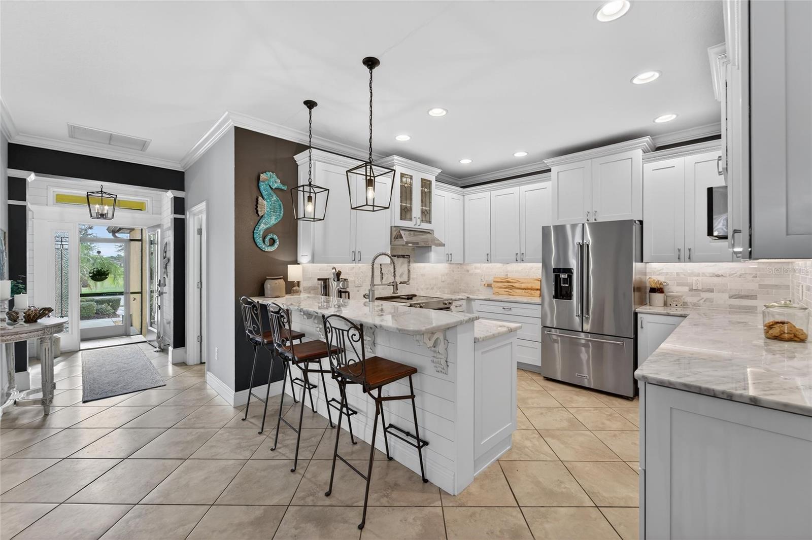 SUA PESQUISA ACABOU!!! Não espere para ver esta MORADIA COM INTERIOR PERSONALIZADO PRONTA PARA MOVIMENTO…. Casa ABSOLUTAMENTE DESLUMBRANTE com vista para o mar. Localizado na bela e altamente desejável comunidade fechada de 55+ Southshore Falls Del Webb. Moradia com 2 quartos/com flexroom/escritório/arrumos, 2 casas de banho e garagem para 2 carros. A partir do momento em que chegar a esta casa imaculadamente mantida, você sentirá o orgulho de ser proprietário. Esta casa possui vários RECURSOS INTERIORES PERSONALIZADOS. Esta bela casa com vista para o mar está perfeitamente situada em um terreno bem cuidado (paisagismo mantido pela HOA). Ao entrar nesta linda casa através de uma bela porta de vidro, você ficará impressionado com os espaçosos recursos de design personalizado, planta baixa, sancas com iluminação suspensa / ventiladores de teto de bom gosto. Grande cozinha gourmet dos sonhos do chef com lindo backsplash de azulejos, bancada de quartzo, com muito espaço de trabalho, lindos armários misturadores com gavetas removíveis, iluminação embutida e balcão para café da manhã. Espaçosa sala de jantar e estar proporcionando o espaço aberto perfeito para relaxar e se divertir. A grande suíte master inclui um grande closet adjacente ao banheiro com pias duplas e um amplo box de vidro. A lavanderia possui armários planejados e pia. Ao sair para sua ENORME varanda privada de azulejos, desfrute da paz e tranquilidade. Sem vizinhos de quintal. Talvez desfrute de uma xícara de café ou de uma bebida para adultos com um bom livro ou observe as vistas em constante mudança da natureza ou talvez grelhe o jantar na SUA COZINHA EQUIPADA EM LANAI PERSONALIZADA. Tantas atualizações e extras, incluindo paredes com revestimento de navio, amaciante de água, aquecedor de água substituído (2025), HVAC completo (2022), banheiro atualizado (2023), persianas de plantação, bancadas de quartzo, armários lindamente acabados, sancas, piso de garagem em epóxi, escadas de acesso ao sótão, porta de garagem isolada, persianas furacão, calhas e MUITO MAIS!!. Desfrute de um estilo de vida adulto ativo com comodidades estilo resort: o clube de 14.000 pés quadrados oferece bilhar, café/cibercafé, academia de ginástica de última geração, biblioteca/sala de jogos, sala de hobby/artesanato e grande salão de baile para festas e eventos! Uma piscina lagoa cintilante e spa, piscina de resistência. Bocha, quadras de picles, quadras de tênis e pista de putting green. Estradas privadas com natureza e trilhas para caminhada, calçadas e ciclismo. Além disso, a comunidade oferece inúmeras atividades e clubes sociais/de interesse especial. Este condomínio fechado e vigiado 24 horas por dia tem tudo o que você precisa, então sempre há algo para fazer! Realmente um lugar maravilhoso para receber a família e amigos! Localizado perto de lojas, restaurantes à beira-mar e a uma curta distância de carro das belas praias da Flórida! Sem CDD. Marque uma consulta para ver esta deslumbrante casa interior personalizada. FÁCIL DE VISUALIZAR. Você não ficará desapontado. Bem-vindo ao seu próprio pedaço do Paraíso!