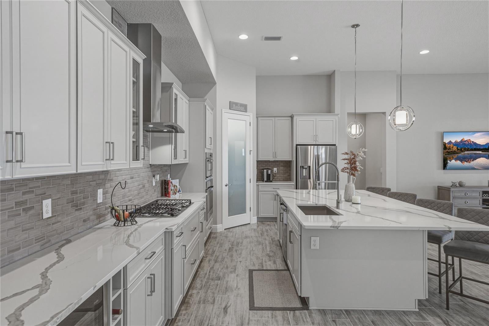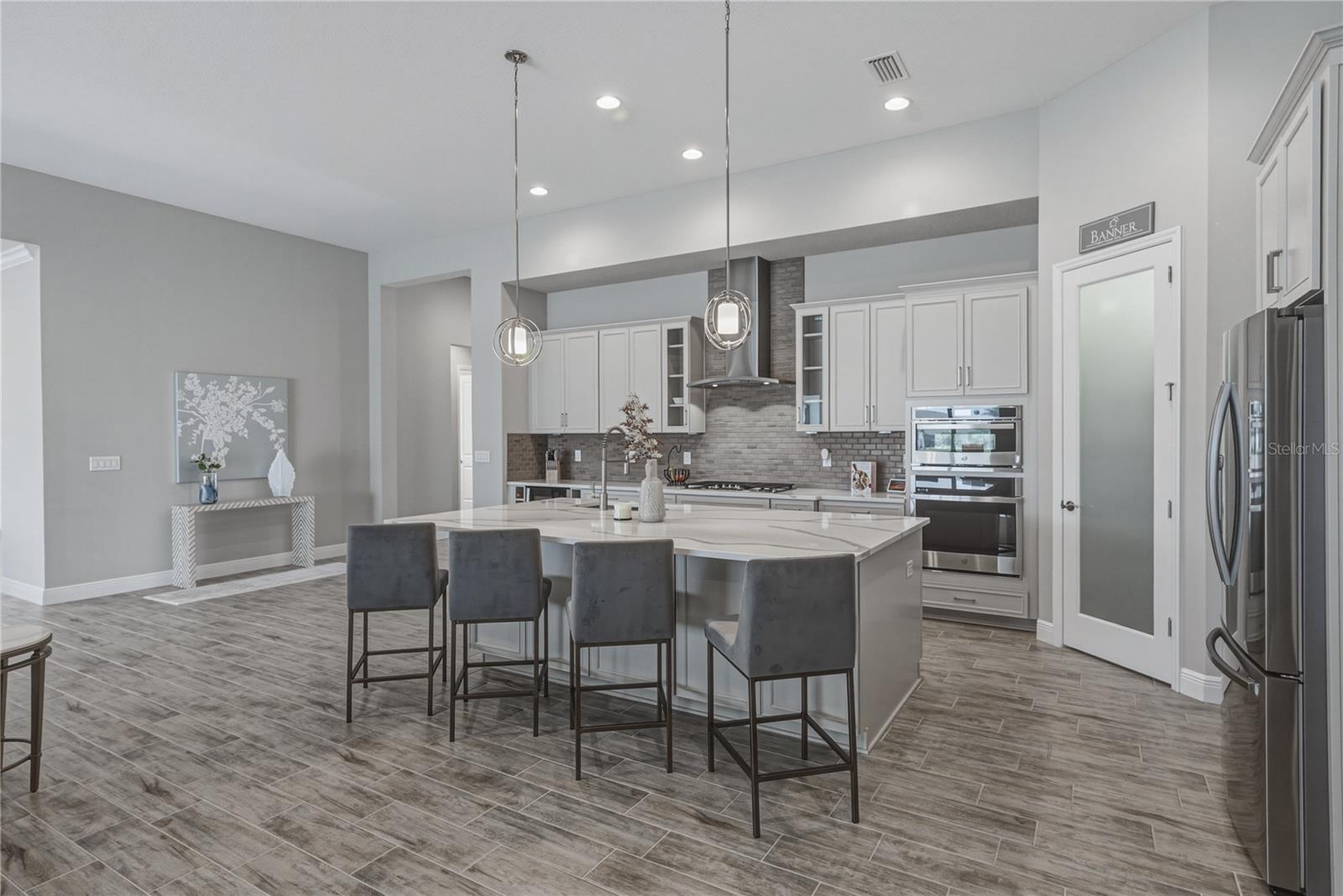 Experimente o melhor da Flórida vivendo neste modelo excepcional de Key West I da WestBay Builders na comunidade de Waterset. A partir do momento em que você entra, seus olhos são atraídos diretamente para o oásis ao ar livre, com uma piscina de água salgada aquecida e cintilante e vistas tranquilas do lago que criam um cenário sereno para a vida cotidiana. A varanda coberta já está preparada para uma cozinha externa, oferecendo a oportunidade perfeita para projetar seu espaço de entretenimento ideal. No interior, os tetos altos e o piso de madeira em todas as áreas de estar principais melhoram a sensação aberta e luminosa da casa, ao mesmo tempo que mantêm as coisas frescas durante todo o ano. A cozinha gourmet serve como o coração da casa, apresentando uma ilha enorme com assentos, armários atualizados com gavetas removíveis, um cooktop extragrande com exaustor e até mesmo uma geladeira de bebidas embutida - perfeita para hospedagem. A suíte principal oferece um retiro tranquilo com uma luxuosa banheira de imersão, box amplo e um espaçoso closet para ele e para ela. Há também um escritório dedicado com portas francesas e uma grande sala bônus que oferece flexibilidade e pode facilmente servir como sala de família ou potencial quarto quarto. Combinando acabamentos de luxo, design inteligente e vistas pitorescas para o mar, esta casa oferece conforto e estilo em cada detalhe.