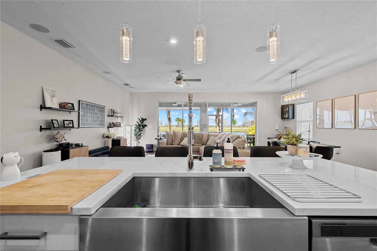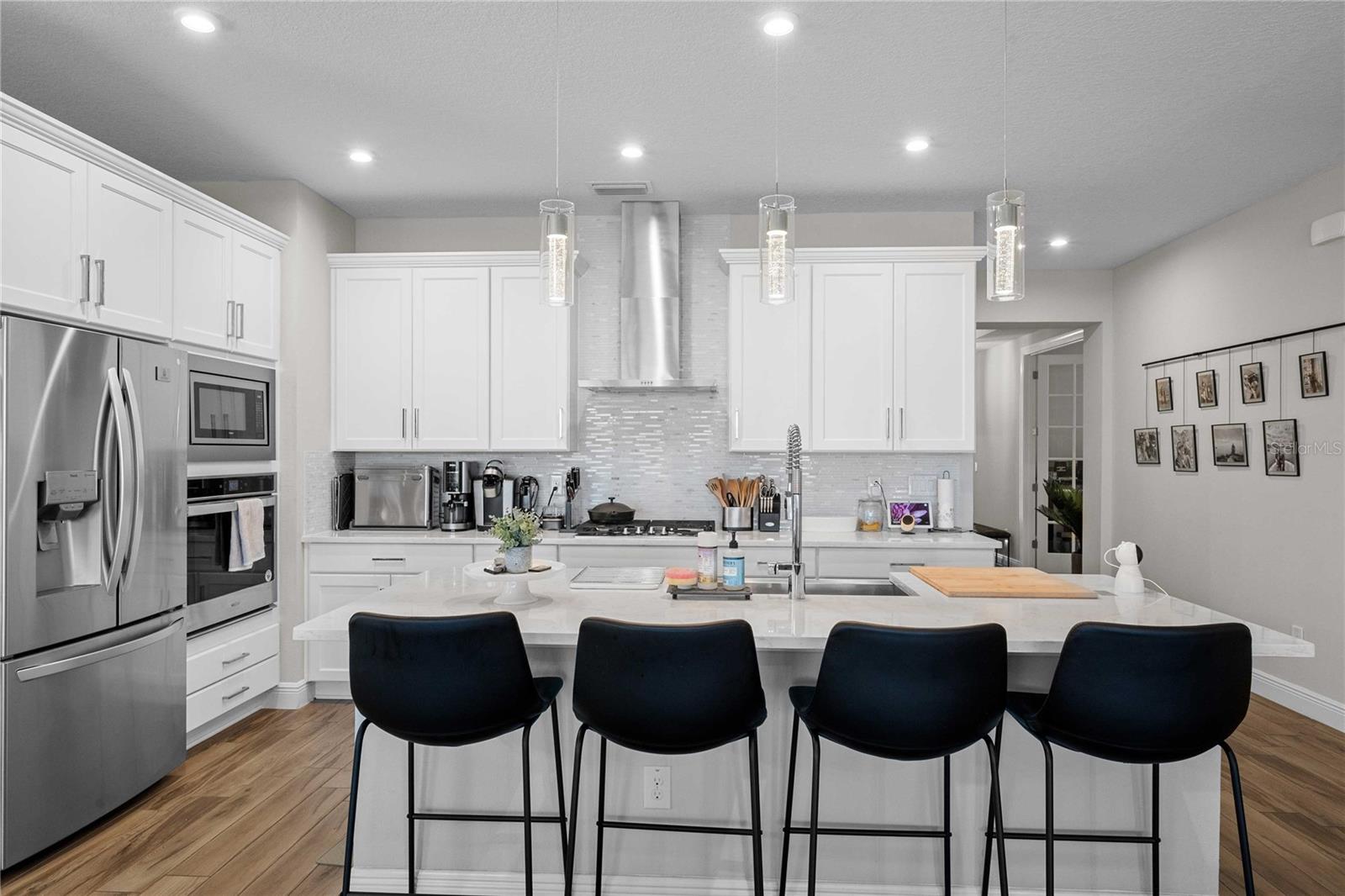 Descubra a vida em estilo resort na muito procurada comunidade de Waterset. Esta casa lindamente aprimorada em estilo Cardel Craftsman está perfeitamente posicionada em um lote premium à beira-mar, oferecendo vistas serenas e uma sensação de espaço convidativa a partir do momento em que você passa pela porta. A entrada se abre para uma sala familiar iluminada e de conceito aberto, onde portas de vidro deslizantes estendidas oferecem amplas vistas para o mar e inundam a área de estar com luz natural. A cozinha gourmet possui armários brancos, eletrodomésticos de aço inoxidável, bancadas de quartzo, fogão a gás e uma generosa ilha central que serve tanto como espaço de preparação quanto como balcão para café da manhã. Em todas as áreas de estar principais, você encontrará piso de cerâmica com aparência de madeira, portas de 2,5 metros e um layout espaçoso, ideal para a vida cotidiana e entretenimento. A varanda coberta estendida e a sala de estar são pré-instaladas para som surround e equipadas com sete alto-falantes embutidos no teto Klipsch e Sonos premium, criando uma experiência de entretenimento envolvente. Todos os três quartos oferecem carpete macio e amplo espaço no armário, enquanto um versátil escritório/sala flexível com portas francesas oferece o ambiente perfeito para trabalho, mídia ou atividades criativas. A suíte principal repleta de sol inclui um closet e um banheiro lindamente projetado com pias duplas. Uma lavadora e secadora estão incluídas para maior comodidade. A rara garagem para dois carros de 27' x 19' oferece espaço excepcional para veículos, armazenamento ou equipamentos recreativos. As atualizações adicionais incluem um amaciante de água e um aquecedor de água sem tanque. Localizada na vibrante comunidade de Waterset, inspirada em resorts, esta casa oferece acesso rápido à Selmon Expressway e à I-75/275, colocando você a apenas 34 km do centro de Tampa e a poucos minutos de diversas opções de compras e restaurantes. Os moradores desfrutam de uma impressionante linha de comodidades, incluindo academia, quadra de basquete, três piscinas, duas quadras de tênis, duas quadras de pickleball, vôlei de areia, playground, parque para cães, 19 quilômetros de trilhas para caminhada e ciclismo e um clube acolhedor.