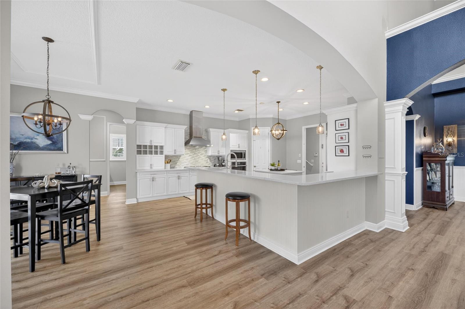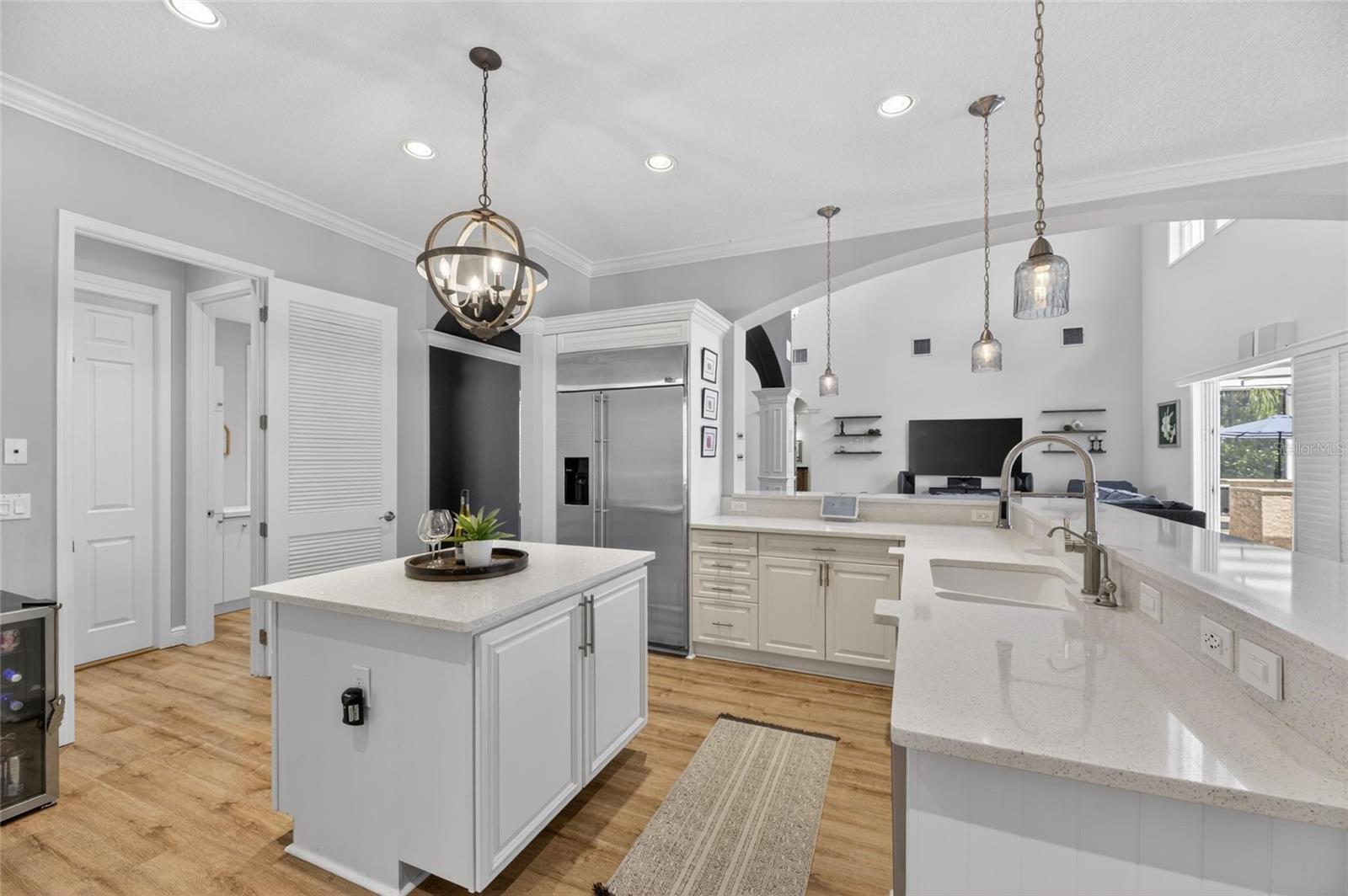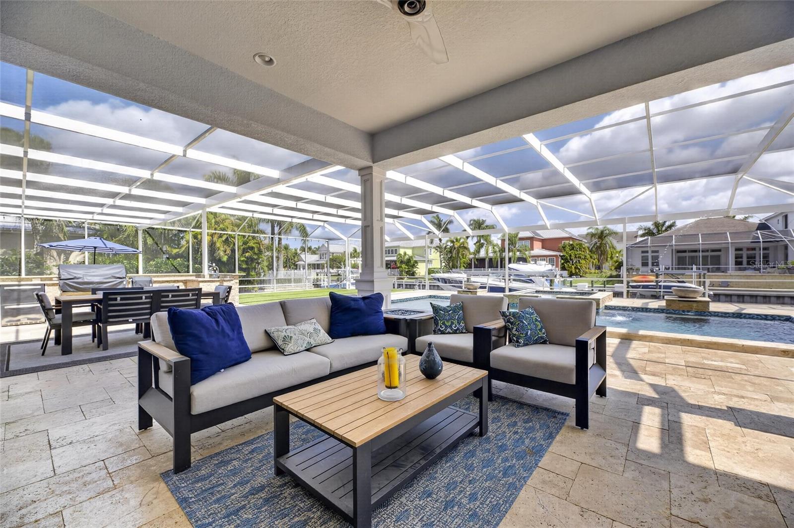 613 Balibay Dr, Apollo Beach, FL 33572 | 5 Quartos | 4 Banheiros | 3.977 pés quadrados | Garagem para 3 carros mais | Piscina e Spa | Frente do Canal | Doca com elevador duplo A maioria dos compradores nunca consegue entrar em Bay Estates. É um enclave fechado dentro de MiraBay, escondido atrás do portão principal, onde os lotes ultrapassam 30 metros e cada casa é uma construção personalizada única por um construtor premiado. Esta é uma daquelas casas. Um John Cannon Cape Cod em um canal de água salgada com acesso direto à Baía de Tampa - quase 4.000 pés quadrados em 2 níveis, e isso aparece a partir do momento em que você entra na calçada de pavimentação. A grande sala para você. Tetos altos, detalhes dramáticos do teto da bandeja, trilhos de cadeira personalizados e sancas, venezianas e portas de vidro deslizantes que emolduram o canal como uma pintura. Aparência luxuosa de madeira, tábuas longas, piso de vinil percorrem o nível principal e as portas se abrem da grande sala, suíte principal e cozinha diretamente para a varanda, de modo que o interior e o exterior nunca ficam realmente separados. A cozinha foi construída para receber. Ilhas duplas com bancada de quartzo, geladeira estilo SubZero, fornos duplos, eletrodomésticos de inox, armários de madeira com sancas, garrafeira embutida e pia de cerâmica. Purificador de água para toda a casa Culligan e sistema de consumo de osmose reversa instalados. Rede RJ-45 para toda a casa e som surround JBL na parede por toda parte. Três quartos, sala de estar, jantar e um espaço flexível estão no primeiro andar, incluindo a suíte principal com tetos de bandeja, piso de madeira, portas francesas para a varanda, dois closets personalizados, pias duplas, banheira de hidromassagem e box amplo com vários chuveiros e banco embutido. No andar de cima, a sala / loft bônus tem bar molhado, frigobar, tábua de contas e varanda com vista direta para a piscina e o canal. Dois quartos flanqueiam-no, ambos com vista frontal e traseira do acesso à varanda. Uma escada em espiral leva você a um loft no terceiro nível – um oásis privado acima de tudo. Depois, há o quintal. Pavimentos de travertino cercam uma piscina aquecida e um spa para 10 pessoas construído em 2019, completo com fontes, iluminação LED Jandy e bancos de bar subaquáticos. A cozinha externa oferece tudo que você precisa para entretenimento: churrasqueira a gás natural Blaze, máquina de fazer gelo, geladeira, gavetas de armazenamento, iluminação LED, alto-falantes externos JBL. No cais, um elevador de barco de 25.000 libras lida com qualquer coisa que você queira colocar nele. Combinado com um elevador duplo de jet ski - uma configuração antiga que não é mais permitida pelas regulamentações atuais - esta doca não pode ser replicada em nenhum lugar do mercado hoje. Seawall substituído em 2021. Esta casa foi mantida e atualizada para um padrão que a maioria das casas personalizadas nunca alcança. O gerador Generac de 24kW para toda a casa cobre a casa e todos os sistemas de elevador. Ambas as bombas de velocidade variável Jandy e todas as dez luzes da piscina foram substituídas. Novo AC (2021), aquecedor de água quente (2021), ventiladores Haiku por toda parte, repintura completa (2022). Contratos de serviços ativos em HVAC, água, piscina e gerador. A garagem superdimensionada acomoda três carros mais um carrinho de golfe ou quarto veículo e tem acabamento com piso de epóxi, novos abridores e prateleiras SafeRacks. MiraBay Bay Estates é o tipo de endereço que leva anos para ser encontrado e raramente está disponível. Aproveite acesso total às comodidades Mirabay, incluindo duas piscinas aquecidas, academia 24 horas, tênis, pickleball, basquete, lançamento de caiaque e acesso de carrinho de golfe ao MiraBay Village. O CDD cobre paredões comunitários. US-41, I-75, Tampa, MacDill AFB e o Golfo são de fácil acesso. Agende sua exibição antes que alguém o faça.