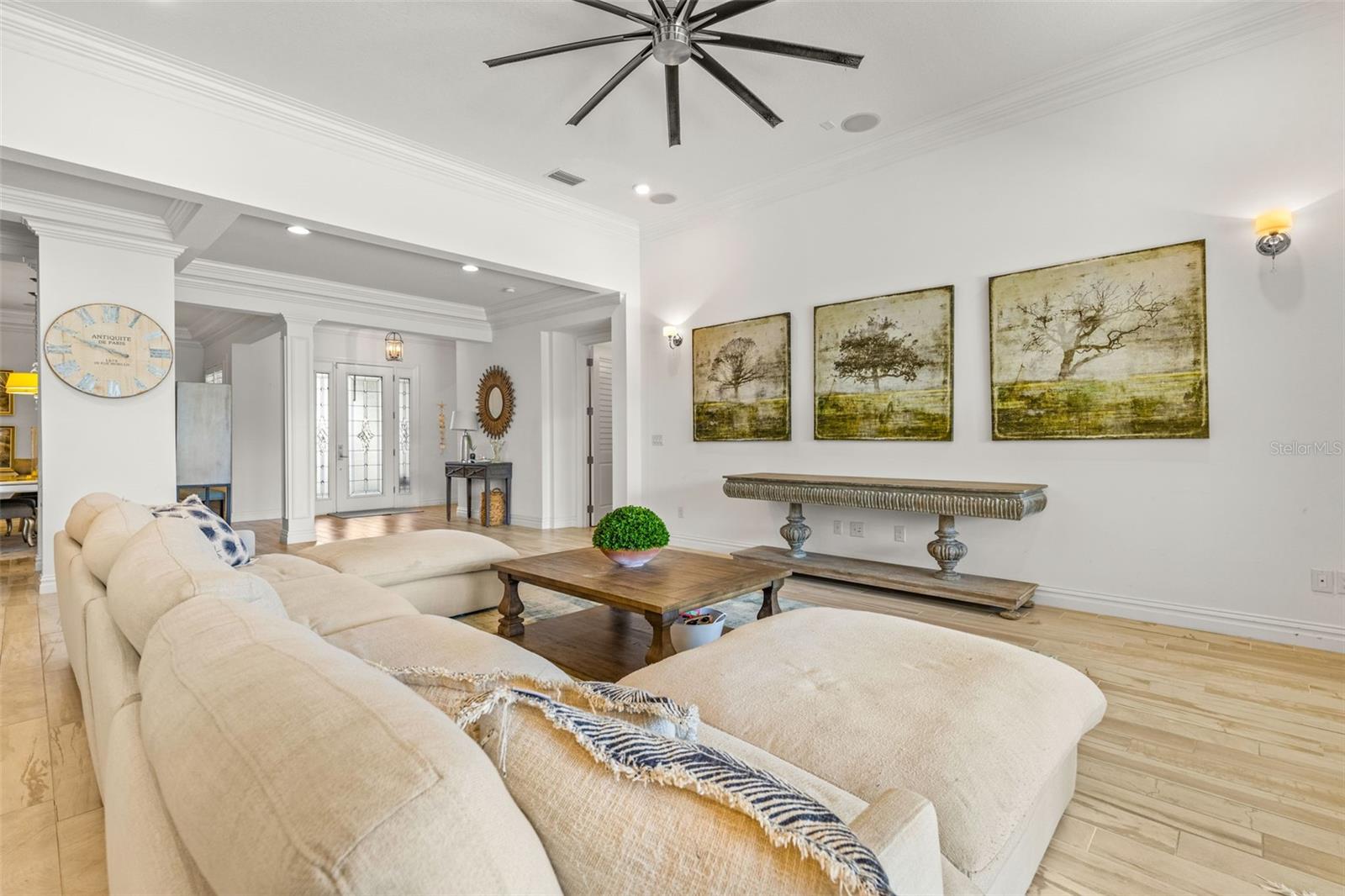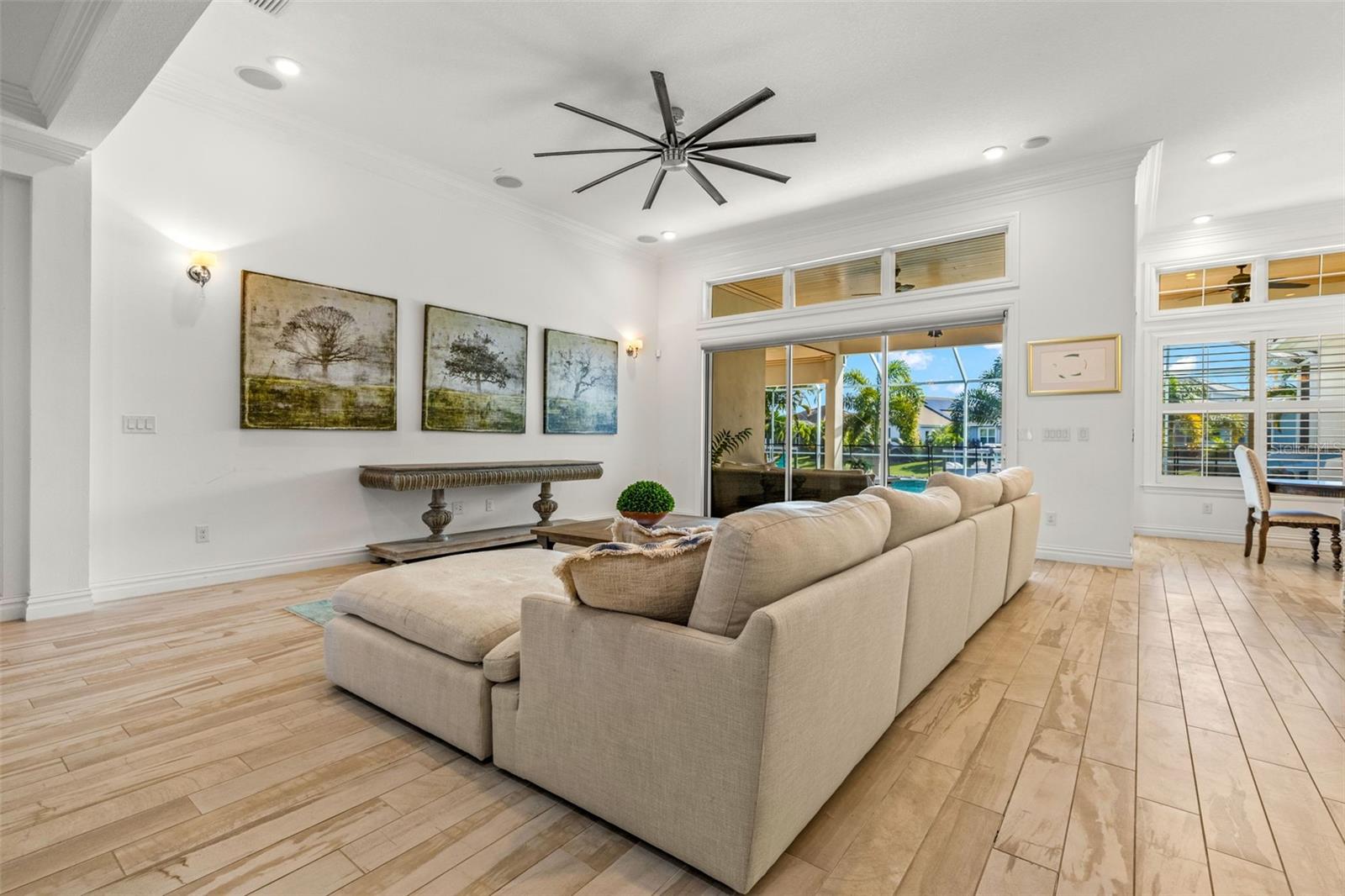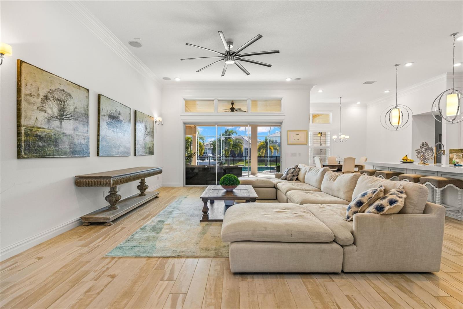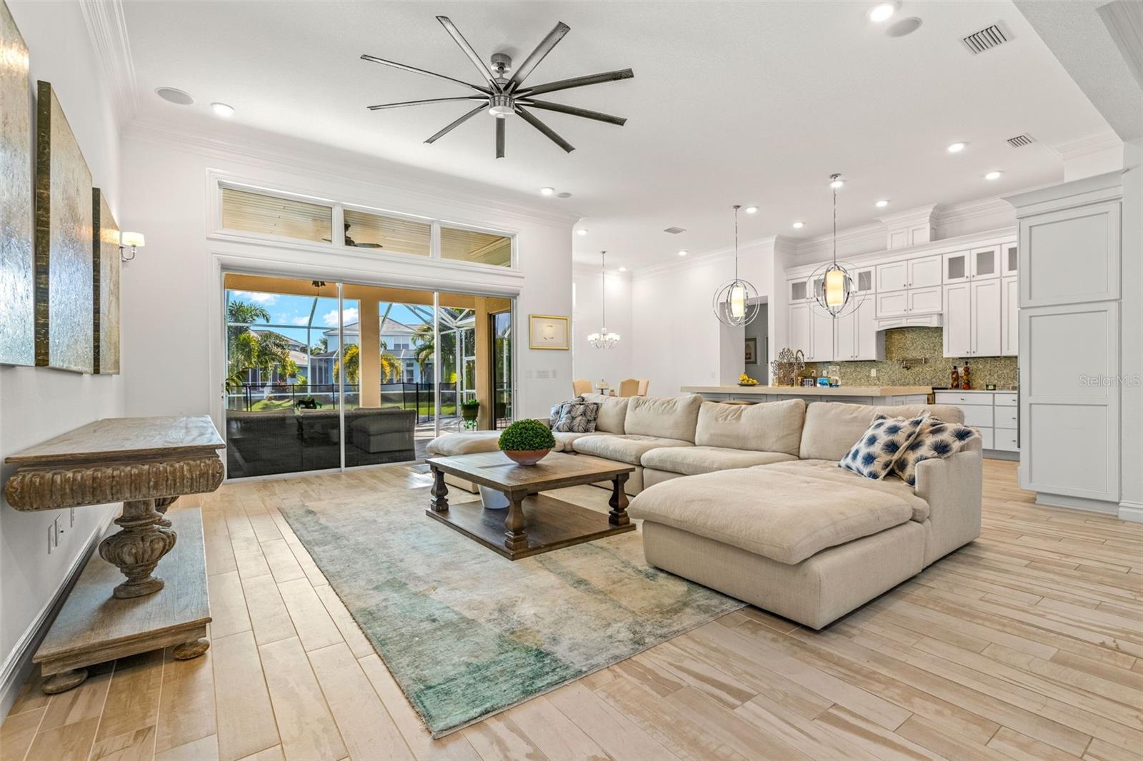 Experimente a verdadeira Florida que vive nesta casa costeira de Key West Style Waterfront, com uma vida interior requintada complementada por um oásis ao ar livre de quase 1.300 pés quadrados! A casa possui vistas de água de tirar o fôlego, com mais de 63 pés de orla, cercada por paisagismo exuberante e uma piscina de água salgada aquecida e exibida. A entrada da frente recebe você em um piso plano aberto, com grandes tetos e vistas imediatas da água. A cozinha do chef, centralizada em torno de uma ilha de quartzo de 3,5 cm, é adornada com uma pia da fazenda, preenchimento de panela embutido e eletrodomésticos de lobo de gás natural e eletrodomésticos. A sala de jantar formal é complementada por um bar molhado na cozinha. Cada centímetro da propriedade apresenta atualizações de luxo e atenção meticulosa aos detalhes, incluindo tetos de bandeja, lambris, moldagem por coroa, persianas de plantações personalizadas, som surround embutido. A suíte primária privada de primeiro nível possui uma área de estar aconchegante com vista para a água, armários duplos e um café. O privilégio possui uma banheira de imersão luxuosa, armário de água separado e um grande chuveiro equipado com um chuveiro de chuva, chuveiro de mão e 4 pulverizadores corporais. No andar de cima, você encontrará uma sala multiuso versátil para bilhar, jogos, teatro ou espaço de escritório adicional, juntamente com um quarto e banheiro completo. A expansiva cozinha de verão coberta permite diversão em todas as estações com fãs de teto, uma grelha a gás embutida, geladeira, pia e balcões de granito. As áreas de estar ao ar livre foram finalizadas com telhas e pavimentadoras de travertino, e os tetos, com um embutido de madeira de cipreste. A garagem anexa de três carros oferece amplo espaço para veículos e carrinhos de golfe!