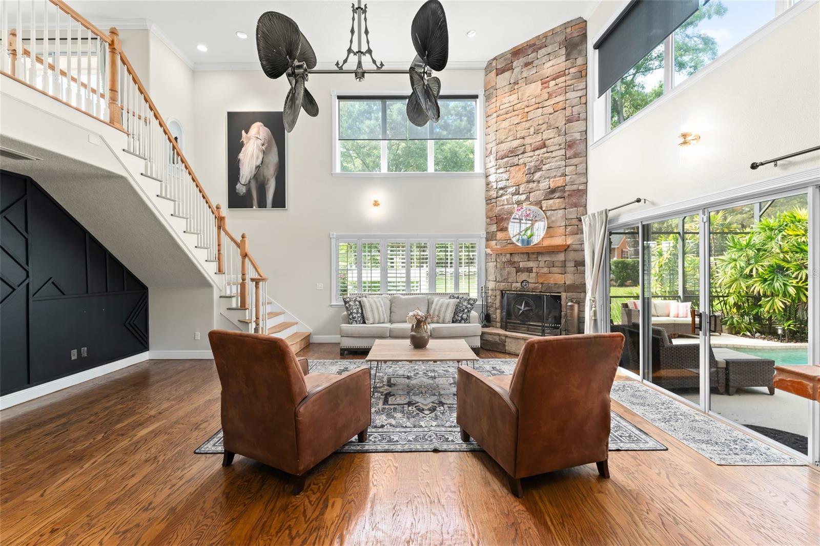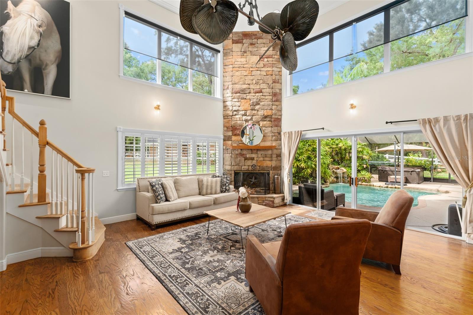 A impressionante casa de piscina personalizada de três andares, na comunidade equestre fechada, o bluegrass Estates. Este lar de 5 quartos, 3 banheiros e 3 carros é realmente único. O quarto principal está localizado no andar de baixo, com dois quartos adicionais e banheiro. O segundo andar tem dois quartos, um banheiro e um espaço adicional. O terceiro nível tem um espaço de lounge que também é usado atualmente como um escritório. A sala de estar principal tem uma deslumbrante lareira a lenha de madeira. As portas deslizantes o levam à bela piscina com cachoeira. Há também um Hottub acima do solo. A conta elétrica é mínima devido aos painéis solares instalados recentemente, que equivalem a 115k- serão pagos no fechamento. Os painéis solares também têm duas baterias. A garagem possui espaço de trabalho e também equipou com um carregador de carros da Tesla. Ao entrar nas propriedades do Bluegrass, você é recebido por um dossel cativante de carvalhos. Esta casa elegante fica em um hectare de terra intocada, completa com sua própria arena de equitação e celeiro de cavalos. A Bluegrass Estates é uma comunidade equestre, oferecendo mais de 5 quilômetros de trilhas panorâmicas e um pacote compartilhado de 20 acres dedicado ao treinamento e ao trabalho com seus cavalos. O melhor de toda essa casa foi adquirido com a taxa HOA em US $ 75 trimestralmente. Ligue hoje para agendar sua exibição particular!
