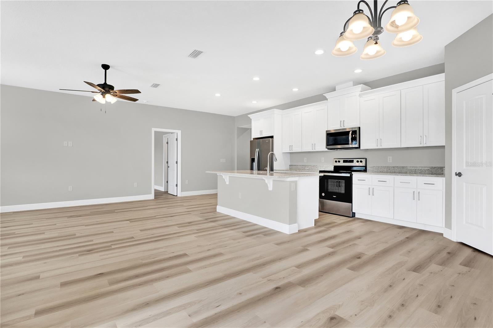Novo com vista! Este lindo barcos caseiros de 3 camas de 3 camas 1743 pés quadrados com um maravilhoso piso plano aberto. Esta casa perfeitamente posicionada não tem vizinhos traseiros, o que permitirá que você desfrute de uma bela vista do pôr do sol do lago McCoy. Algumas das características desta casa consistem em vinil de prancha de luxo em toda a casa, armários de madeira maciça na cozinha e banheiros com tecnologia suave de fechamento, bancadas de granito de superfície sólida, aparelho completo de eletrodomésticos com refrigerador de profundidade, quantidades amplas de armazenamento através de lavanderia e armários de linho, os banheiros são lindamente ladrilhos com o mestre com piso de pedra no chuveiro. Esta casa é arejada e brilhante, com seus tetos de 9 '4 "e com janelas perfeitamente posicionadas, permitindo que a luz natural inundasse a casa. Apopka FL tem muito a oferecer a apenas quilômetros da casa, que inclui restaurantes, o Publix Grocery e todas as compras que você deseja. Venha e veja o que esta incrível casa tem a oferecer hoje!