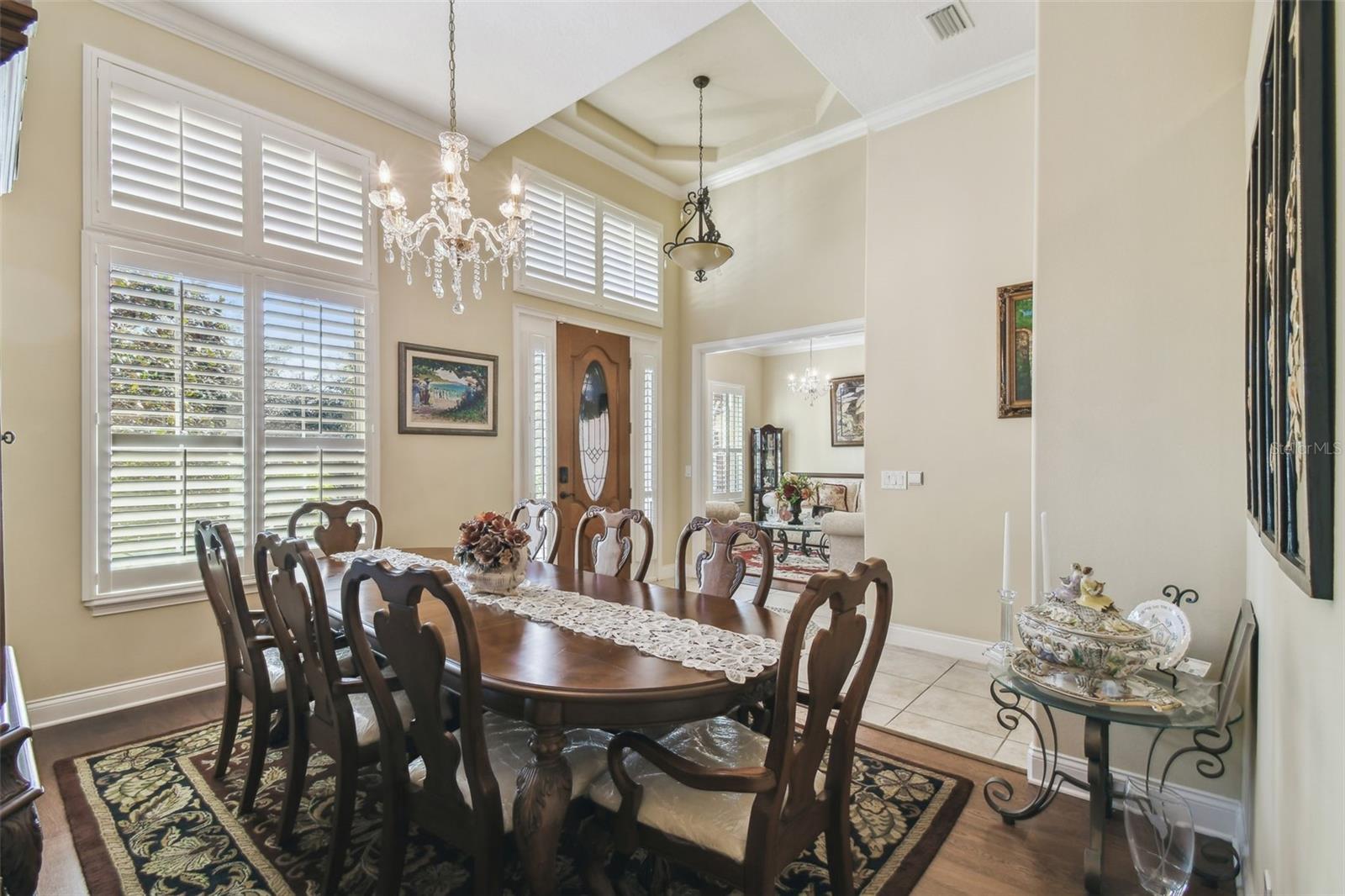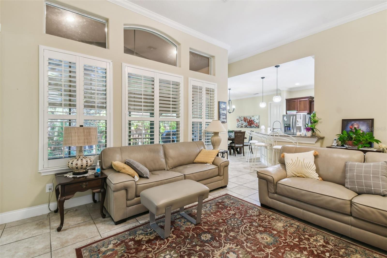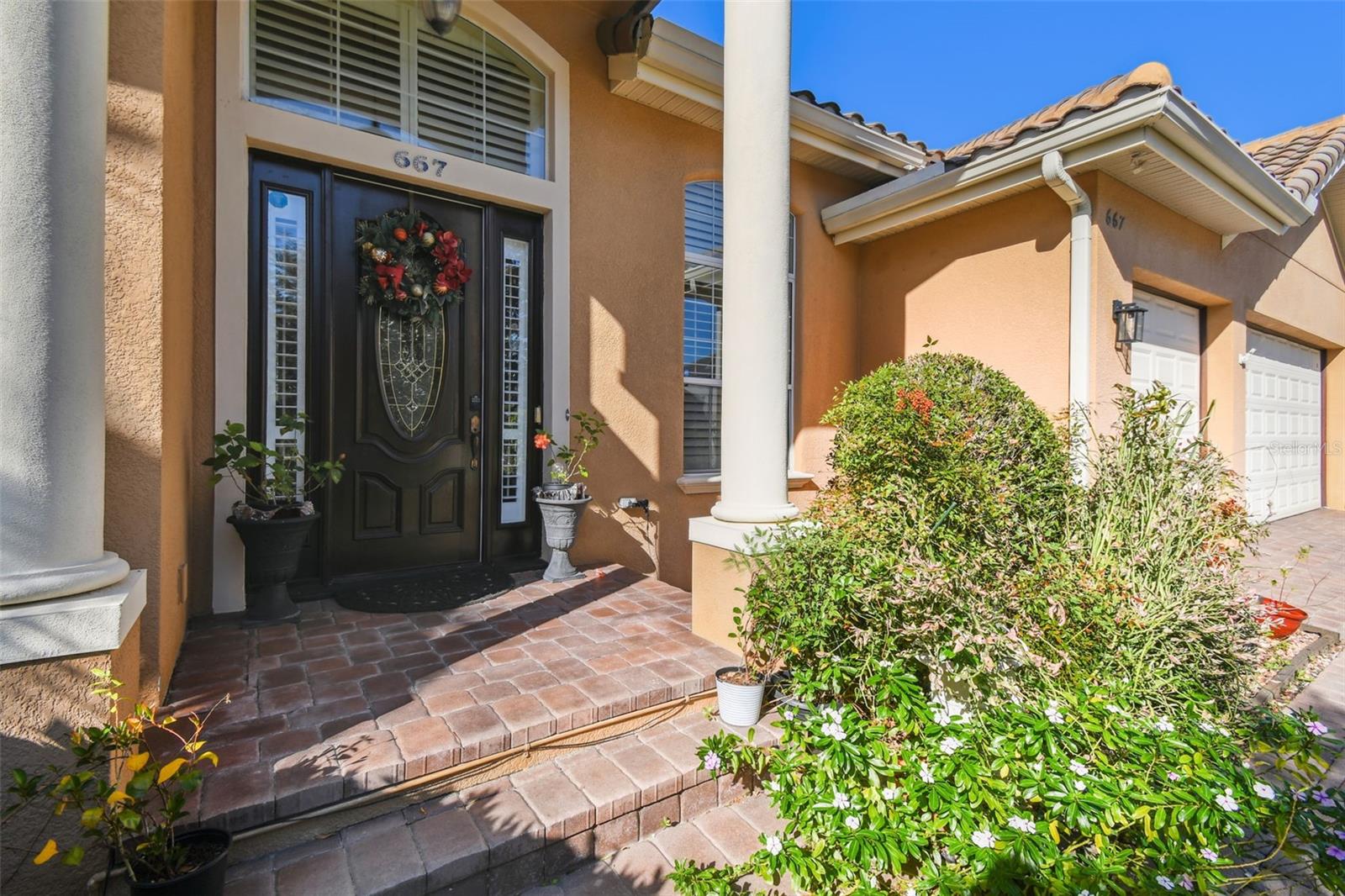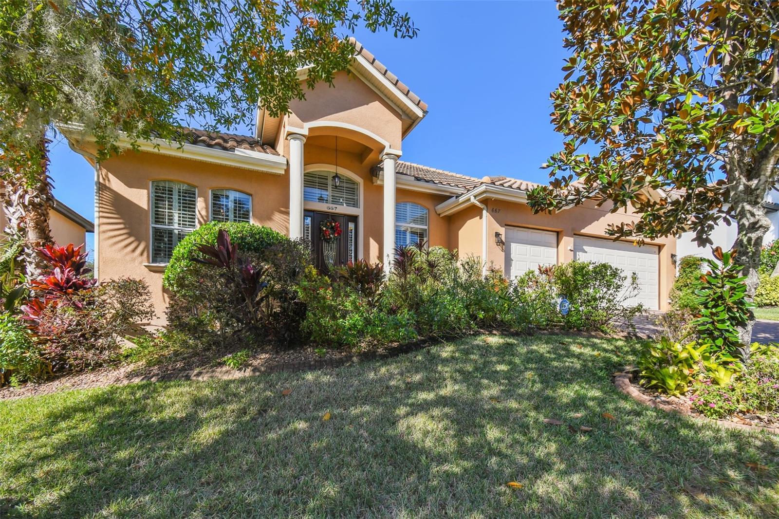 Esta residência requintada possui um telhado de barril impressionante e uma garagem acolhedora de pavimentação, levando a uma espaçosa garagem de 3 carros. No interior, a elegância é abundante com persianas, pisos de madeira, tetos altos e molduras de coroa e tetos de bandeja! A cozinha gourmet apresenta bancadas em granito e aparelhos de aço inoxidável atualizados. Divirta-se na sala de jantar formal ou utilize a sala flexível com portas francesas como escritório, sala de estar formal ou potencial 5º quarto- (adicione um armário). A planta de piso de quarto dividido bem projetado inclui uma suíte master, dois quartos com um banheiro Jack & Jill e um quarto quarto perto do terceiro banheiro completo. Relaxe com a Lanai de tela privada, desfrute de grelhar no pátio e se beneficie da privacidade de um quintal cercado. Situou um condomínio fechado. Sua casa de sonho aguarda!