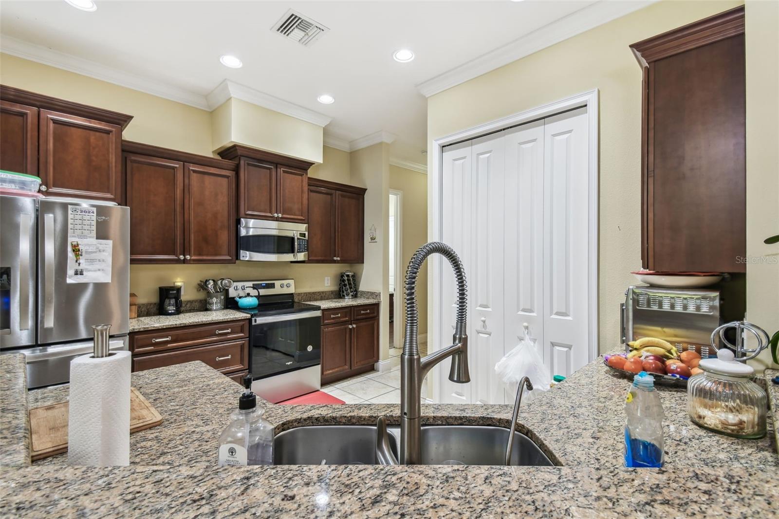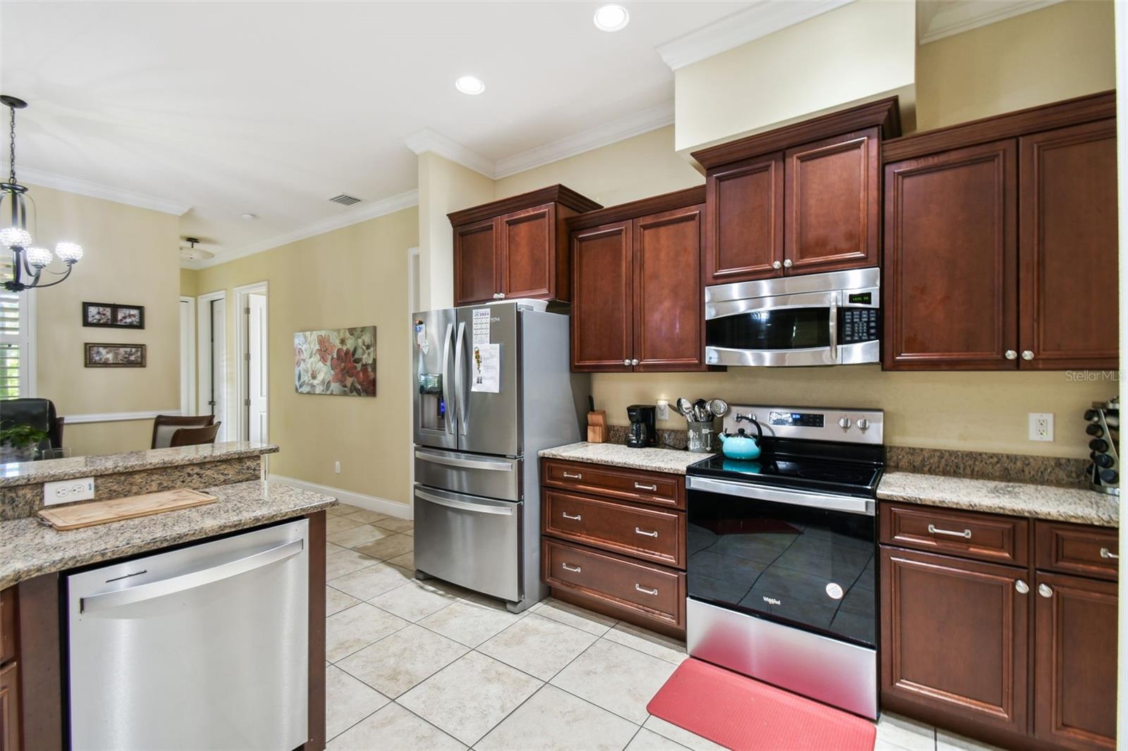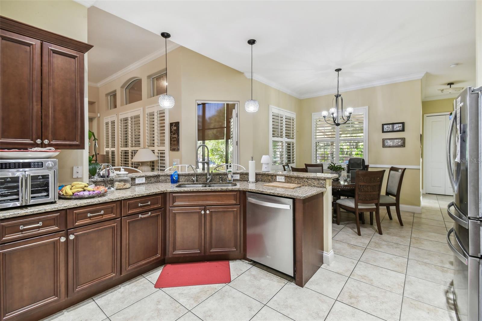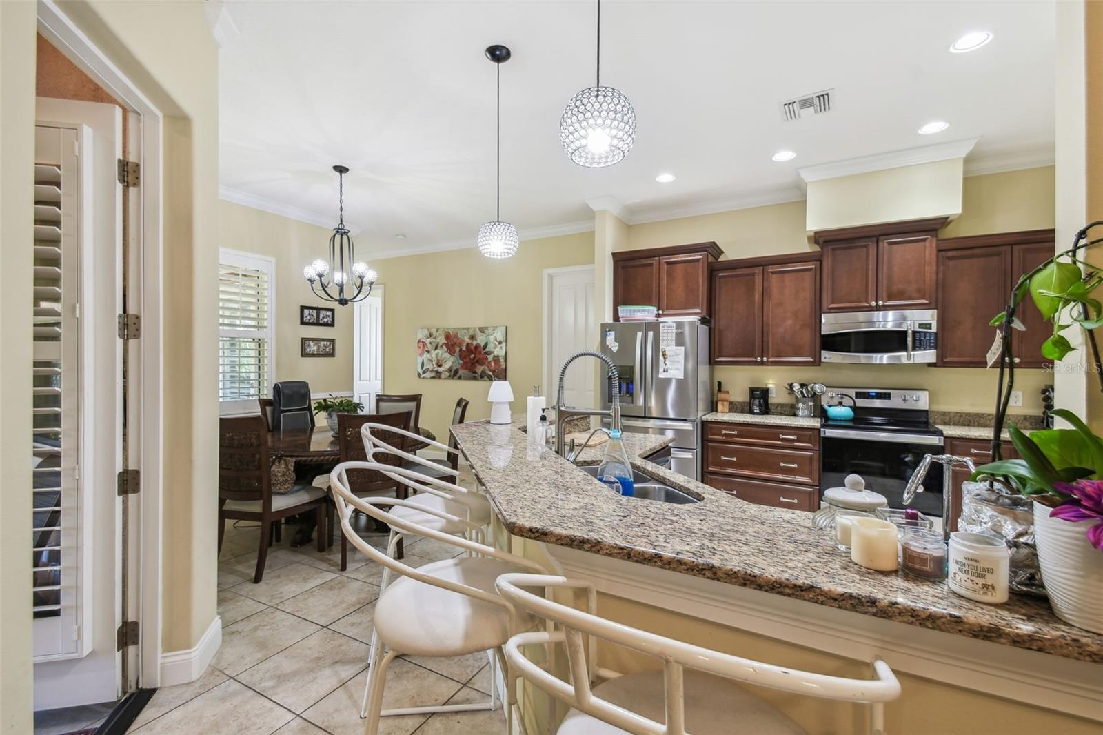 Esta residência requintada possui um telhado de barril impressionante e uma garagem acolhedora de pavimentação, levando a uma espaçosa garagem de 3 carros. No interior, a elegância é abundante com persianas, pisos de madeira, tetos altos e molduras de coroa e tetos de bandeja! A cozinha gourmet apresenta bancadas em granito e aparelhos de aço inoxidável atualizados. Divirta-se na sala de jantar formal ou utilize a sala flexível com portas francesas como escritório, sala de estar formal ou potencial 5º quarto- (adicione um armário). A planta de piso de quarto dividido bem projetado inclui uma suíte master, dois quartos com um banheiro Jack & Jill e um quarto quarto perto do terceiro banheiro completo. Relaxe com a Lanai de tela privada, desfrute de grelhar no pátio e se beneficie da privacidade de um quintal cercado. Situou um condomínio fechado. Sua casa de sonho aguarda!
