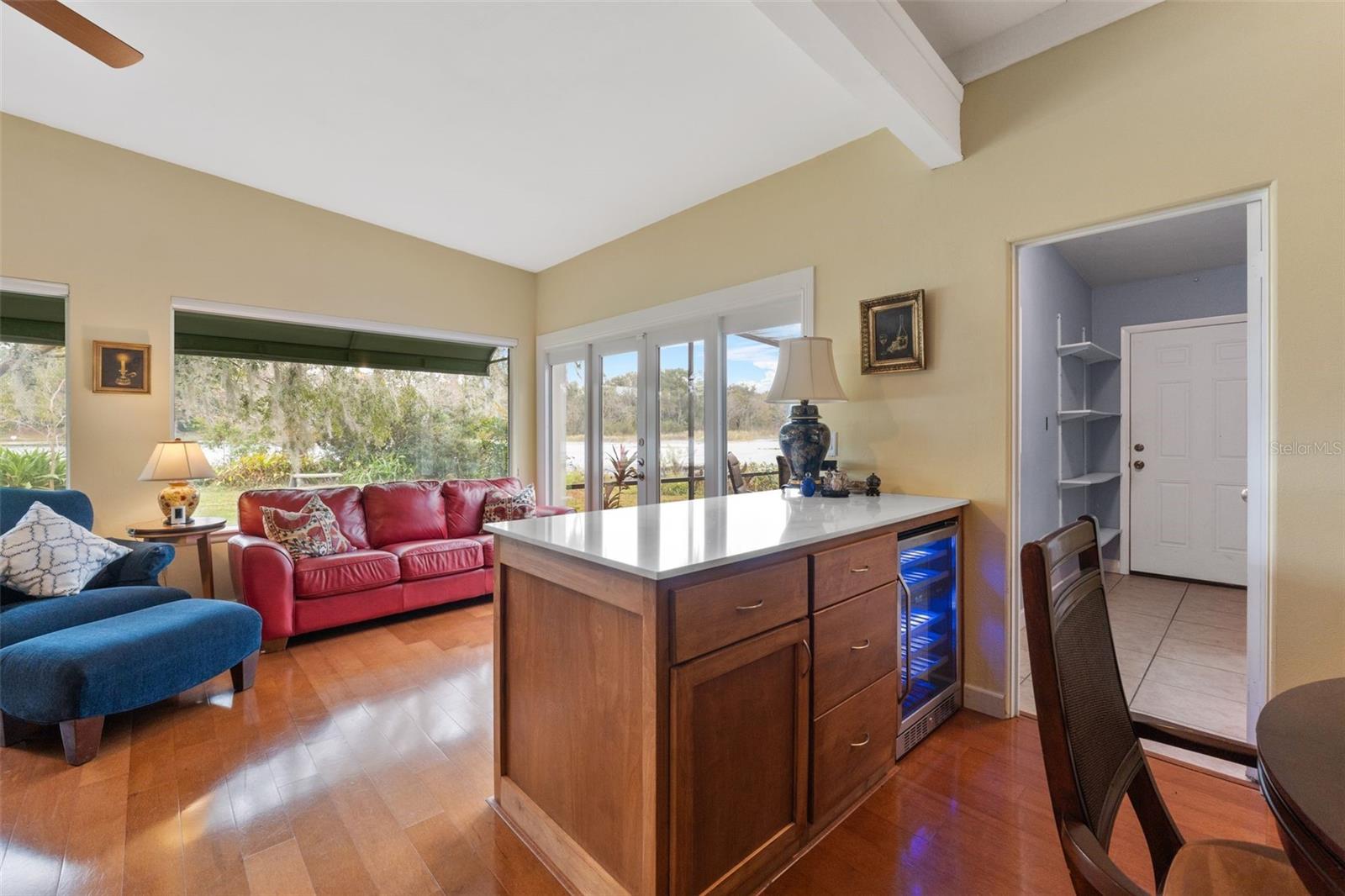 OPORTUNIDADE RARA: CASA À BEIRA DO LAGO! Esta residência moderna única de meados do século da década de 1950 está situada no final de um beco sem saída e oferece vistas panorâmicas deslumbrantes do Lago Mirror. Você será recebido por uma charmosa varanda frontal coberta com teto macho e fêmea personalizado e pedras elegantes. Entre para descobrir um aconchegante quarto familiar que convida ao relaxamento e ao aconchego! A cozinha flui perfeitamente para a área de jantar, oferecendo vistas panorâmicas do lago através de belas janelas de vidro fixas, complementadas por uma bancada para café da manhã. A marquise é o local perfeito para observação de aves e vida selvagem! Retire-se para a suíte do proprietário, localizada na parte de trás da casa, onde você pode relaxar em uma ampla área de estar enquanto aprecia vistas deslumbrantes do lago. No exterior, desfrute de dois pátios protegidos que proporcionam o cenário ideal para saborear o seu café da manhã enquanto observa o nascer do sol! Esta propriedade possui uma extensa fachada para o lago no cintilante Mirror Lake, completa com seu próprio cais privado. O lago se estende por 32 acres, perfeito para paddle boarding ou caiaque. O espaçoso quintal oferece amplo espaço para criar seu próprio oásis sereno enquanto desfruta de vistas de 270 graus para o mar. As características adicionais da casa incluem pisos de madeira e eletrodomésticos de aço inoxidável. Esta localização privilegiada está convenientemente situada perto de lojas, supermercados, rodovias e muito mais! Zoneado para escolas do condado de Seminole. NOVO condensador externo AC 2025! Não deixe escapar uma propriedade única! Agende seu tour pessoal por esta casa tranquila e aproveite o charme da vida à beira do lago!