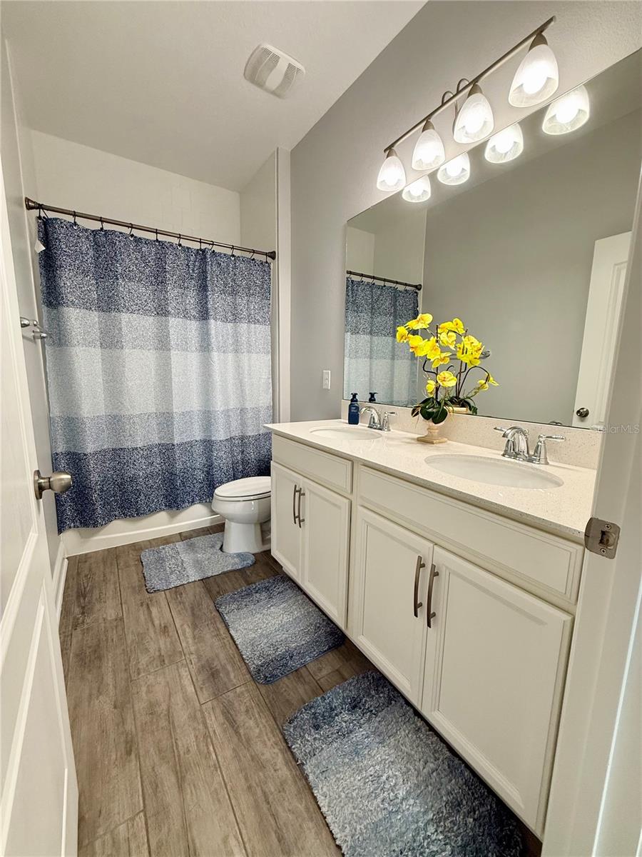 Mudar pronta para 3 quartos 2 banheiro em casa no maravilhoso condomínio fechado de vistas na beira da água! O lar tem sido excepcionalmente bem mantido com lindos ladrilhos de tábuas de madeira em todas as áreas comuns e um conceito aberto, perfeito para entreter ou passar tempo com toda a família. The modern kitchen boasts 42" wood cabinets with under lighting, a gas stove, quartz countertops, a large center island, a walk-in pantry and a full set of stainless-steel appliances including the refrigerator, range, dishwasher and microwave. Relax in the Owner's suite with a private suite bathroom that features an oversized double shower for a spa-like retreat! Two additional bedrooms and a second full bathroom offers flexibility for guests or a home Office.