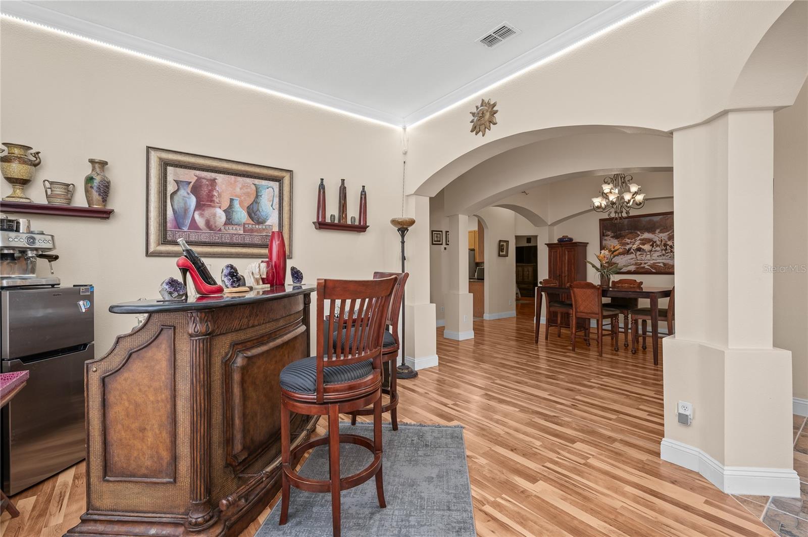 Esta propriedade é uma casa única localizada em Apopka FL. Apresenta: 4 quartos, 2 banheiros e quarto de bônus. Sim, esta casa inclui uma sala de bônus que pode ser usada como 5º quarto ou escritório ou sala de jogos. Livável 2325 pés quadrados, tamanho do lote 7,150 pés quadrados O ano construído em 2002 com uma nova unidade A/C e um novo teto. Cozinha bonita com armários de 42 "e bancadas de granito, 4 quartos grandes com tetos altos e belos arcos. Quintal particular com um pátio totalmente exibido para desfrutar de reuniões familiares ou amigos. Um quintal totalmente cercado para obter mais privacidade. Localizado perto de Wekiva Springs Park, Altamonte Mall, I4 e 429, prazas de compras, escolas e recreação.
