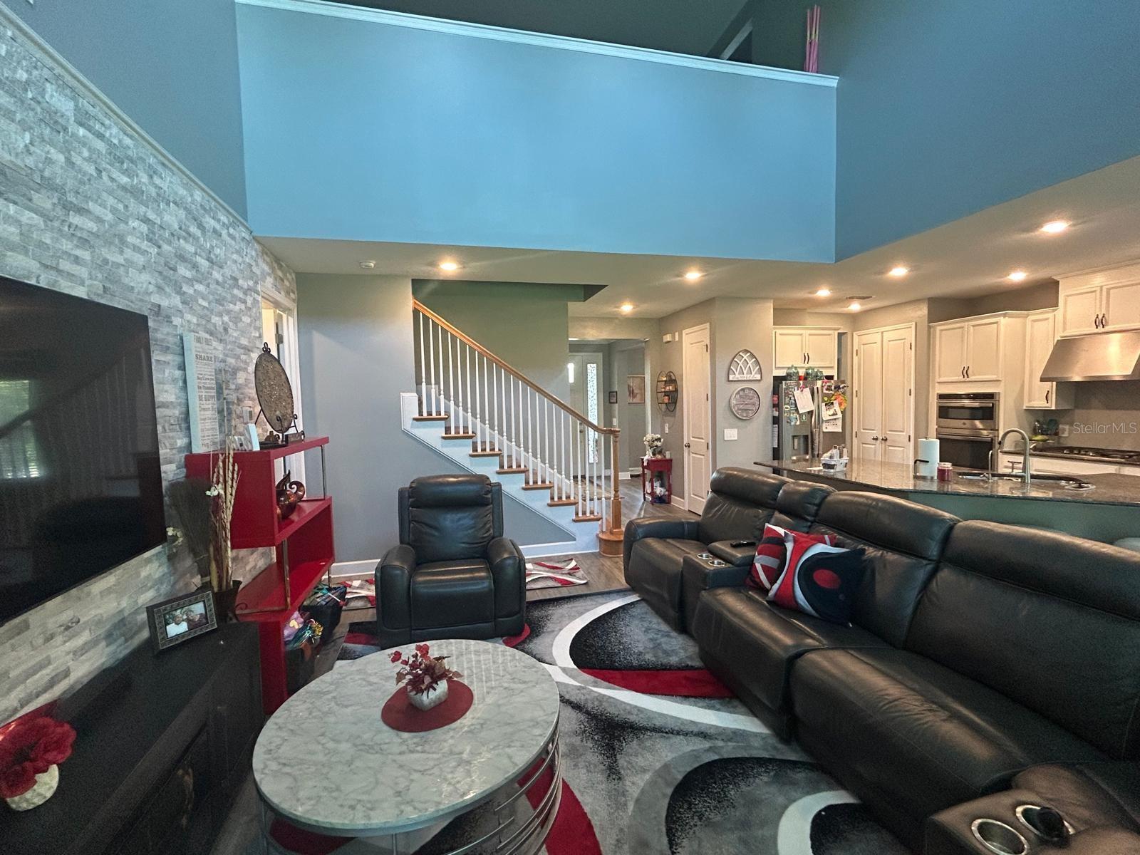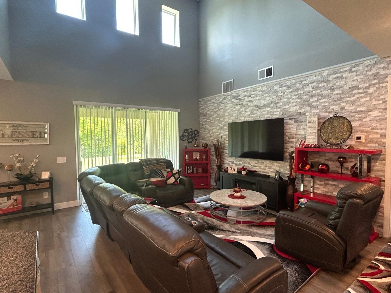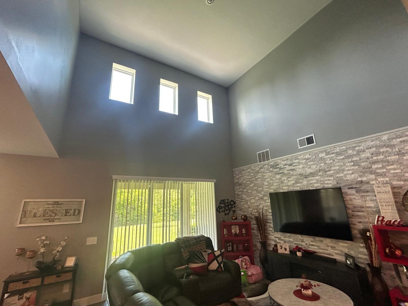 Redução de preços! Linda e espaçosa casa de 2 andares com uma garagem de 4 quartos de 3,5 banheiros, loft, escritório e uma garagem de 2 carros. Planta de piso aberto que conecta as áreas de estar, jantar, cozinha e canto. Tetos altos. Cozinha espaçosa com bancadas sólidas e todos os aparelhos de aço inoxidável. Fogão a gás e muito mais. O quarto e o banheiro primário estão no primeiro andar. Lavanderia e 1/2 banho também estão no primeiro andar. O segundo andar tem 3 quartos, um loft, escritório e 2 banheiros completos. Enorme quintal e Lanai, na parte de trás da casa e do pátio na frente. Aquecedor de água a gás sem tanque. Comunidade à beira do lago, esta comunidade oferece acesso a uma variedade de comodidades, incluindo um pool comunitário e instalações recreativas. Fácil acesso a compras, restaurantes, entretenimento e rodovias.