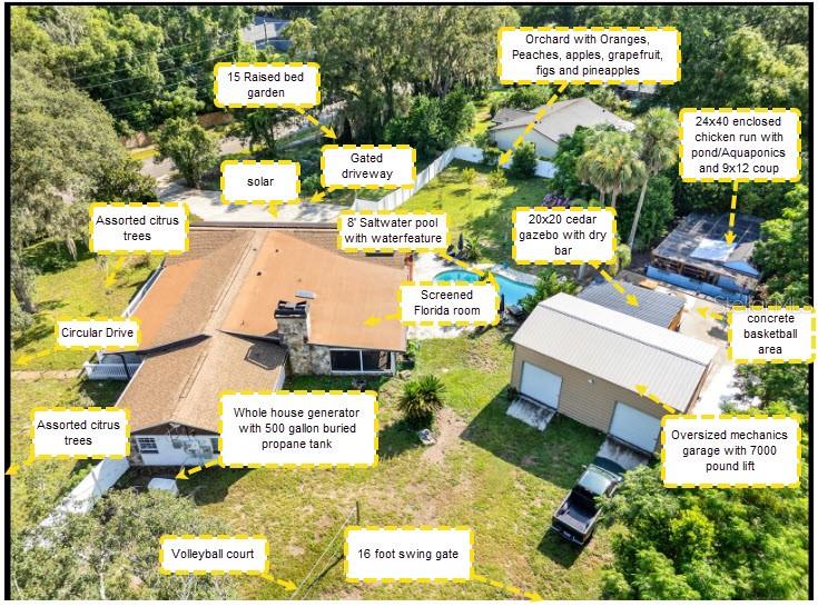 Descubra esta casa excepcional e lindamente remodelada com piscina de água salgada de 4 quartos e 2,5 banheiros, situada em 1,10 acres de terras agrícolas A-1 em Apopka - SEM HOA e acesso escriturado ao Lago Alma. Aproveite a tranquilidade da vida no campo, permanecendo a poucos minutos de supermercados, restaurantes e lojas. Isso não é uma reviravolta - os proprietários estão se mudando para trabalhar e a propriedade reflete atualizações cuidadosas e de alta qualidade. As principais melhorias incluem um NOVO telhado e HVAC (2022), recapeamento da piscina (2023) com um novo sistema de água salgada e gerador de piscina, um novo sistema de poço e encanamento séptico atualizado (2023). A cozinha remodelada dispõe de eletrodomésticos Samsung com Wi-Fi, incluindo geladeira, fogão, lava-louças e micro-ondas. A suíte principal possui um armário de cedro personalizado recém-instalado com estantes embutidas (2024). Os destaques internos adicionais incluem uma lareira a lenha e uma varanda com tela, perfeita para relaxar o ano todo. A vida ao ar livre realmente brilha nesta propriedade. As características incluem um galinheiro/corredor 24x40 (atualmente produzindo ovos para uma pequena empresa), várias árvores frutíferas, 15 canteiros elevados de horta e uma horta elevada adicional. Os vendedores planejam levar os frangos e aves, mas estão abertos à negociação com compradores interessados. A oficina independente está equipada com um elevador hidráulico para carros de 7.000 libras e oferece amplo espaço para trailer, barco, estúdio ou armazenamento adicional. Atrás da oficina, uma laje de concreto preparada para água e eletricidade inclui uma cesta de basquete, fogueira e um pátio coberto 20x20 recém-construído com bar seco e mesa de piquenique - ideal para entretenimento ou expansão futura, incluindo uma potencial suíte para sogros. Os destaques adicionais incluem painéis solares e um gerador para toda a casa. Os vendedores contribuirão com US$ 20.000 para o empréstimo solar/gerador antes do fechamento; o empréstimo é transferível e inclui garantia de 25 anos. O zoneamento agrícola permite flexibilidade para animais, agricultura em pequena escala e outros usos permitidos. Localizada a poucos minutos do Parque Estadual Wekiwa Springs, oferecendo caminhadas, caiaque, paddleboarding e pesca, esta propriedade única combina atualizações modernas, recursos autossustentáveis e vida ao ar livre. Agende sua exibição privada hoje mesmo – propriedades como esta são raras.
