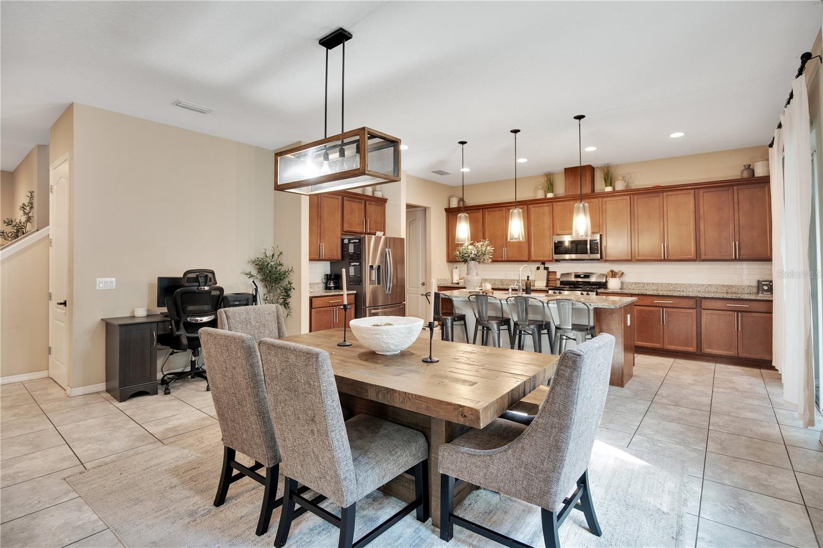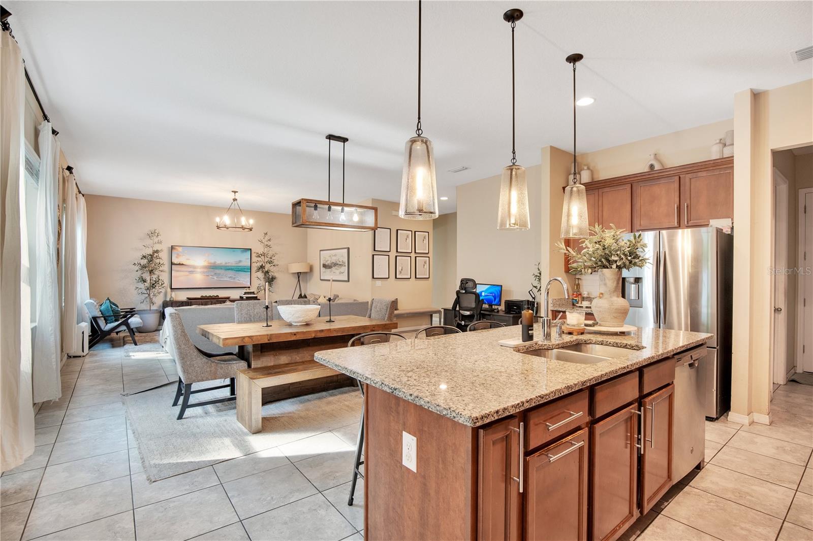 Construída em 2019, esta casa de 3 quartos lindamente conservada (o quarto extra no andar de baixo pode ser usado como um 4º quarto) e 3 banheiros oferece mais de 2.300 pés quadrados de espaço vital na desejável comunidade de Apopka. A planta aberta apresenta uma cozinha espaçosa com armários modernos, amplo balcão e uma grande ilha com vista para as áreas de jantar e de estar - perfeita para entretenimento. A suíte principal no andar de cima inclui closet e banheiro privativo com pias duplas e box amplo. Dois quartos adicionais, um banheiro completo e um loft versátil oferecem muito espaço para a família, convidados ou um escritório doméstico. Desfrute da vida ao ar livre em um terreno generoso com quintal privativo. Os destaques adicionais incluem entrada coberta, lavanderia interna e garagem para 2 carros. Convenientemente localizada perto de escolas, lojas, restaurantes e principais rodovias, esta casa pronta para morar combina conforto, funcionalidade e estilo.