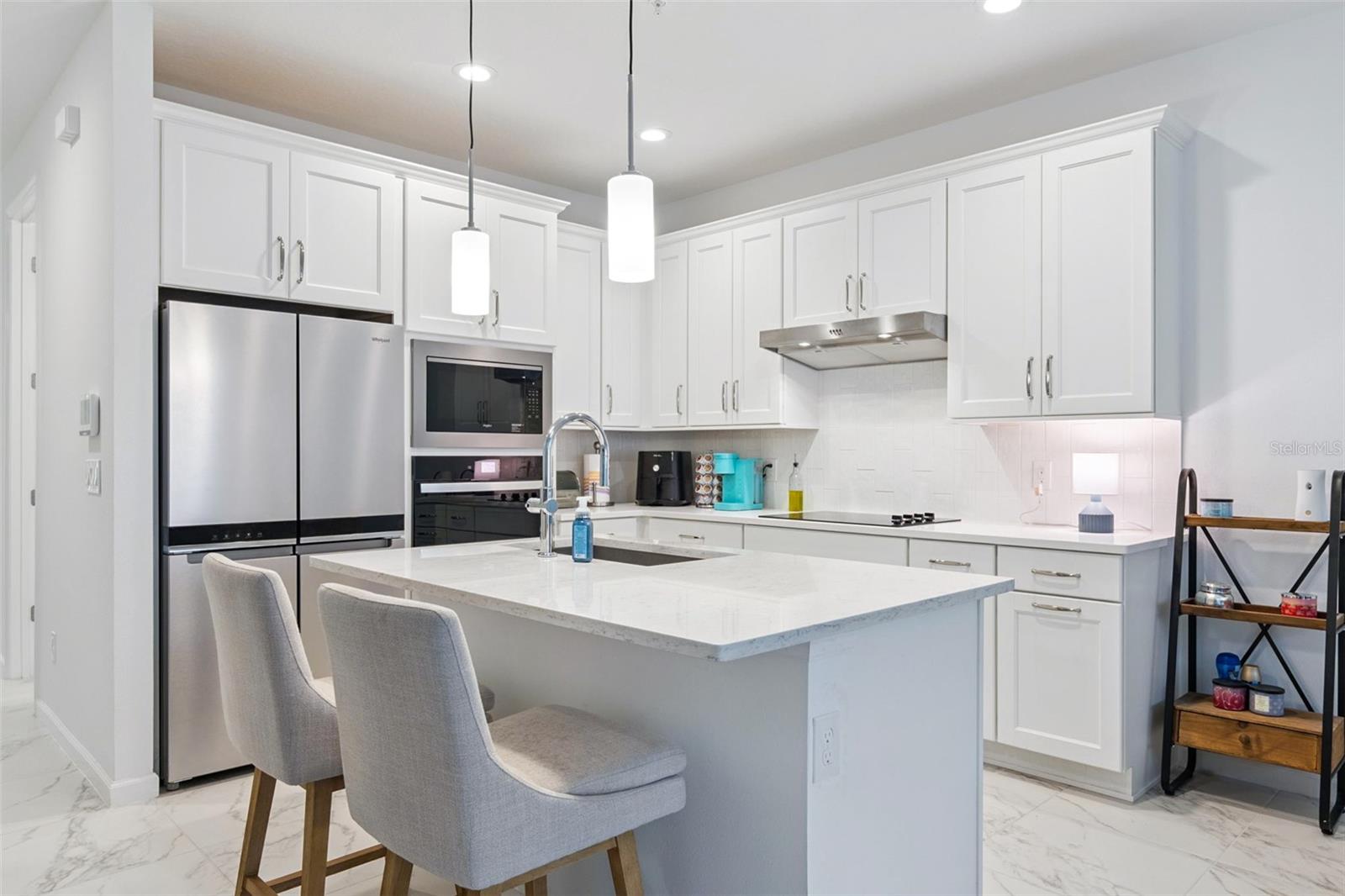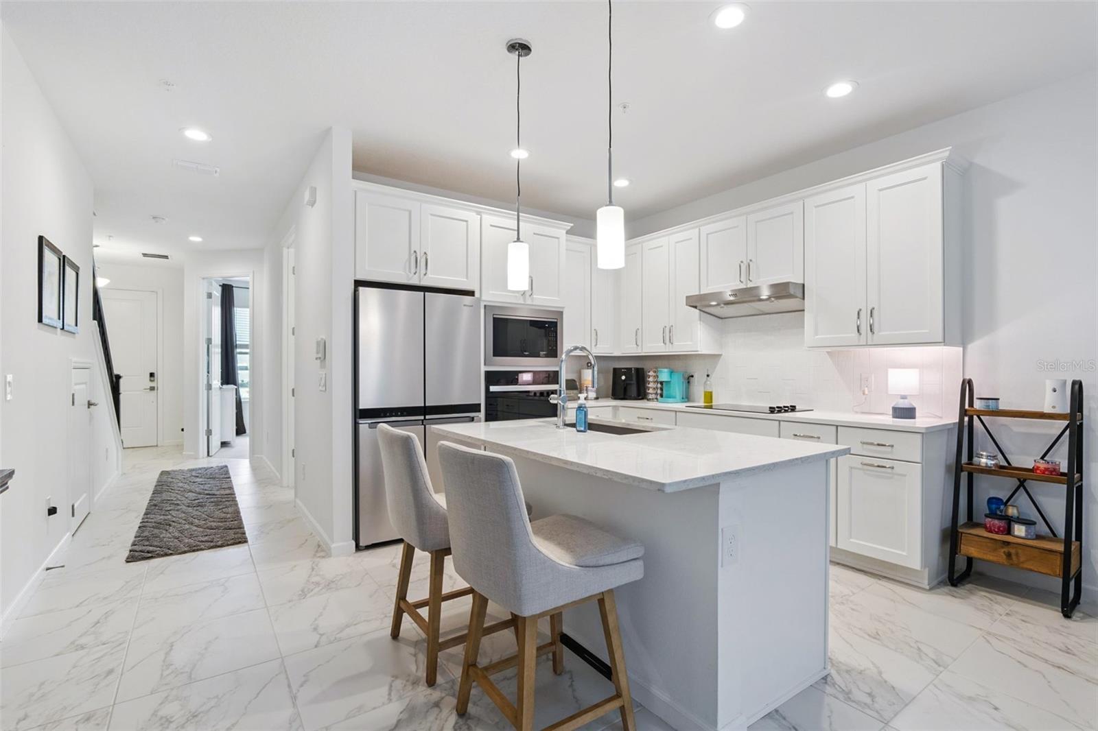 Toll Brothers, residência urbana MODERNA totalmente reformada - 4 quartos, 3 banheiros, tetos de 9 pés, garagem para 2 carros com pátio privativo perfeito para relaxamento e entretenimento. A planta baixa de conceito aberto tem uma ampla sala que flui para a cozinha gourmet lindamente decorada. A cozinha do chef possui armários com fechamento suave, balcões de quartzo e um backsplash decorativo de azulejos de metrô. Eletrodomésticos Whirlpool em aço inox, torneira atualizada, descarte, forno e micro-ondas embutidos, cooktop elétrico e iluminação suspensa sobre ilha de cozinha, melhoram a funcionalidade e o estilo da cozinha. Máquina de lavar e secar roupa Whirlpool também incluída. Despensa ao lado da cozinha. Saia pela sala de reuniões até o seu pátio privado, um espaço convidativo ao ar livre, perfeito para desfrutar do ar fresco em um ambiente tranquilo. Também localizado no primeiro andar está um confortável quarto e banheiro completo, completo com chuveiro fechado com porta de vidro, garantindo conforto e privacidade aos hóspedes. No andar de cima, a suíte do proprietário tem muita luz natural, closet espaçoso e banheiro privativo inspirado em spa. O banheiro do proprietário é um refúgio sereno, com pias duplas com tampo de quartzo e chuveiro sem moldura. O segundo andar também inclui dois quartos adicionais, um banheiro completo e uma lavanderia, oferecendo uma separação cuidadosa para privacidade e conveniência. O piso de porcelanato abrange as áreas de estar do primeiro andar, proporcionando estilo e durabilidade, o porcelanato cinza na lavanderia e nos banheiros adiciona um toque elegante e moderno. O carpete berbere macio e resistente a manchas completa os quartos, o loft e a escada para maior conforto. Este condomínio sofisticado possui um lindo Club House com sala de ioga, academia e sala comunitária. Também uma piscina estilo resort com entrada para a praia, prateleira de piscina, fontes, cabanas privativas e móveis de lounge. Impressionantes quadras de pickleball e tênis também.