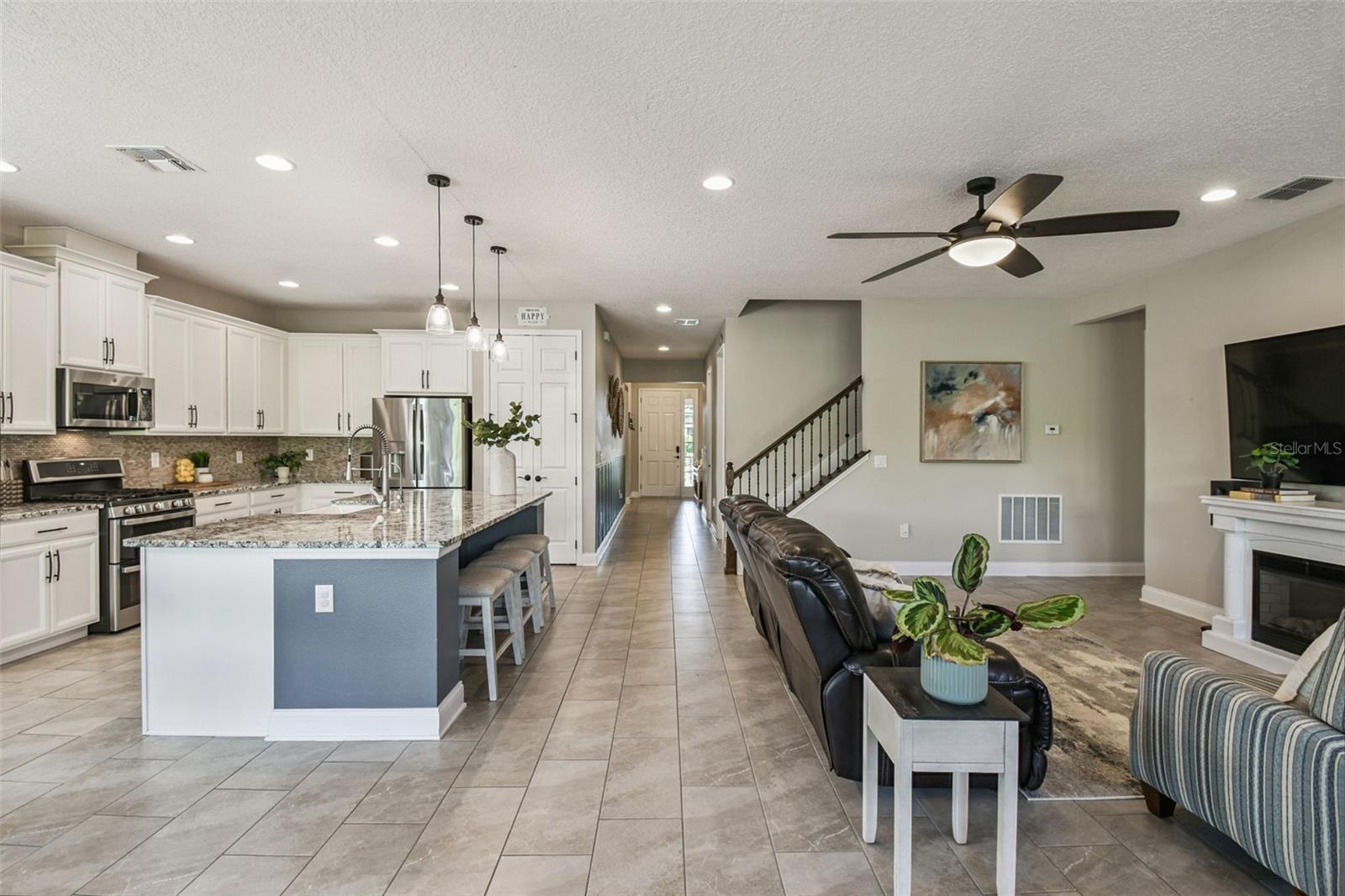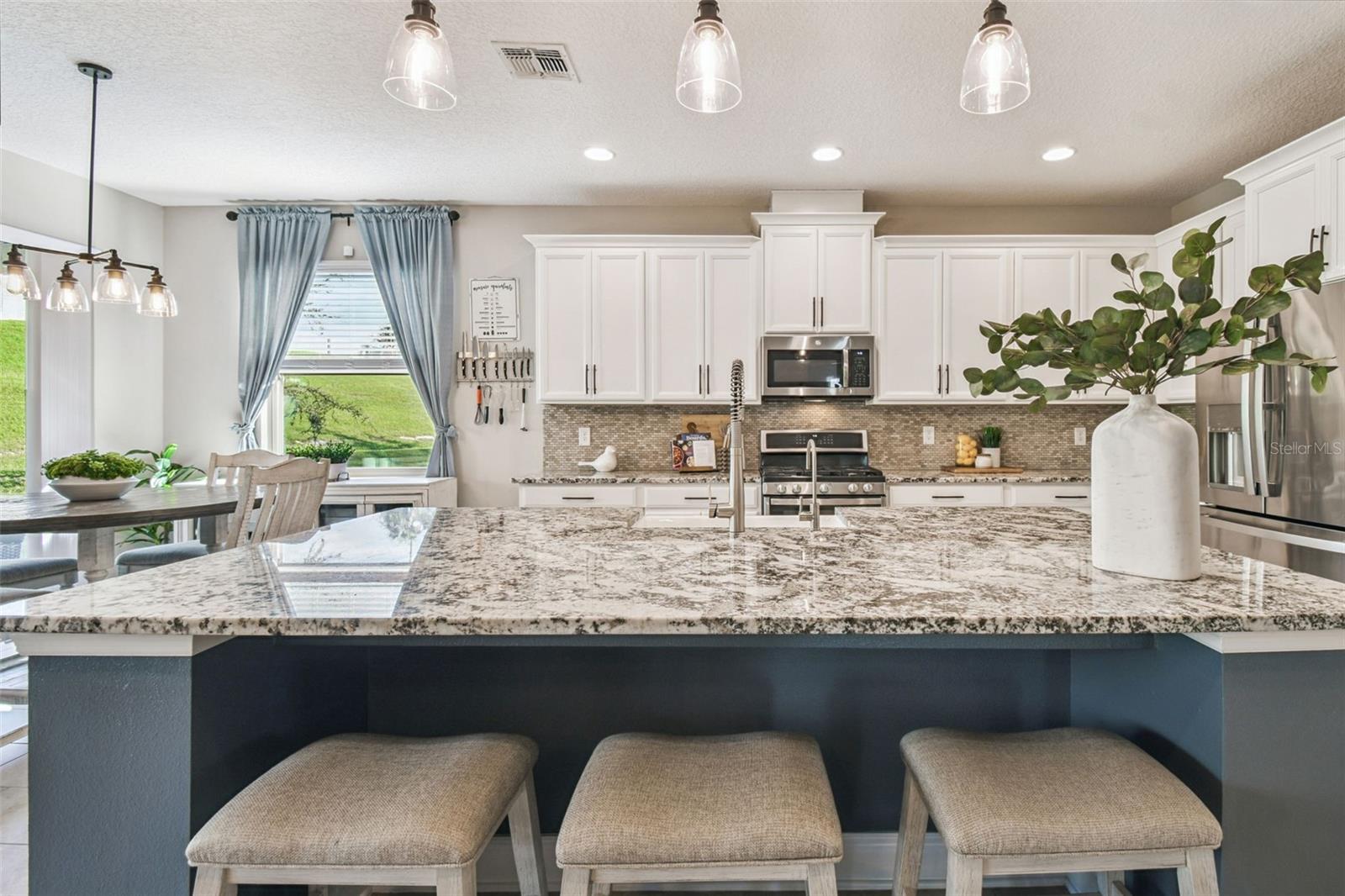 Bem-vindo a esta casa de 4 quartos e 4 banheiros lindamente conservada no condomínio fechado de Vistas em Waters Edge. Construída em 2020, esta residência de 2.958 pés quadrados oferece um layout de conceito aberto projetado para a vida moderna. A cozinha gourmet possui armários de 42", bancadas de granito, uma pia de fazenda, eletrodomésticos GE de aço inoxidável e uma grande ilha com vista para a grande sala. A espaçosa suíte do proprietário inclui um teto falso, closet grande e um banheiro luxuoso com pias duplas, banheira de imersão e chuveiro separado. Os recursos adicionais incluem portas internas de 8', rodapés atualizados e uma varanda coberta perfeita para relaxar ou se divertir. Convenientemente localizado perto de lojas, restaurantes, parques e principais rodovias. Pronto para morar. e mostra como novo!