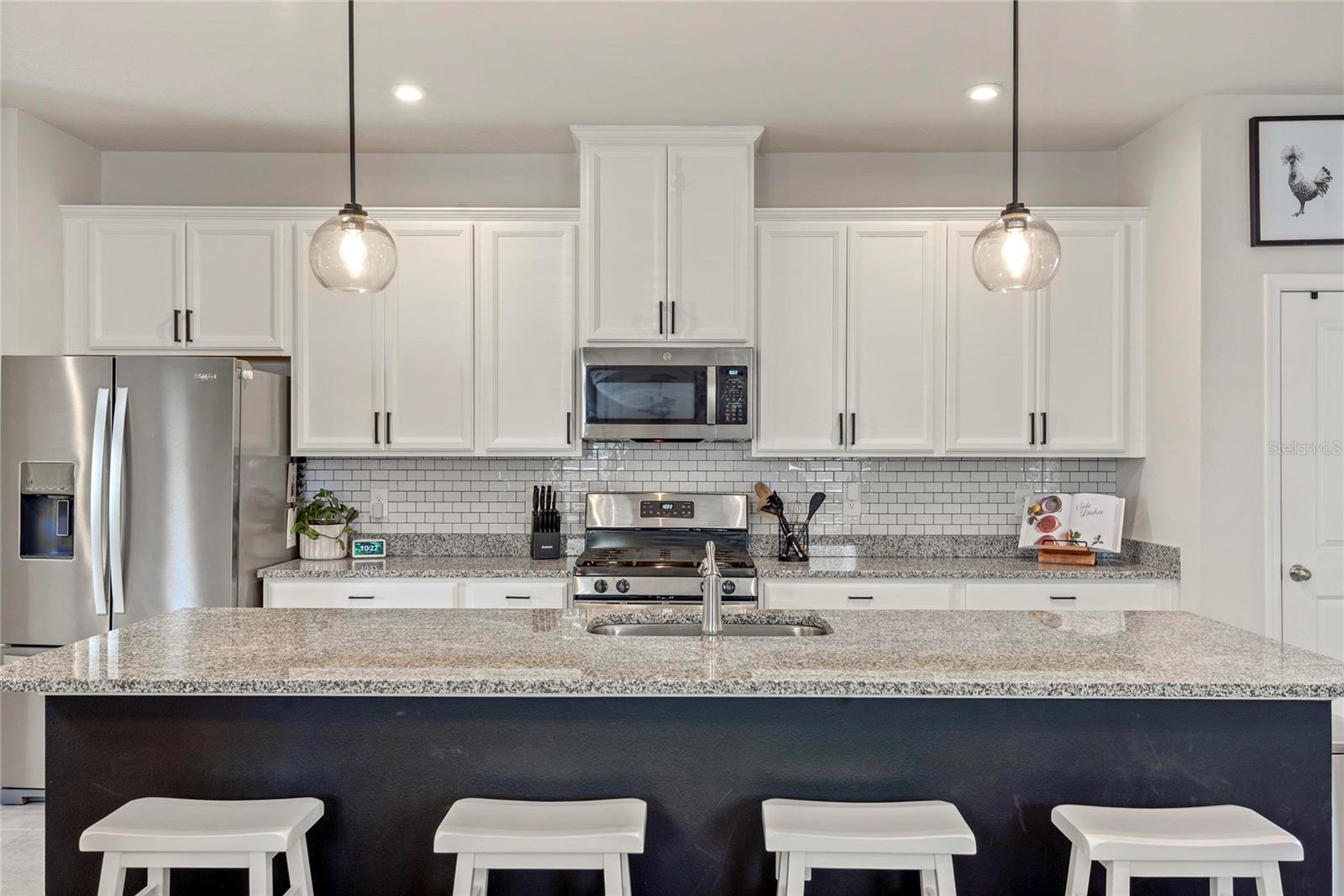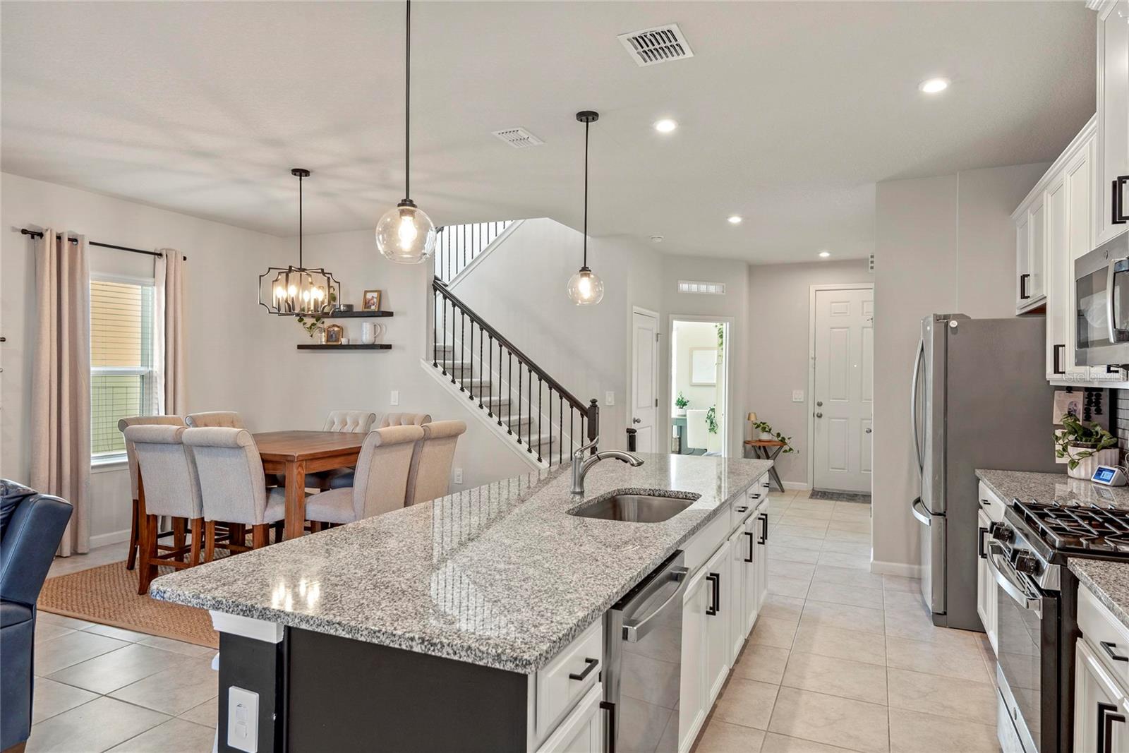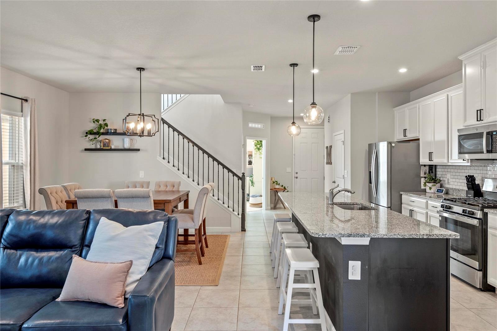 Bem-vindo a esta bela construção de 2023 da Ryan Homes, modelo Hutchinson, localizada na cobiçada comunidade Park View Preserve de Apopka. Esta casa de dois andares, 3 quartos e 2,5 banheiros combina estilo moderno com funcionalidade cotidiana. O primeiro andar é todo revestido em azulejos e um amplo layout de conceito aberto, onde a cozinha tem vista perfeita para as áreas de jantar e de estar, perfeita para entretenimento ou para a vida cotidiana. A cozinha é uma peça central com bancadas de quartzo, armários de madeira maciça, eletrodomésticos de aço inoxidável, incluindo fogão a gás e uma despensa espaçosa. Logo ao lado do hall de entrada, você encontrará um espaço de escritório dedicado, ideal para trabalhar em casa ou para um estudo tranquilo. No andar de cima, todos os três quartos oferecem piso em carpete aconchegante. A suíte principal é de tamanho generoso e inclui closets e um banheiro principal inspirado em spa com box amplo, incluindo pias duplas para ele e para ela com bancadas de quartzo. Os destaques adicionais incluem uma varanda traseira atualizada com deck de pavimentação e grama artificial com acesso pela cozinha, uma garagem anexa para dois carros com uma garagem que acomoda dois veículos de tamanho normal acessíveis através do beco, um aquecedor de água a gás sem tanque e janelas atualizadas para maior eficiência e conforto. Idealmente localizada a poucos minutos do centro de Apopka, centro de Mount Dora, Wyld Oaks - em breve, Kelly Park Rock Springs e com fácil acesso à FL-429, esta casa oferece conveniência e charme. Não perca a oportunidade de possuir uma casa quase nova em um dos bairros mais desejáveis de Apopka!