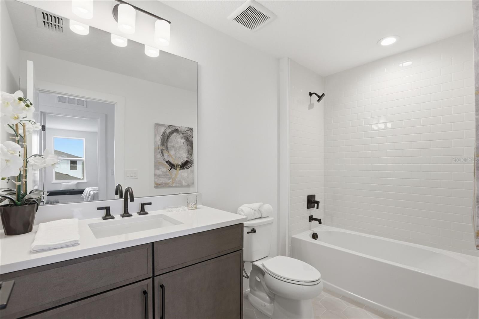 Impressionante Toll Brothers Liston Modern Farmhouse localizada na procurada comunidade de Bronson Peak. Esta casa cuidadosamente projetada oferece flexibilidade excepcional com uma residência principal de 3 quartos e um apartamento privado acima da garagem, ideal para residências multigeracionais, hóspedes ou trabalho em casa. A casa principal possui um primeiro andar de conceito aberto com uma grande sala iluminada, área de jantar casual e cozinha decorada com bancadas de quartzo, armários empilhados, eletrodomésticos de aço inoxidável e acabamentos atualizados por toda parte. O layout perfeito é perfeito para a vida cotidiana e também para entretenimento. Três quartos bem equipados na casa principal proporcionam conforto e privacidade. Uma característica marcante desta casa é o apartamento separado acima da garagem, completo com entrada privativa, área de estar em estilo loft, quarto, banheiro completo e sistema de ar condicionado dedicado - oferecendo verdadeira independência e versatilidade raramente encontradas em novas construções. Os destaques adicionais incluem portas internas de 2,5 metros no primeiro andar, piso atualizado, ferragens e acessórios pretos modernos e o artesanato exclusivo da Toll Brothers por toda parte. Localizado em uma localização crescente em Apopka, com acesso conveniente às principais estradas, lojas, restaurantes e recreação ao ar livre. Agende hoje mesmo seu tour privado e experimente o artesanato que torna esta casa da Toll Brothers verdadeiramente excepcional.