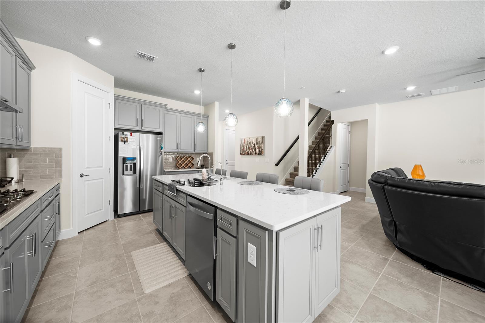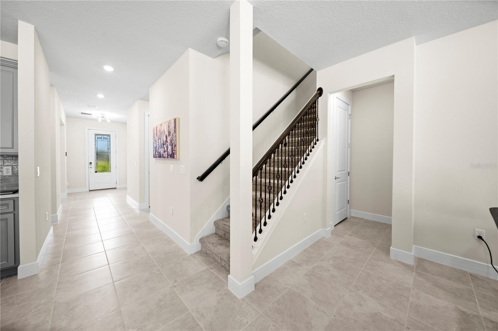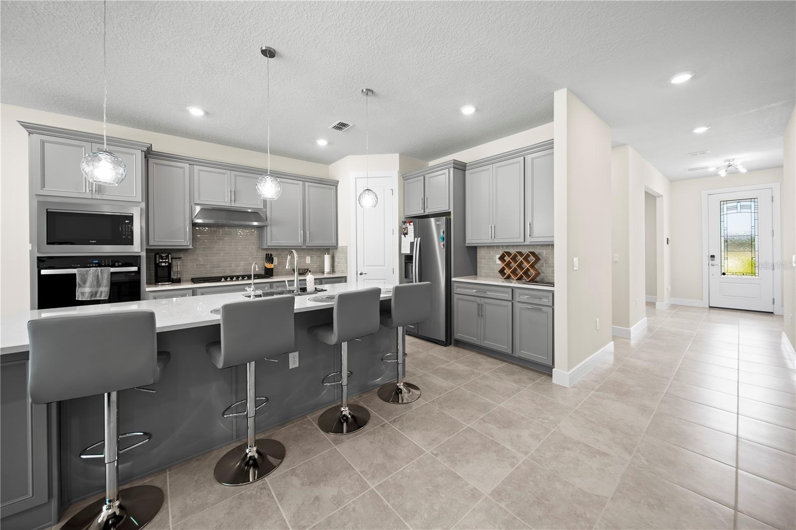 Bem -vindo à sua casa de sonho! Esta casa de dois andares, de dois andares, bem projetada, em um lote de canto, não apresenta vizinhos traseiros e está repleto de atualizações para melhorar seu estilo de vida! O exterior do Mediterrâneo da Flórida complementa o interior moderno da casa, que inclui 4 quartos, 3,5 banheiros, uma planta piso de conceito aberto, uma sala flexível, um loft grande, uma lanai coberta e uma garagem espaçosa de 2 carros! Inside you will find professionally curated design selections including a designer glass-inlay front door, upgraded interior doors and baseboards, pocket sliding glass doors in the gathering room, gray tile flooring throughout the first floor and in the bathrooms, an oak and iron spindle staircase with wood treads, soft, stain-resistant carpet in the upstairs bedrooms and loft, enhanced wi-fi, and more! Ao entrar, você é recebido pela Sunny Flex Room, que funciona perfeitamente como seu escritório em casa, levando a um deslumbrante hall de entrada que passa pela lavanderia em direção à cozinha, sala de reuniões e café, todos com vista para a Lanai coberta. A cozinha gourmet possui uma despensa de canto, uma grande ilha central, aparelhos de aço inoxidável embutidos, armários cinza com hardware fosco, um backsplash de ladrilhos do metrô, bancadas de quartzo intocada e iluminação pendente. A suíte primária de nível principal possui um banheiro privativo com um grande armário, pias duplas, vaidades duplas, um armário de água privado e um chuveiro de grande porte! No andar de cima, um loft espaçoso é acompanhado por três quartos, um com banheiro privativo e armário e outro banheiro compartilhado. Saia até a Lanai serena e coberta, perfeita para beber seu café da manhã e hospedar churrascos de verão. Aproveite a vista do seu paisagismo exuberante na privacidade do seu quintal. Aninhado na comunidade tranquila de prados sinuosos em Apopka, esta casa oferece comodidades como uma piscina em estilo resort, parques e trilhas para caminhada. Desfrute de 1 Gig Internet e TV incluídos na baixa taxa HOA, sem CDD! Nas proximidades de todos os itens essenciais, com fácil acesso ao SR-429, compras, restaurantes e escolas. Agende sua consulta hoje e torne esse sonho realidade!