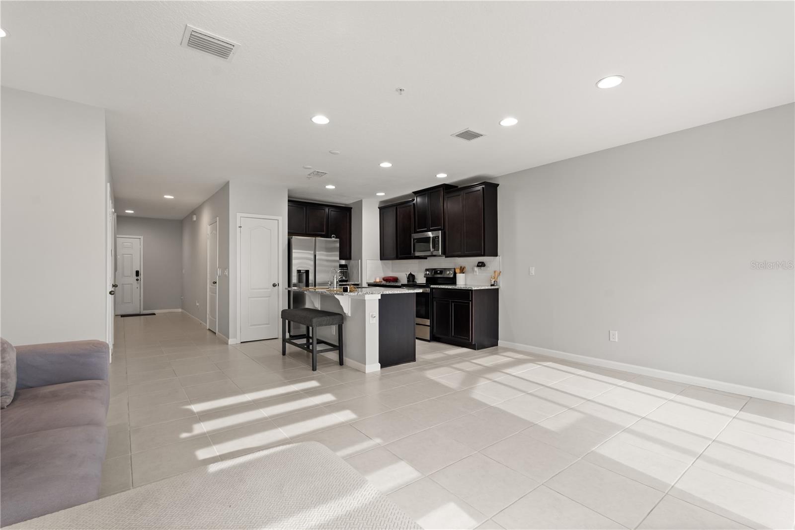 Uma ou mais fotos foram praticamente encenadas. Bem-vindo a este condomínio lindamente mantido de 3 quartos e 2,5 banheiros com uma garagem de 1 carro e uma garagem estendida de 2 carros, localizada no condomínio fechado da Reserva Hidden Lake em Apopka. Apenas 92 unidades em toda a comunidade. Construído em 2022, esta casa com eficiência energética oferece um layout funcional e moderno com acabamentos de alta qualidade por toda parte. O nível principal apresenta um espaço de vida e jantar brilhante e de conceito aberto, ideal para reuniões ou noites tranquilas. A cozinha inclui uma grande ilha de granito com assentos, utensílios de aço inoxidável GE®, armários elegantes, backsplash de ladrilhos de metrô e um sistema de água de osmose reversa. O piso de ladrilhos de aparência de madeira e as bancadas de quartzo adicionam um toque contemporâneo. No andar de cima, todos os quartos estão situados em particular, incluindo uma espaçosa suíte primária com closet e banho de suíte. O versátil loft oferece espaço para um escritório em casa, sala de jogos ou área de treino. Um armário de lavanderia está convenientemente localizado no mesmo nível que os quartos. As atualizações adicionais incluem tratamentos de janelas personalizados, um pátio selecionado para o prazer durante todo o ano e um sistema de filtragem de água de Westinghouse de toda a casa. Construído para Energy Star® 3.1 Padrões, esta casa foi projetada para menores custos de utilidade e economia de longo prazo. Esta unidade possui um disjuntor de protetor de surto para toda a casa. Ele também vem com uma garantia abrangente do construtor. A comunidade de Reserva do Lago Hidden oferece trilhas para caminhada, um parque de cães, uma piscina comunitária e amplo estacionamento de hóspedes. Localizada perto das principais estradas, incluindo 429, 414, 408 e a Turnpike da Flórida, esta casa fornece acesso fácil às áreas circundantes, incluindo o centro de Orlando, Maitland, compras, refeições e atrações locais. A uma curta distância da escola primária de Apopka. Este condomínio bem equipado oferece vida moderna com baixa manutenção em um local conveniente. Programe sua exibição particular hoje.