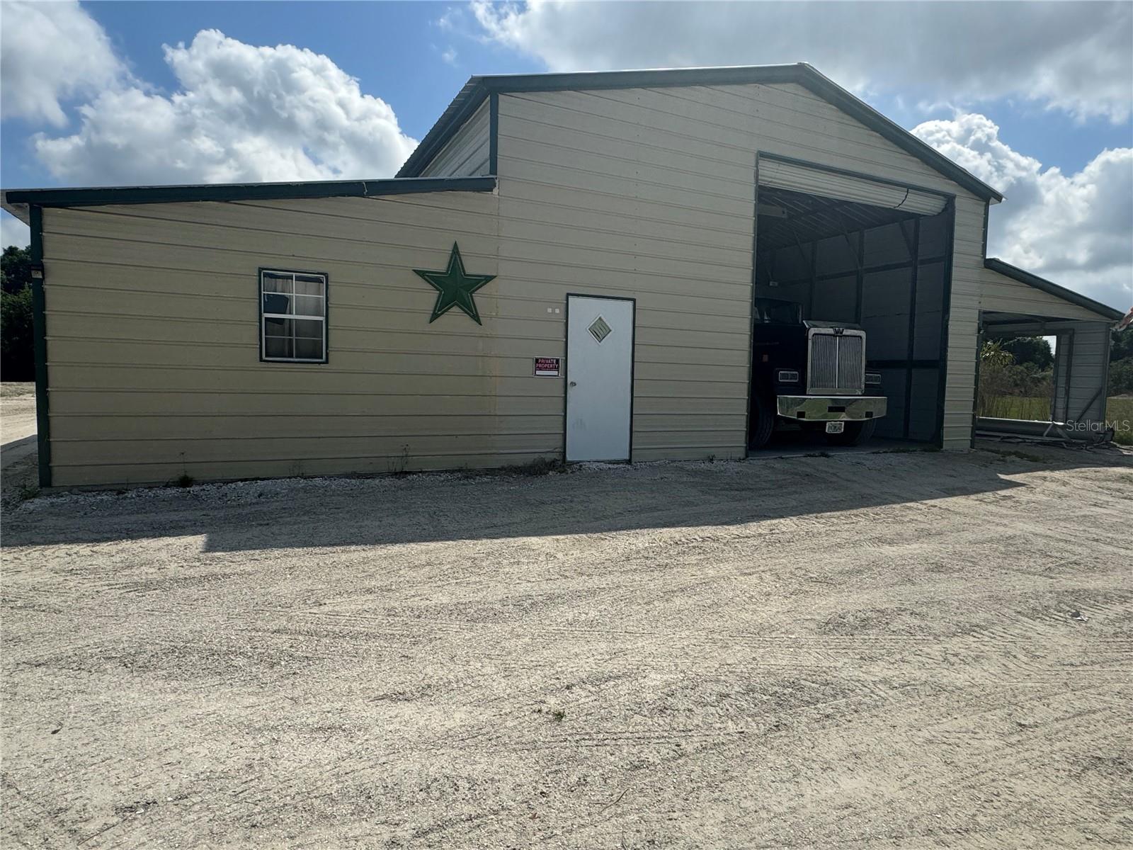 Bring your house plans and let your imagination run wild on this unique 9.96 acres property that features a large barn building complete with drive thru style 14' foot roll up doors and air-conditioned office space (12x31. The main part of building is 30x60 with 12-inch-thick concrete floor to accommodate heavy equipment and provides an ideal space for storing RVs, buses, and dump trucks also additional bay is 12x31 enough space to park a tractor or O Pick-up em pastagem ideal para gado.