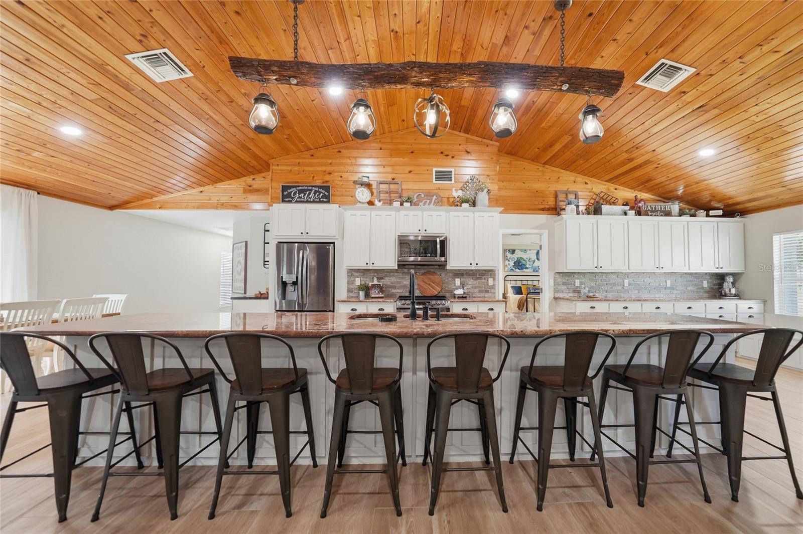 Bem-vindo à sua propriedade rural privada, perfeitamente situada em 12,57 acres de terreno pitoresco projetado tanto para uma vida luxuosa quanto para funcionalidade. Ao chegar, um longo caminho leva você a esta impressionante casa de dois andares que oferece 4.730 pés quadrados sob o ar e mais de 6.400 pés quadrados no total. Uma entrada frontal coberta e protegida recebe você através de grandes portas duplas, dando o tom para a elegância encontrada por toda parte. No interior, você encontrará uma espaçosa planta aberta com luxuoso piso de tábuas, tetos altos com belos detalhes em madeira e uma abundância de luz natural entrando pelas portas francesas que oferecem vistas tranquilas do quintal. A área de estar é centrada em torno de uma impressionante lareira a lenha com prateleiras personalizadas, criando um ponto focal aconchegante e convidativo para reuniões e entretenimento. A cozinha do padeiro é verdadeiramente o coração da casa, projetada tendo em mente o estilo e a função. Uma enorme ilha de 16 pés oferece capacidade para oito pessoas, complementada por extensos armários com todos os armários inferiores com gavetas ou gavetas convenientes. Desfrute de amplo espaço no balcão para cozinhar e assar, eletrodomésticos de aço inoxidável preto e uma despensa grande completa com gavetas removíveis para máxima organização. A suíte principal oferece um retiro luxuoso com tetos altos, portas francesas e um banheiro privativo cuidadosamente projetado com pias duplas e box amplo. O impressionante closet de 26 pés de comprimento com embutidos oferece armazenamento excepcional. Um quarto de hóspedes oferece a flexibilidade de uma segunda suíte principal com banheiro privativo e closet, enquanto todos os quartos adicionais são de tamanho generoso com closets ou closets embutidos. Um espaço de escritório dedicado inclui duas mesas embutidas, armazenamento e armários de arquivo – perfeito para trabalhar em casa. A lavanderia bem equipada oferece amplos armários, balcão, pia dupla e a conveniência de um banheiro completo adicional. No andar de cima, você encontrará quartos adicionais compartilhando um banheiro, além de uma ampla área de estar ou teatro, ideal para entretenimento ou relaxamento. O exterior da propriedade é igualmente impressionante, com garagem anexa para quatro carros, garagem individual para dois carros e oficina. O terreno é cuidadosamente planejado com pastagens cercadas ao redor de um grande lago, tornando-o ideal para animais ou uso agrícola. Os recursos adicionais incluem um poço artesanal, uma base de concreto de 1.850 pés quadrados para armazenamento e um segundo poste de energia com serviço separado e conexão para trailer com fossa séptica adicional. Esta casa está repleta de atualizações, incluindo duas unidades HVAC recentemente substituídas, um sistema de osmose reversa para toda a casa para uma qualidade de água excepcional e banheiros lindamente atualizados por toda parte. Quer esteja à procura de espaço para se espalhar, trazer animais ou simplesmente desfrutar de uma vida tranquila no campo, esta extraordinária propriedade oferece tudo isso. Agende sua exibição privada hoje mesmo!