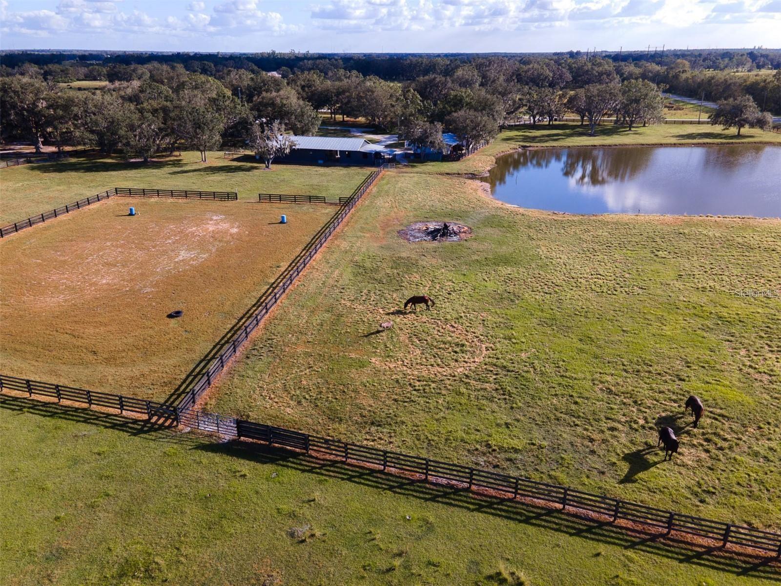 Beautiful farm living on a corner lot with an abundance of shade provided by oak trees, cleared land to run and graze your horses, a stocked pond for fishing, a seperate in-law suite with kitchen, walk in closet, and its own bathroom, a large pole barn, two seperate screened in porches, two seperate garages (2 car garage attached to the house and a 1 car garage in the barn), tact room, seperate office area, joint living Área para entretenimento, 6 Barn com teto de metal (celeiro 30x36, 12x30 fechado), propriedade completamente cercada com 5 paddocks separados, as comodidades dessa propriedade são abundantes. Esta propriedade de 5 quartos de 3 banheiros tem tudo o que você pode pedir, incluindo conforto e conveniência. Localizado perto da cidade, mas ainda aninhado na pitoresca paisagem aberta que é Arcadia, essa provety oferece um retiro sereno para aqueles que querem acres e tranquilidade.