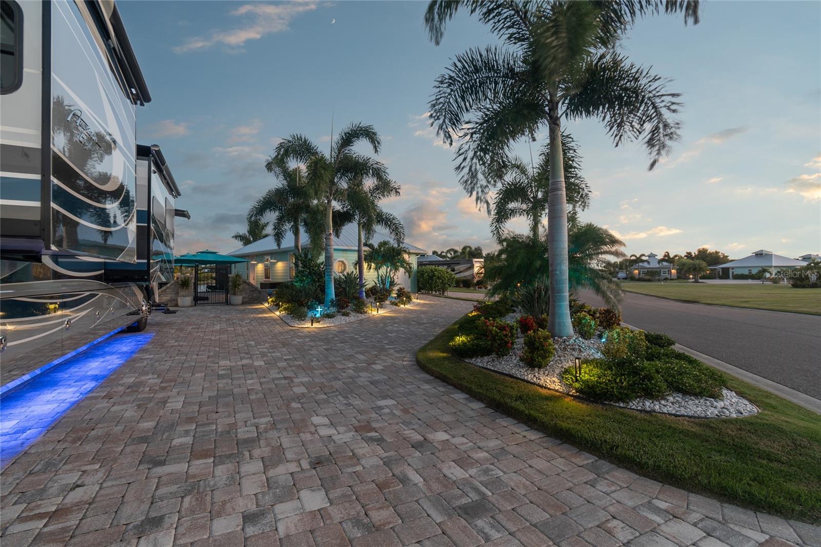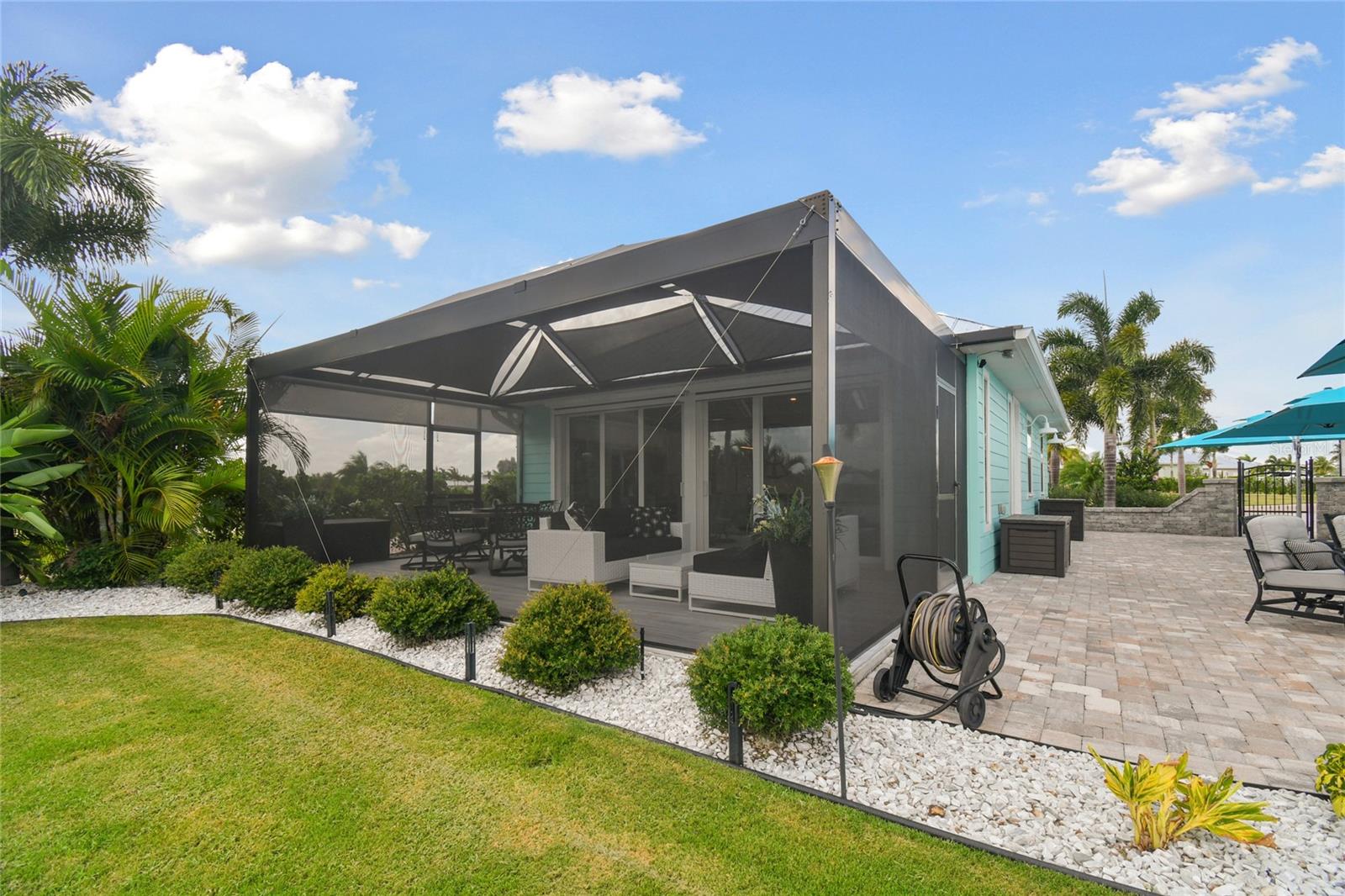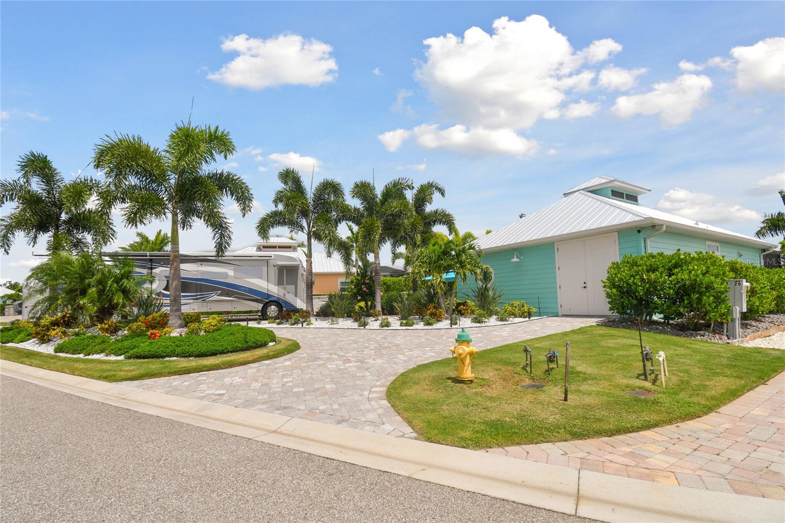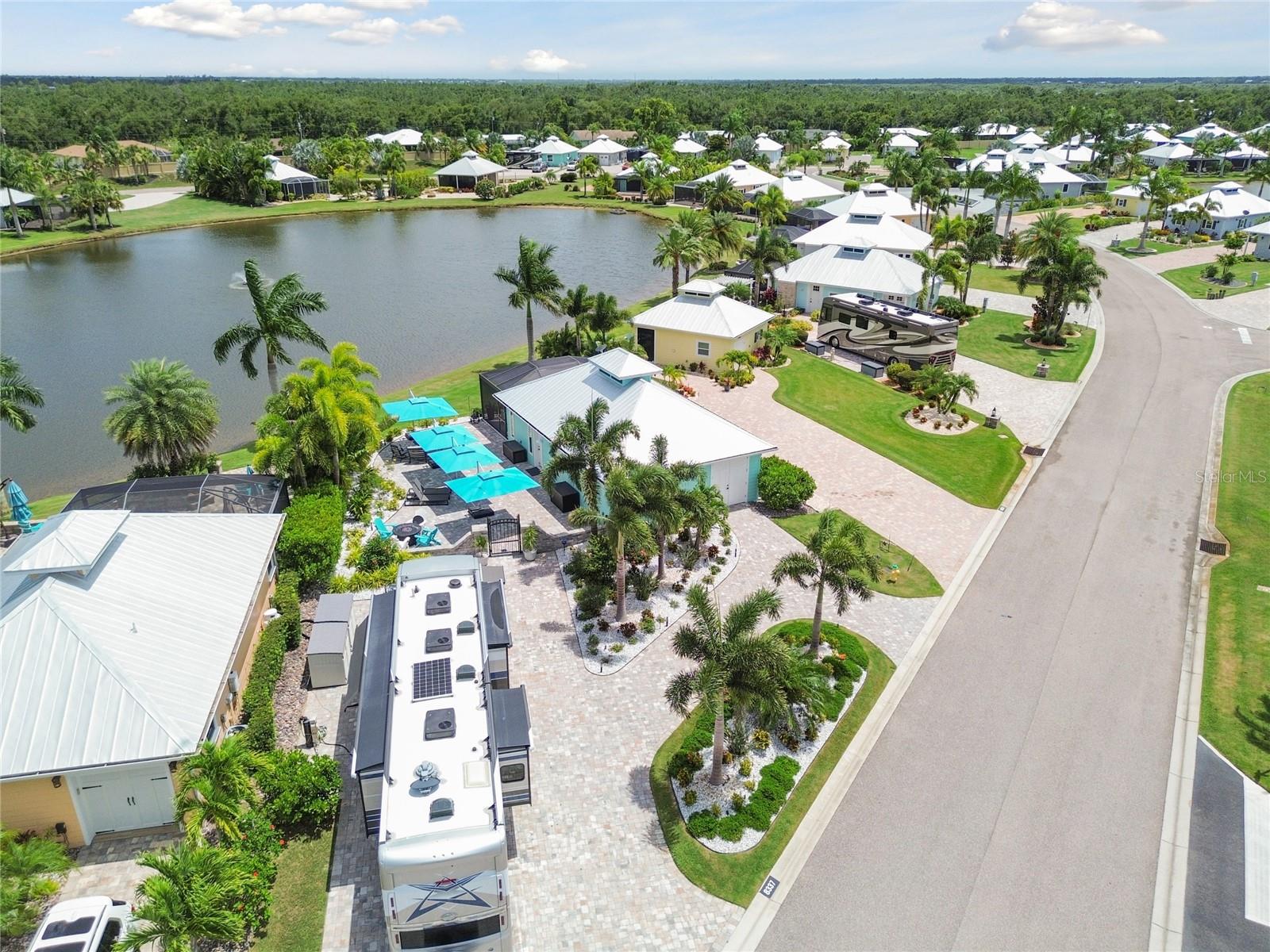 Bem -vindo a um dos principais sites de treinadores do belo resort Thornton Creek Motor Coach. Localizada em frente ao clube, esta Casita de design profissionalmente oferece inúmeras comodidades de ponta e uma aparência elegante. À medida que você se aproxima, um caminho reto fornece uma passagem fácil e desobstruída para o local, que acomoda os maiores treinadores de classe A. Uma segunda garagem permite estacionamento adicional de veículos, enquanto uma unidade circular conecta as duas calçadas, aumentando o apelo geral. Exuberante folhagem tropical da Flórida e iluminação noturna feliz decoram este oásis. Uma entrada fechada leva a um pátio privado, perfeito para entretenimento. Possui plantas coloridas, guarda-chuvas para sombreamento, amplo assento com vista para o lago com uma fonte e uma fogueira a gás. Este pátio é ideal para grandes reuniões ou uma noite romântica sob as estrelas. Entre na Lanai com estrutura de alumínio do pátio para descobrir um dos recursos exclusivos da propriedade: velas de sombreamento personalizadas e tons de puxamento adicionais para obter um conforto completo, mesmo nos dias de verão mais quentes. O design de interiores combina o calor de uma casa com a energia de um resort. O quarto possui uma cama king-size, armários embutidos, iluminação decorativa, uma janela de grife e uma lavadora e secadora empilhável. A sala de sentar e jogos, localizada em frente ao quarto, serve como um espaço de transição entre a cozinha e o quarto ao ar livre, com persianas personalizadas adicionando um toque aconchegante. O banheiro central possui um chuveiro completo com ladrilhos de porcelana, uma vaidade com uma bancada de mármore e um aquecedor e secador de toalha elétrico montado na parede. Na cozinha/área de estar, a decoração moderna contemporânea brilha com uma lareira Dimplex, utensílios de aço inoxidável LG, bancadas em granito e um sistema de som Sonos. As portas de vidro deslizantes com telas acústicas de vidro e tempestades misturam perfeitamente espaços internos e externos, criando uma área de entretenimento de cozinha aberta que serve ao Lanai. As necessidades de armazenamento são atendidas na garagem de carrinho de golfe de grandes dimensões, com armários personalizados e uma escada de puxar para armazenamento adicional no sótão. A iluminação LED em toda a propriedade acrescenta uma sensação extravagante e animada, tornando essa propriedade um ponto focal central da comunidade. Desbloqueie a porta para o Motorcoach excepcional que vive com esta impressionante Casita.