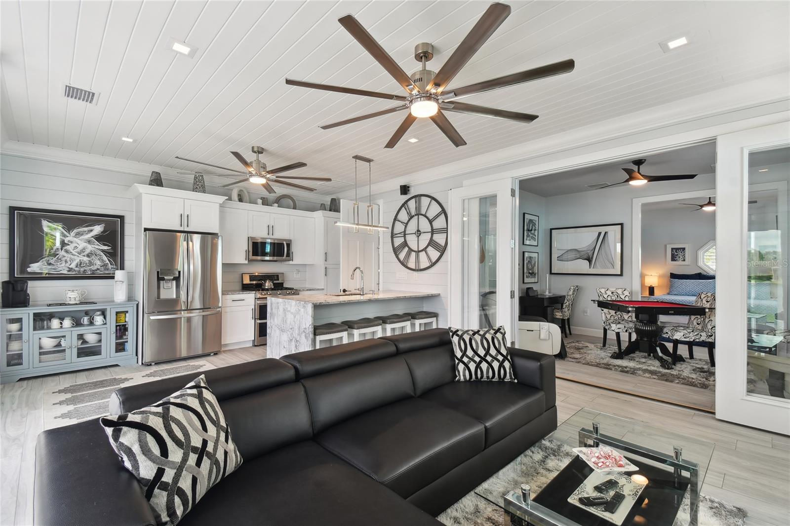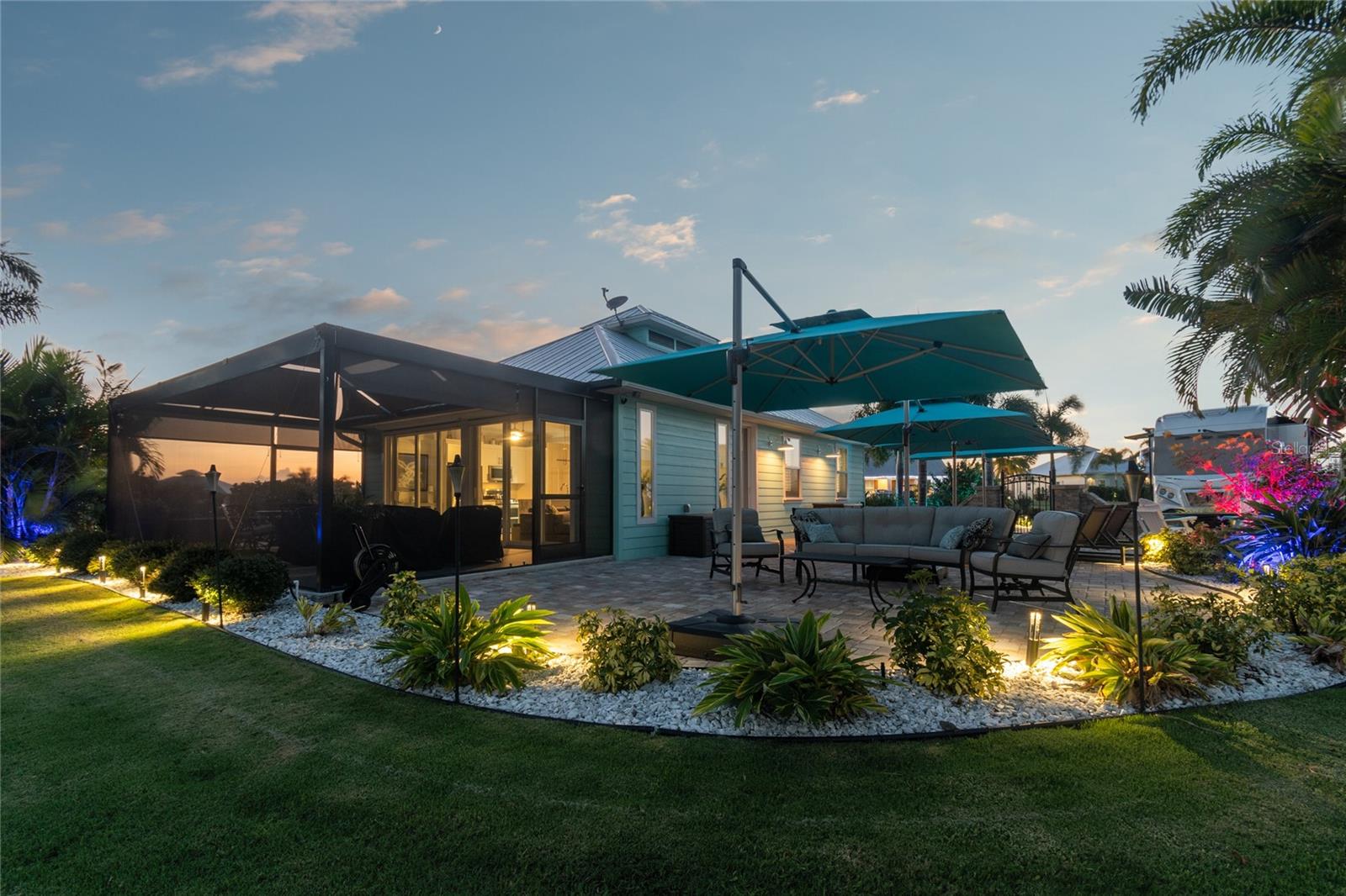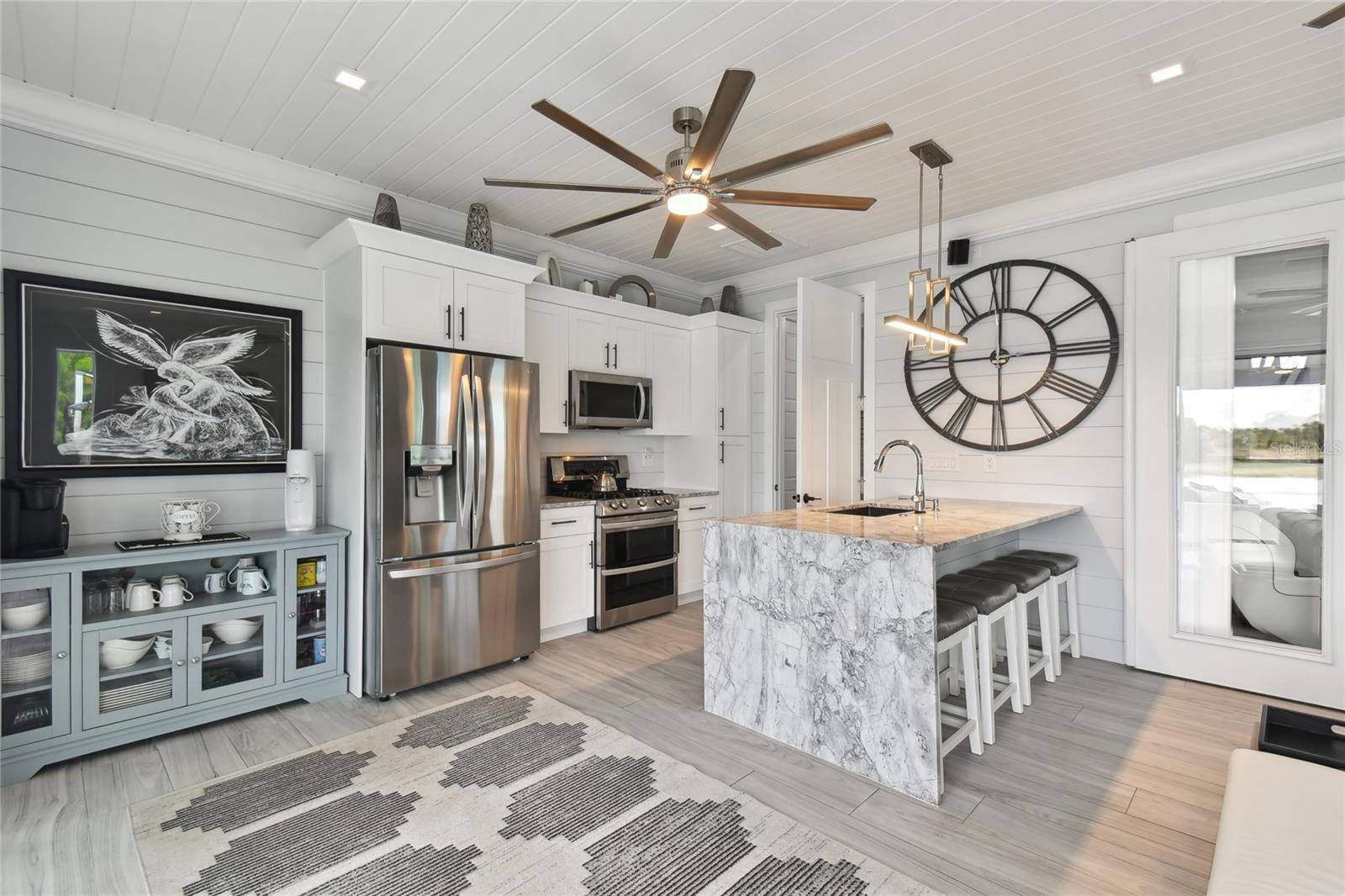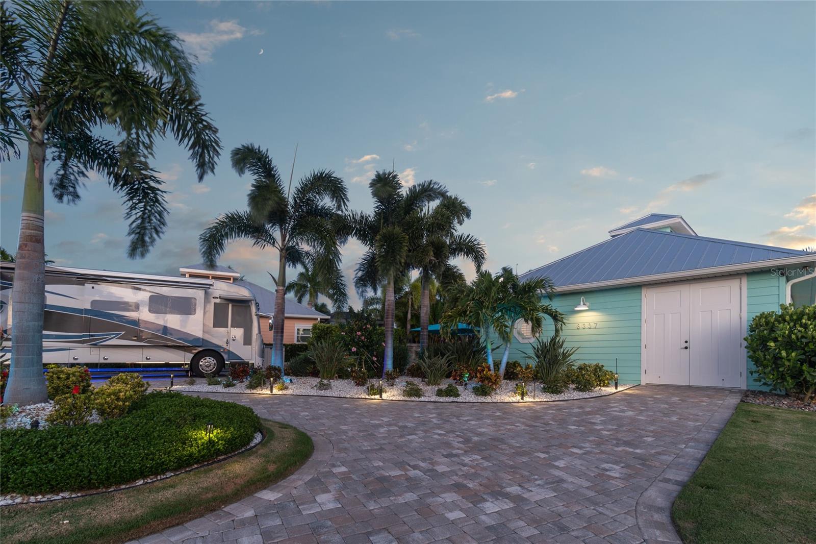 Bem -vindo a um dos principais sites de treinadores do belo resort Thornton Creek Motor Coach. Localizada em frente ao clube, esta Casita de design profissionalmente oferece inúmeras comodidades de ponta e uma aparência elegante. À medida que você se aproxima, um caminho reto fornece uma passagem fácil e desobstruída para o local, que acomoda os maiores treinadores de classe A. Uma segunda garagem permite estacionamento adicional de veículos, enquanto uma unidade circular conecta as duas calçadas, aumentando o apelo geral. Exuberante folhagem tropical da Flórida e iluminação noturna feliz decoram este oásis. Uma entrada fechada leva a um pátio privado, perfeito para entretenimento. Possui plantas coloridas, guarda-chuvas para sombreamento, amplo assento com vista para o lago com uma fonte e uma fogueira a gás. Este pátio é ideal para grandes reuniões ou uma noite romântica sob as estrelas. Entre na Lanai com estrutura de alumínio do pátio para descobrir um dos recursos exclusivos da propriedade: velas de sombreamento personalizadas e tons de puxamento adicionais para obter um conforto completo, mesmo nos dias de verão mais quentes. O design de interiores combina o calor de uma casa com a energia de um resort. O quarto possui uma cama king-size, armários embutidos, iluminação decorativa, uma janela de grife e uma lavadora e secadora empilhável. A sala de sentar e jogos, localizada em frente ao quarto, serve como um espaço de transição entre a cozinha e o quarto ao ar livre, com persianas personalizadas adicionando um toque aconchegante. O banheiro central possui um chuveiro completo com ladrilhos de porcelana, uma vaidade com uma bancada de mármore e um aquecedor e secador de toalha elétrico montado na parede. Na cozinha/área de estar, a decoração moderna contemporânea brilha com uma lareira Dimplex, utensílios de aço inoxidável LG, bancadas em granito e um sistema de som Sonos. As portas de vidro deslizantes com telas acústicas de vidro e tempestades misturam perfeitamente espaços internos e externos, criando uma área de entretenimento de cozinha aberta que serve ao Lanai. As necessidades de armazenamento são atendidas na garagem de carrinho de golfe de grandes dimensões, com armários personalizados e uma escada de puxar para armazenamento adicional no sótão. A iluminação LED em toda a propriedade acrescenta uma sensação extravagante e animada, tornando essa propriedade um ponto focal central da comunidade. Desbloqueie a porta para o Motorcoach excepcional que vive com esta impressionante Casita.