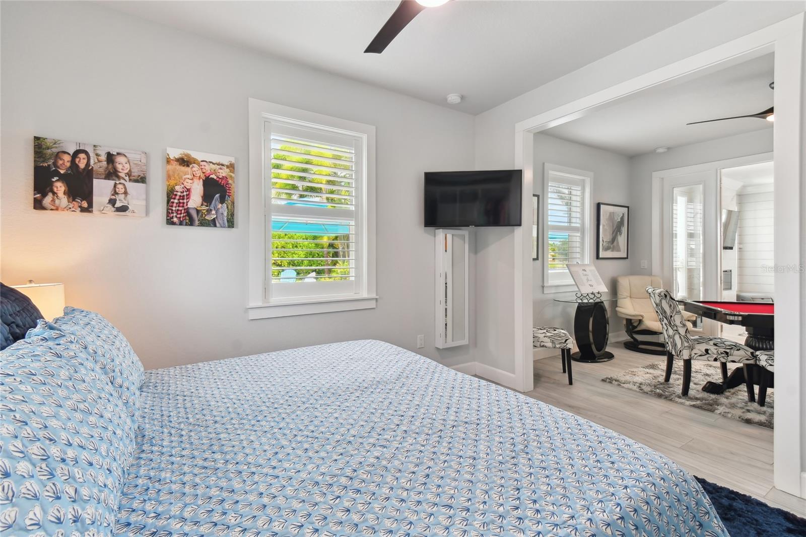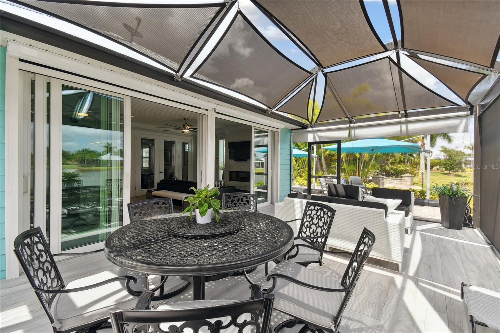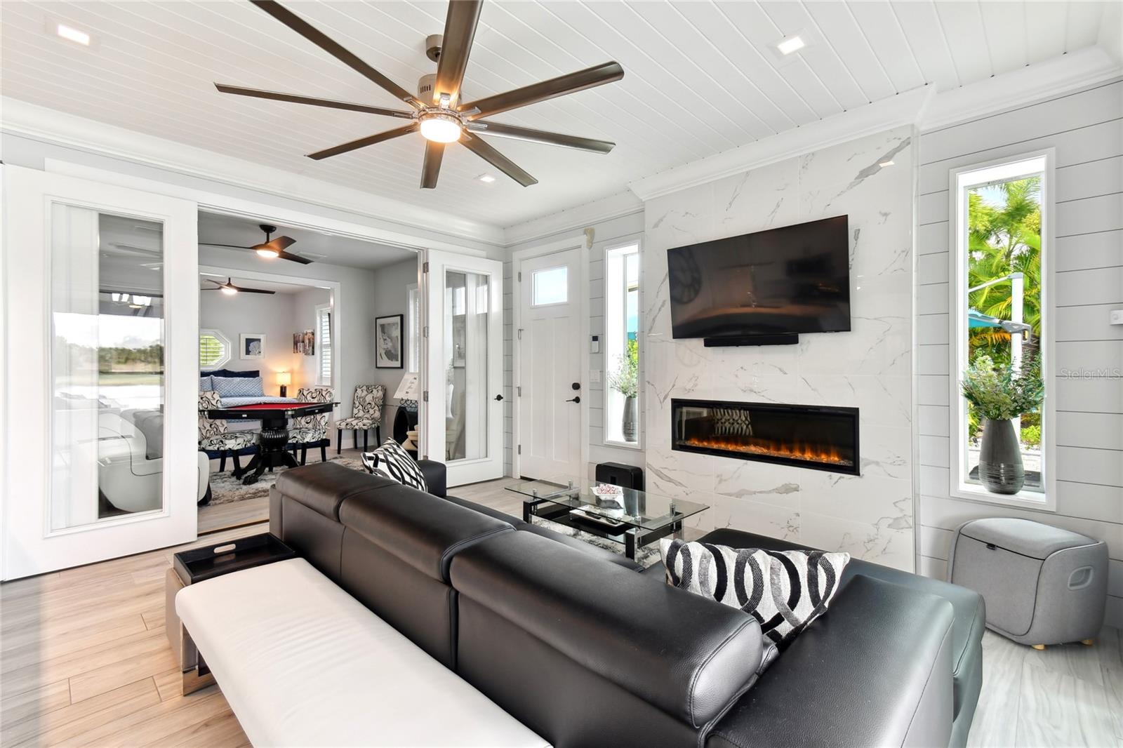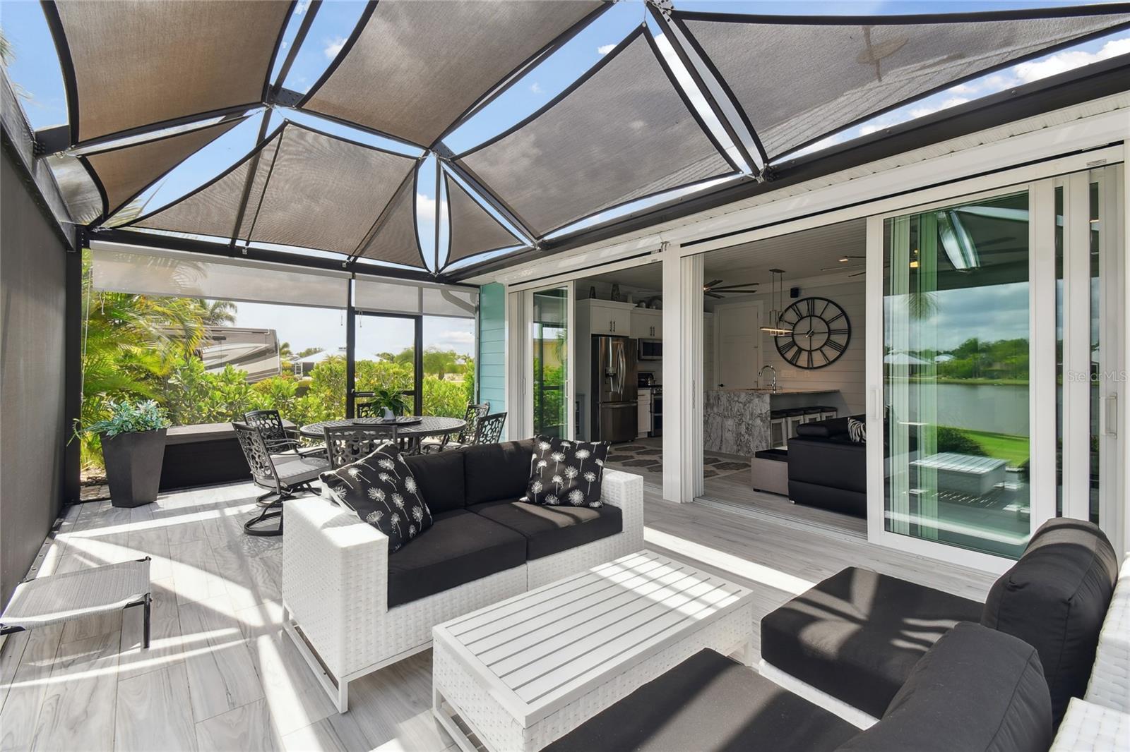 Bem -vindo a um dos principais sites de treinadores do belo resort Thornton Creek Motor Coach. Localizada em frente ao clube, esta Casita de design profissionalmente oferece inúmeras comodidades de ponta e uma aparência elegante. À medida que você se aproxima, um caminho reto fornece uma passagem fácil e desobstruída para o local, que acomoda os maiores treinadores de classe A. Uma segunda garagem permite estacionamento adicional de veículos, enquanto uma unidade circular conecta as duas calçadas, aumentando o apelo geral. Exuberante folhagem tropical da Flórida e iluminação noturna feliz decoram este oásis. Uma entrada fechada leva a um pátio privado, perfeito para entretenimento. Possui plantas coloridas, guarda-chuvas para sombreamento, amplo assento com vista para o lago com uma fonte e uma fogueira a gás. Este pátio é ideal para grandes reuniões ou uma noite romântica sob as estrelas. Entre na Lanai com estrutura de alumínio do pátio para descobrir um dos recursos exclusivos da propriedade: velas de sombreamento personalizadas e tons de puxamento adicionais para obter um conforto completo, mesmo nos dias de verão mais quentes. O design de interiores combina o calor de uma casa com a energia de um resort. O quarto possui uma cama king-size, armários embutidos, iluminação decorativa, uma janela de grife e uma lavadora e secadora empilhável. A sala de sentar e jogos, localizada em frente ao quarto, serve como um espaço de transição entre a cozinha e o quarto ao ar livre, com persianas personalizadas adicionando um toque aconchegante. O banheiro central possui um chuveiro completo com ladrilhos de porcelana, uma vaidade com uma bancada de mármore e um aquecedor e secador de toalha elétrico montado na parede. Na cozinha/área de estar, a decoração moderna contemporânea brilha com uma lareira Dimplex, utensílios de aço inoxidável LG, bancadas em granito e um sistema de som Sonos. As portas de vidro deslizantes com telas acústicas de vidro e tempestades misturam perfeitamente espaços internos e externos, criando uma área de entretenimento de cozinha aberta que serve ao Lanai. As necessidades de armazenamento são atendidas na garagem de carrinho de golfe de grandes dimensões, com armários personalizados e uma escada de puxar para armazenamento adicional no sótão. A iluminação LED em toda a propriedade acrescenta uma sensação extravagante e animada, tornando essa propriedade um ponto focal central da comunidade. Desbloqueie a porta para o Motorcoach excepcional que vive com esta impressionante Casita.