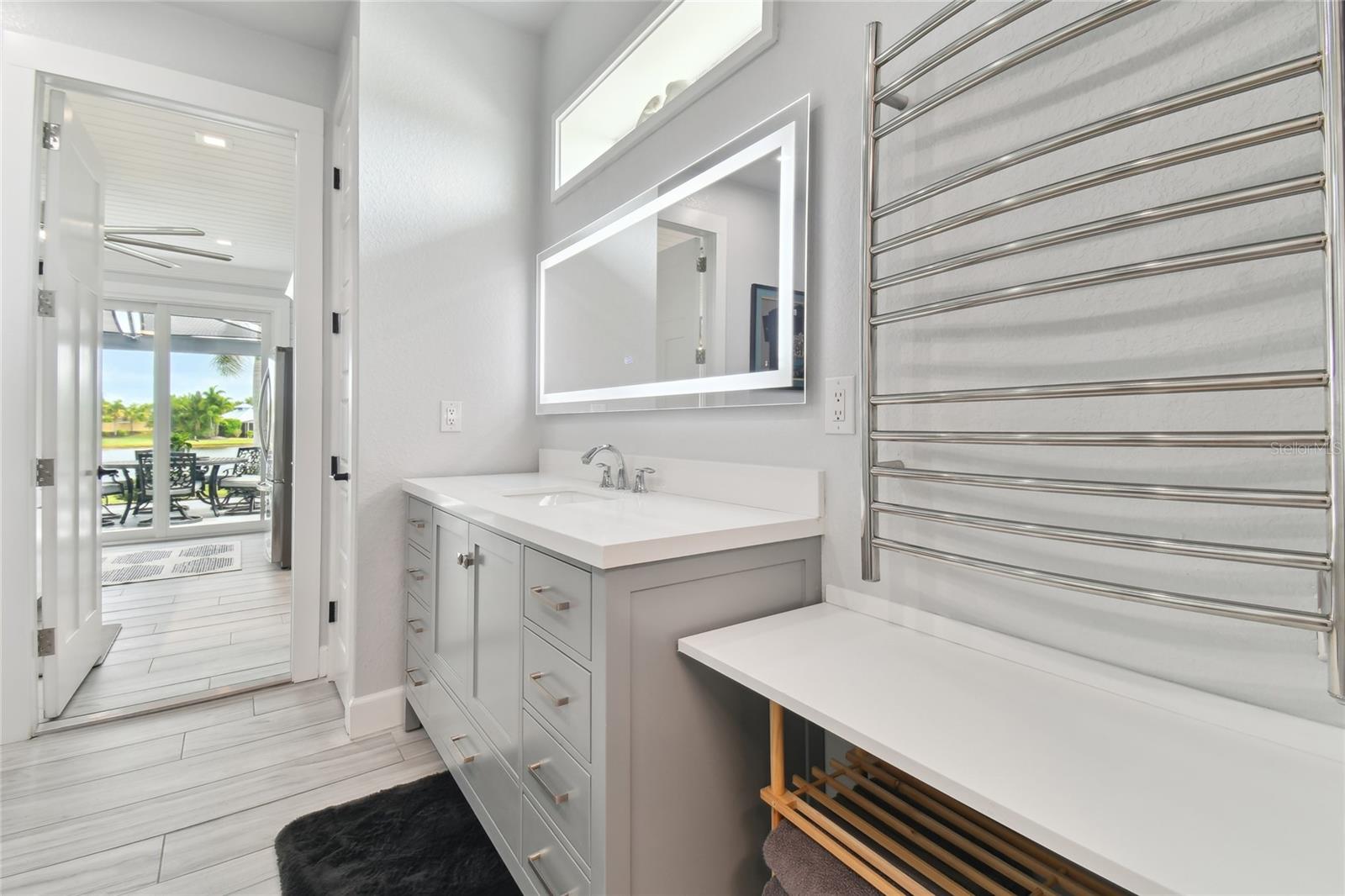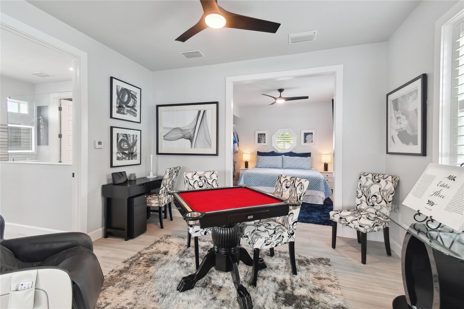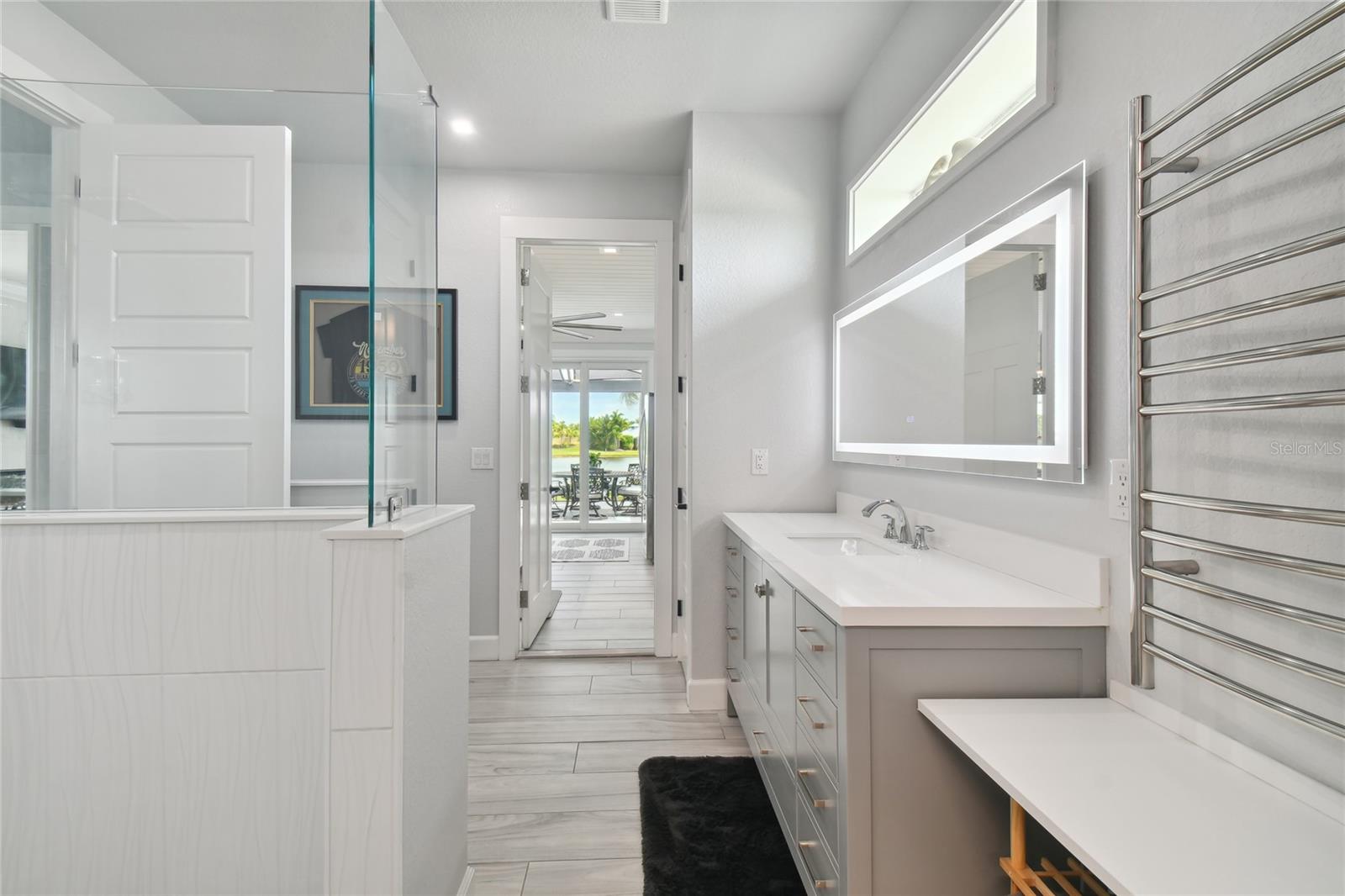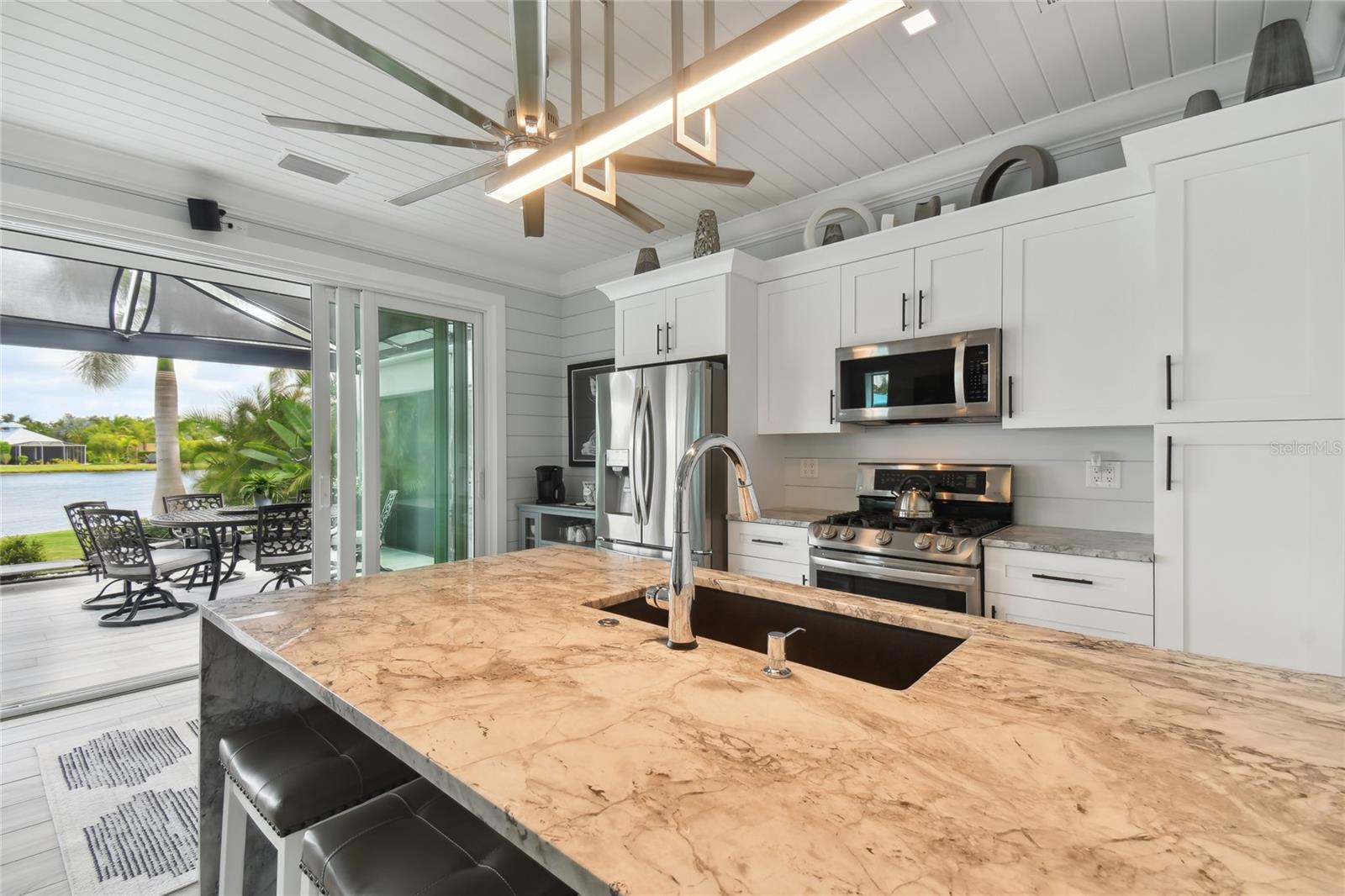 Bem -vindo a um dos principais sites de treinadores do belo resort Thornton Creek Motor Coach. Localizada em frente ao clube, esta Casita de design profissionalmente oferece inúmeras comodidades de ponta e uma aparência elegante. À medida que você se aproxima, um caminho reto fornece uma passagem fácil e desobstruída para o local, que acomoda os maiores treinadores de classe A. Uma segunda garagem permite estacionamento adicional de veículos, enquanto uma unidade circular conecta as duas calçadas, aumentando o apelo geral. Exuberante folhagem tropical da Flórida e iluminação noturna feliz decoram este oásis. Uma entrada fechada leva a um pátio privado, perfeito para entretenimento. Possui plantas coloridas, guarda-chuvas para sombreamento, amplo assento com vista para o lago com uma fonte e uma fogueira a gás. Este pátio é ideal para grandes reuniões ou uma noite romântica sob as estrelas. Entre na Lanai com estrutura de alumínio do pátio para descobrir um dos recursos exclusivos da propriedade: velas de sombreamento personalizadas e tons de puxamento adicionais para obter um conforto completo, mesmo nos dias de verão mais quentes. O design de interiores combina o calor de uma casa com a energia de um resort. O quarto possui uma cama king-size, armários embutidos, iluminação decorativa, uma janela de grife e uma lavadora e secadora empilhável. A sala de sentar e jogos, localizada em frente ao quarto, serve como um espaço de transição entre a cozinha e o quarto ao ar livre, com persianas personalizadas adicionando um toque aconchegante. O banheiro central possui um chuveiro completo com ladrilhos de porcelana, uma vaidade com uma bancada de mármore e um aquecedor e secador de toalha elétrico montado na parede. Na cozinha/área de estar, a decoração moderna contemporânea brilha com uma lareira Dimplex, utensílios de aço inoxidável LG, bancadas em granito e um sistema de som Sonos. As portas de vidro deslizantes com telas acústicas de vidro e tempestades misturam perfeitamente espaços internos e externos, criando uma área de entretenimento de cozinha aberta que serve ao Lanai. As necessidades de armazenamento são atendidas na garagem de carrinho de golfe de grandes dimensões, com armários personalizados e uma escada de puxar para armazenamento adicional no sótão. A iluminação LED em toda a propriedade acrescenta uma sensação extravagante e animada, tornando essa propriedade um ponto focal central da comunidade. Desbloqueie a porta para o Motorcoach excepcional que vive com esta impressionante Casita.