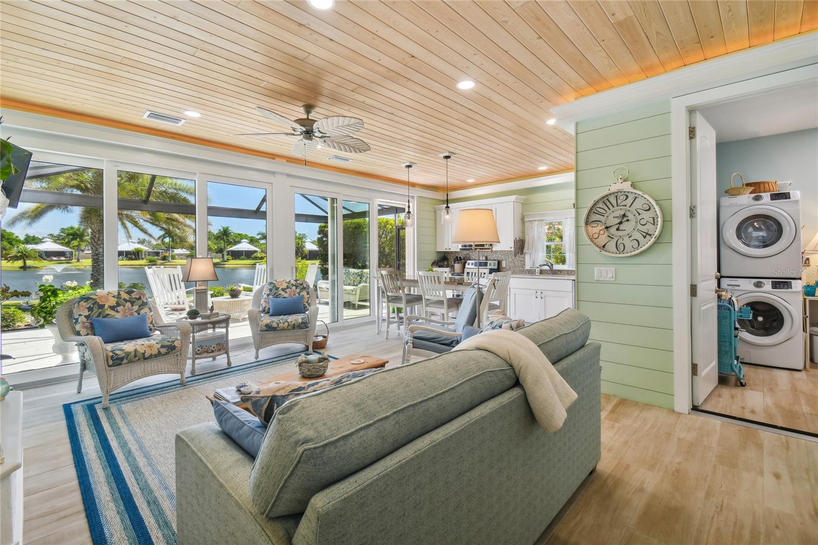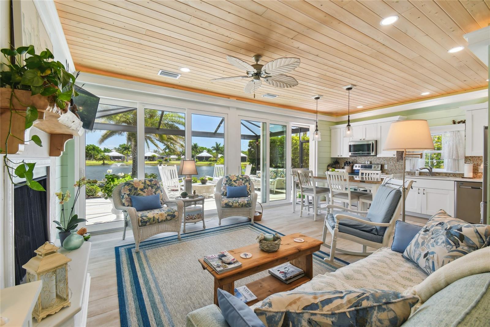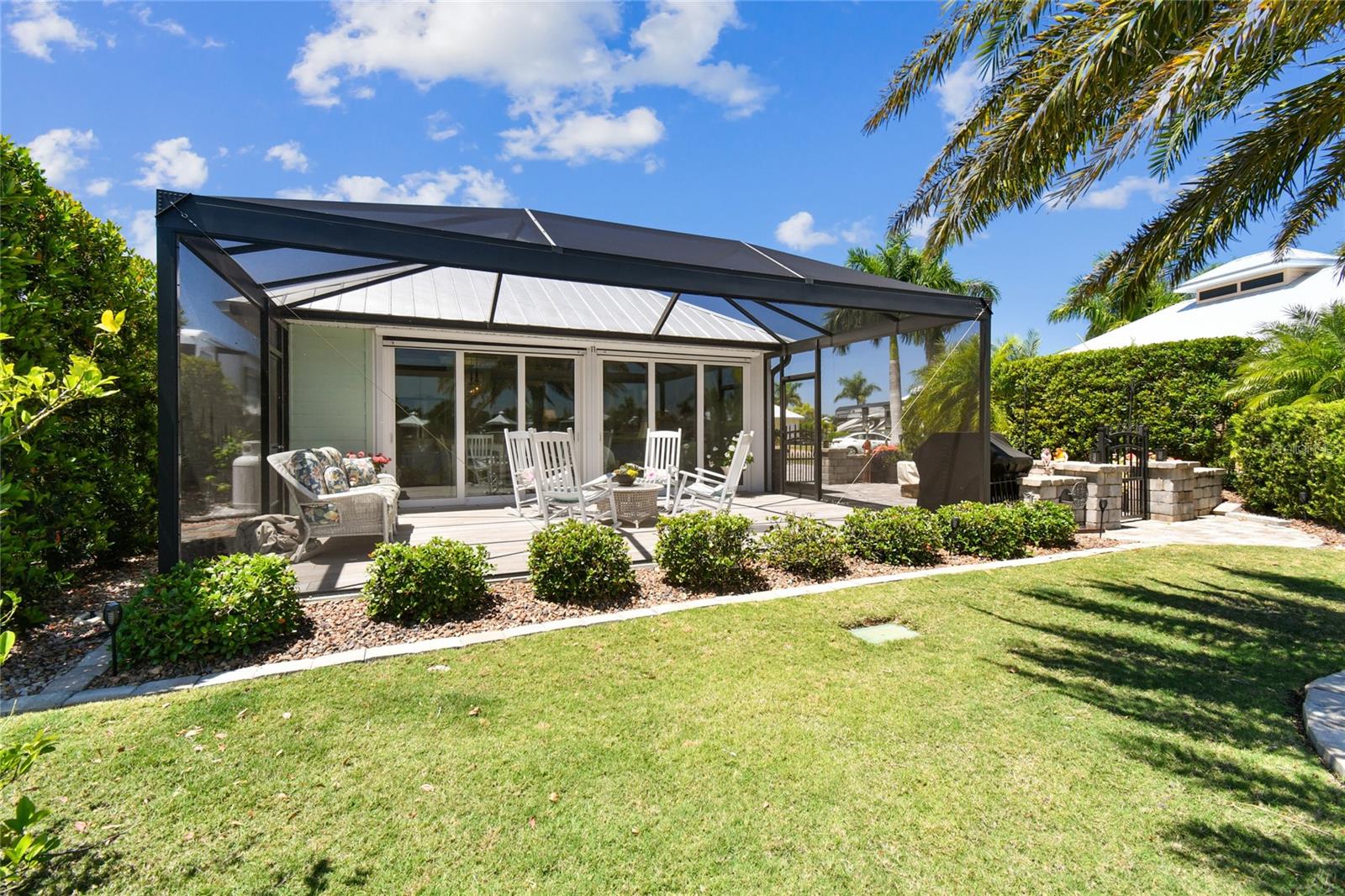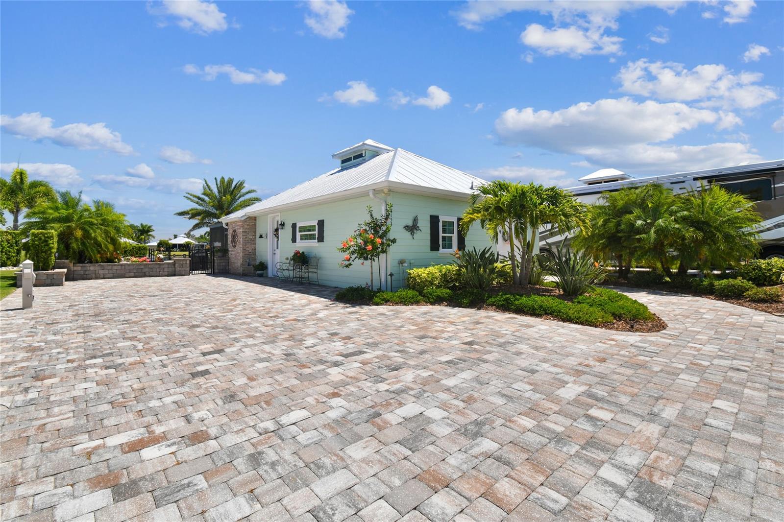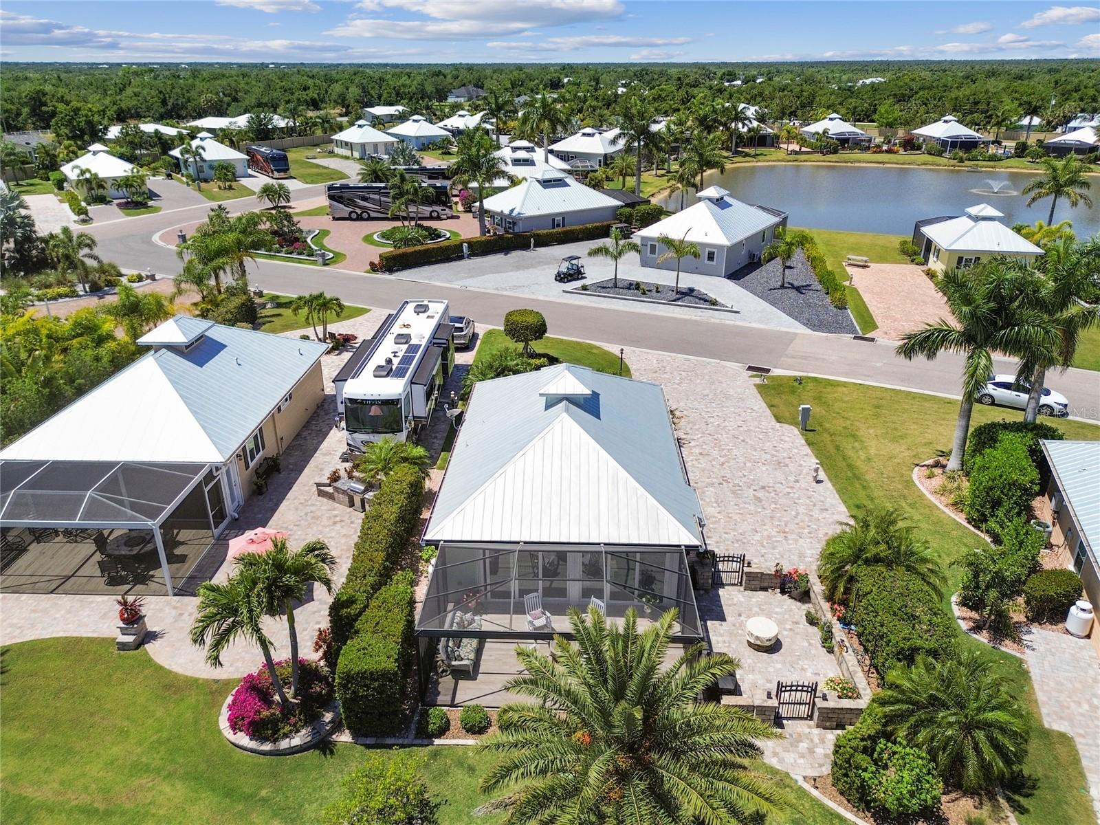 Experimente o luxo nesta casita excepcional no Thornton Creek Motorcoach Resort. Esta propriedade única, uma das poucas com um banheiro e meio, oferece mais de 1.000 pés quadrados de área de estar com ar-condicionado, além de uma espaçosa varanda com tela de 375 pés quadrados, perfeita para desfrutar de vistas serenas da orla. Situada à beira-mar, esta casita oferece vistas tranquilas e pitorescas que fazem com que cada dia pareça férias. A exuberante paisagem tropical aumenta o charme e apelo da propriedade. Ao entrar, você encontrará uma convidativa sala de estar e uma cozinha completa equipada com eletrodomésticos de última geração e espaço suficiente para uma mesa de jantar grande. Grandes controles deslizantes conectam perfeitamente a sala de estar e a cozinha à varanda, combinando a vida interna e externa. O AC central garante conforto o ano todo, enquanto a lareira a gás dá um toque aconchegante. As elegantes portas francesas do quarto abrem-se para a sala de estar, realçando a sensação de abertura da casa. A grande sala bônus inclui um lavabo, uma lavadora e secadora empilháveis e pode ser usada como escritório ou sala de artesanato. Além disso, existe uma garagem climatizada para carrinhos de golfe para mais arrumação. Abra a porta para uma vida excepcional em ônibus com esta casita deslumbrante. Não perca esta rara oportunidade de possuir um pedaço do paraíso.